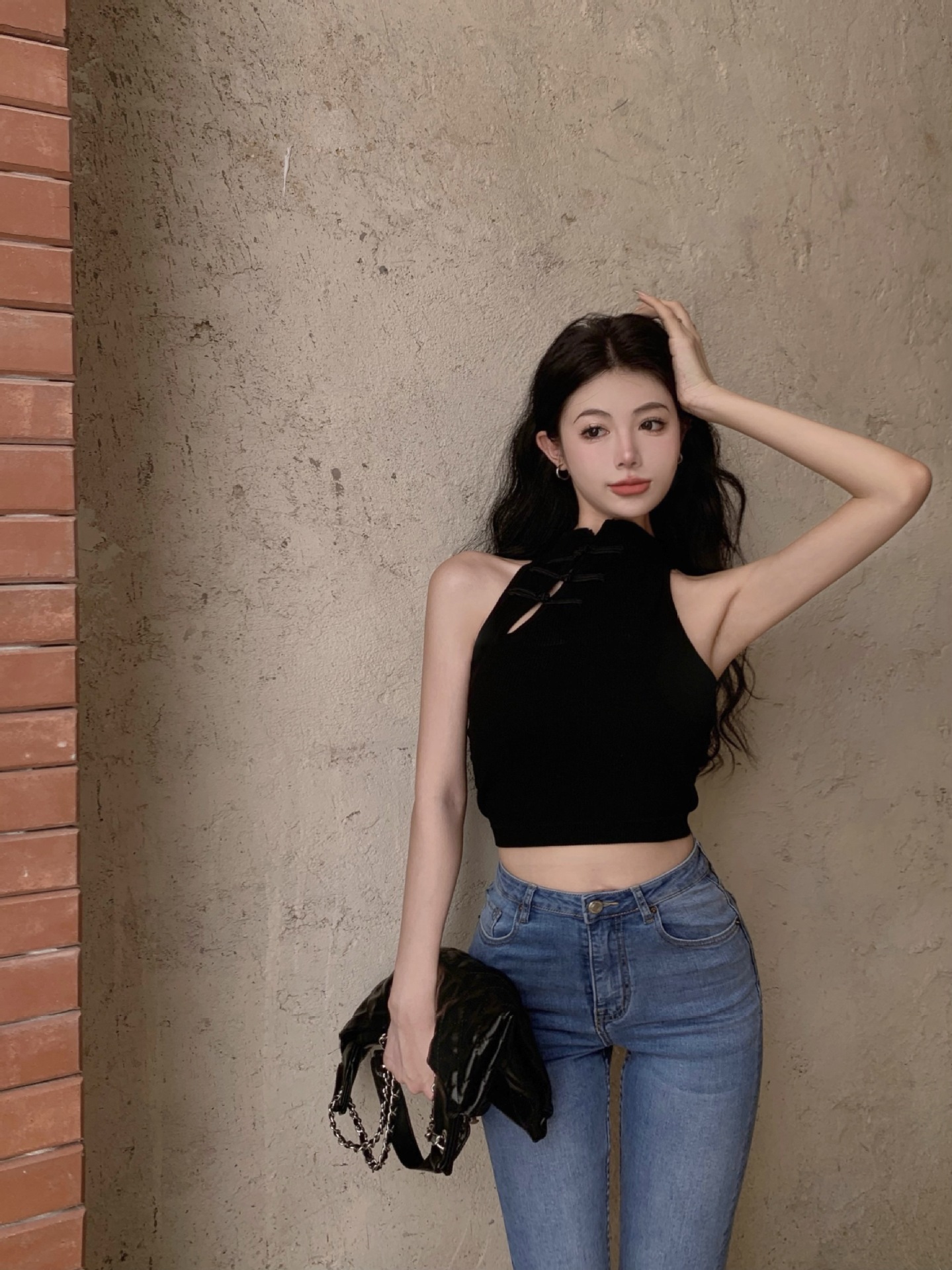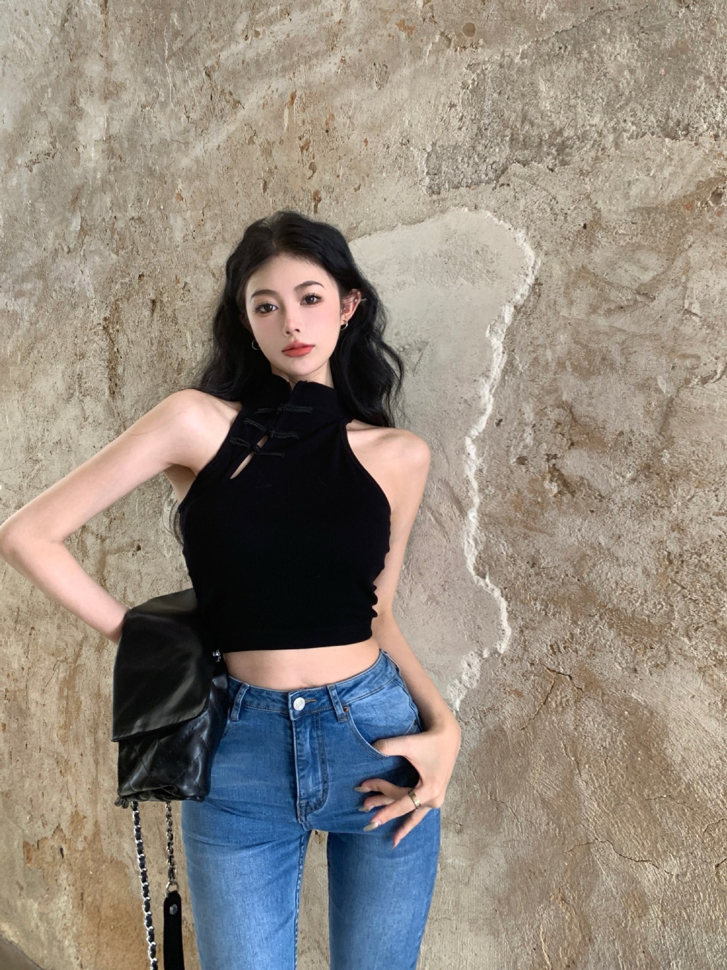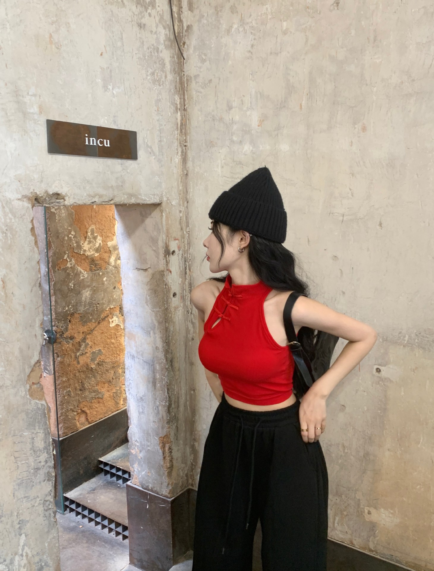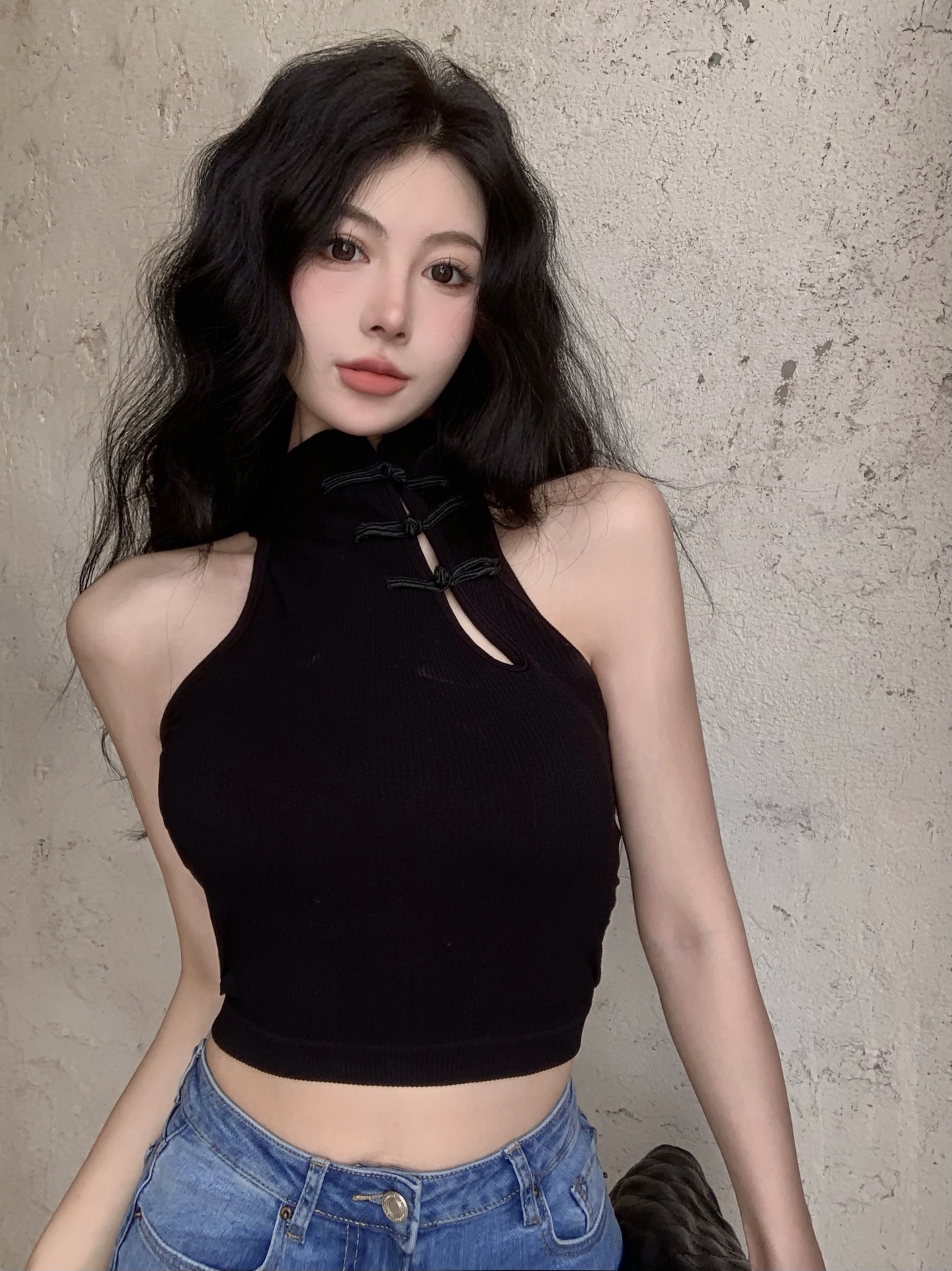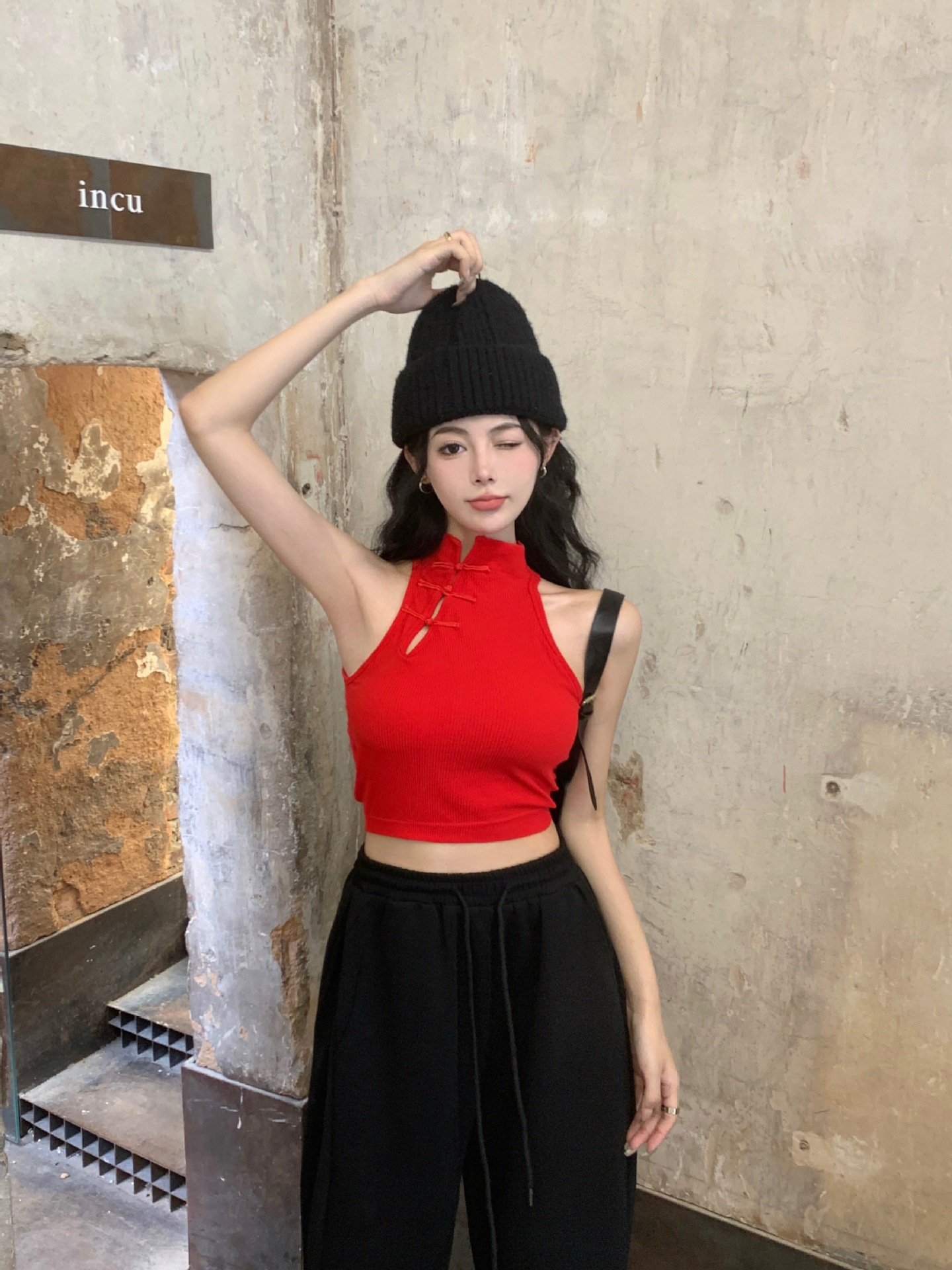 순수 달콤하고 매운 국가 스타일 올 매치 빈티지 중국 스타일 작은 조끼 여성 짧은 탑, 브래킷 패드 내부 착용 외부 착용 슬링 탑스토어 가기