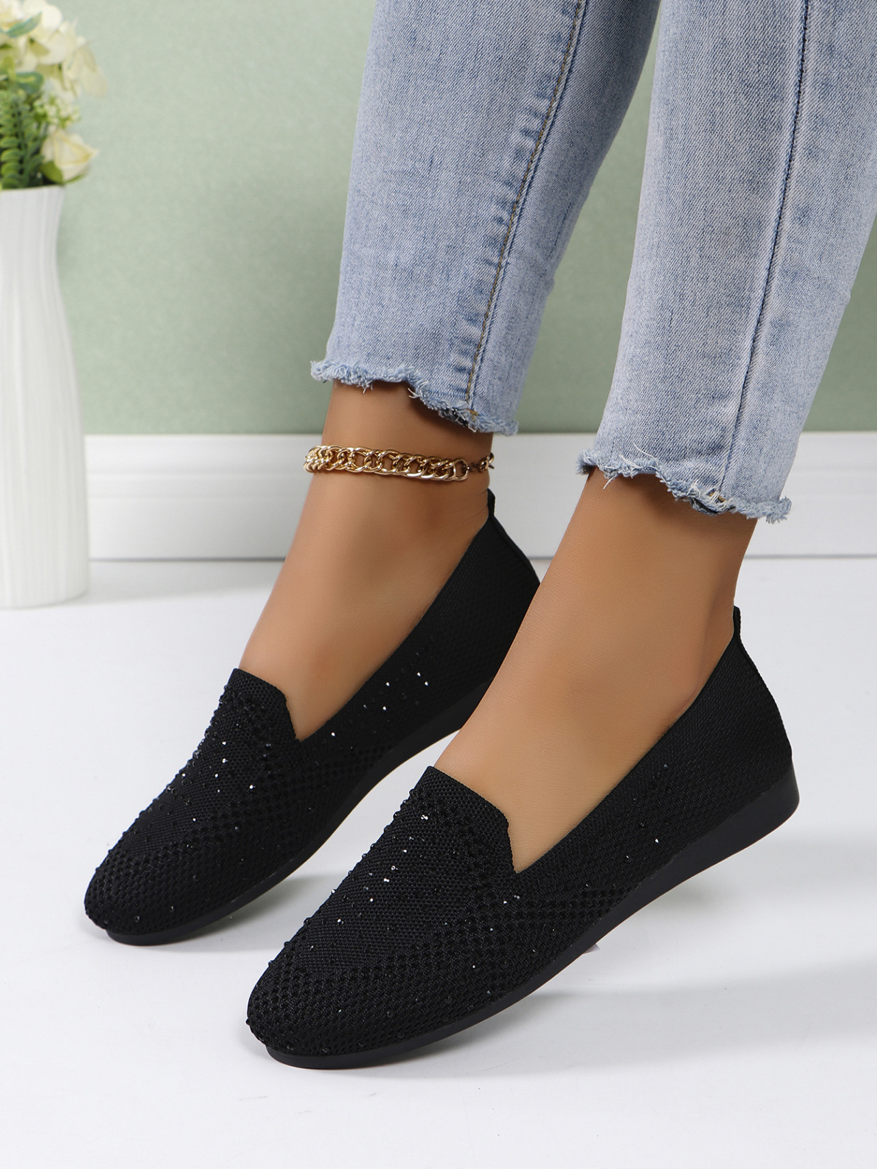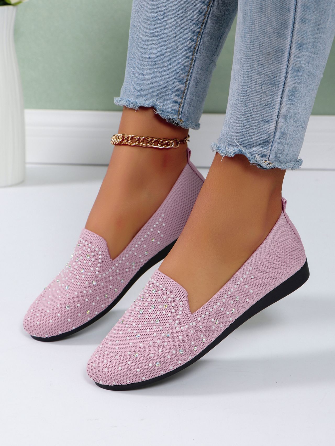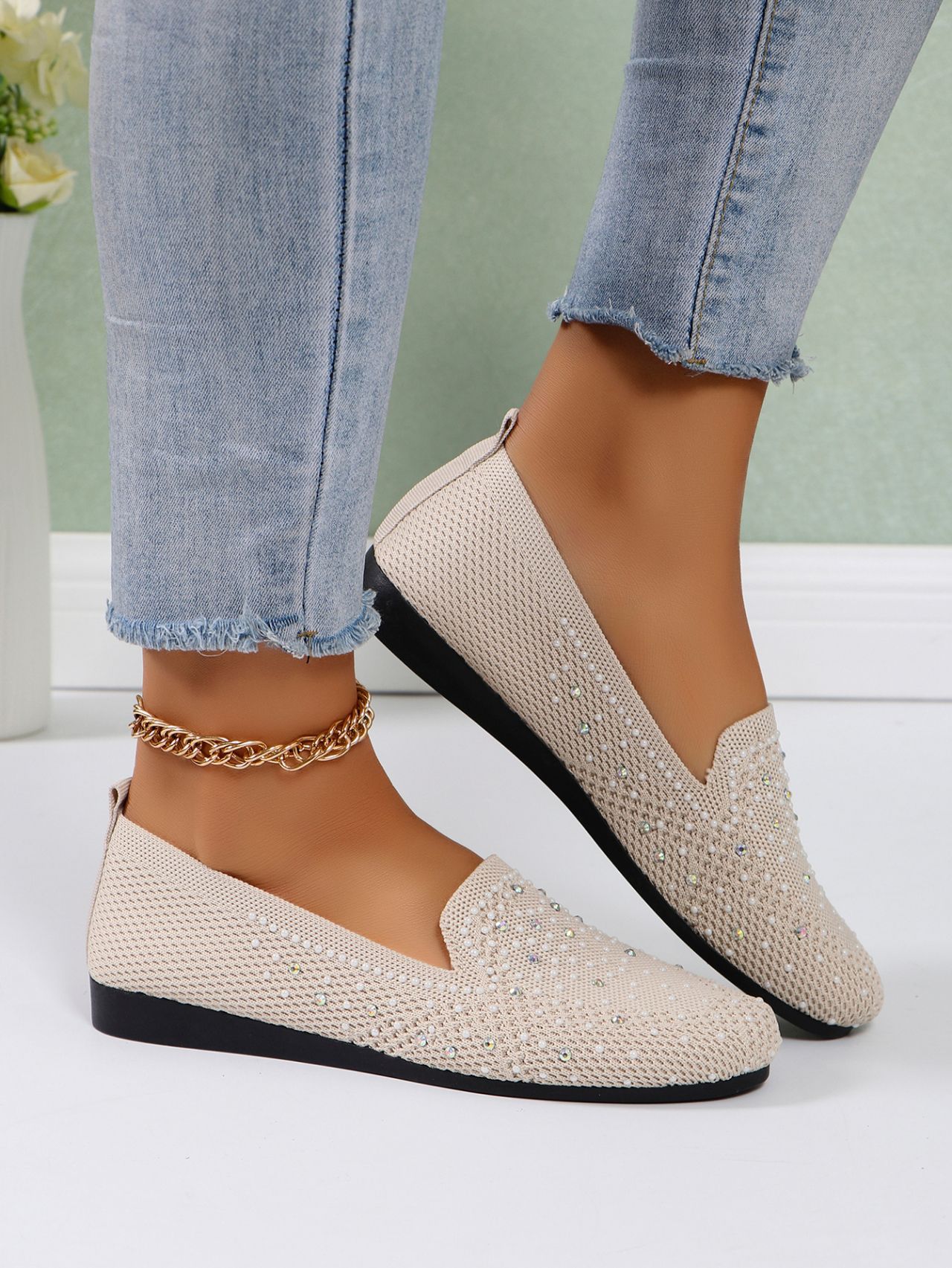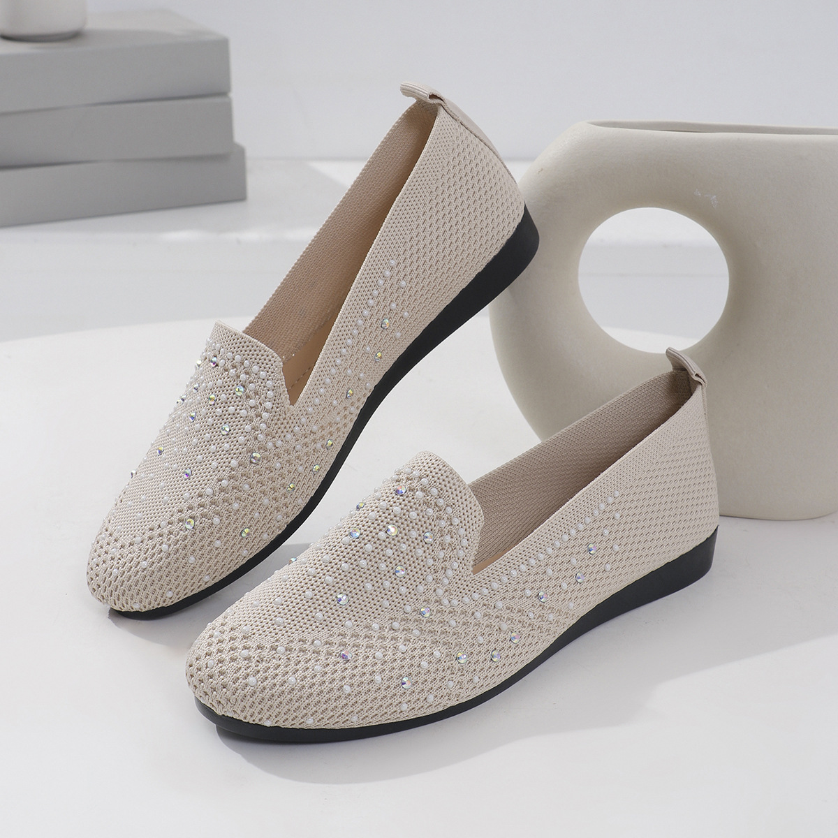 국경 간 플러스 사이즈 캐주얼 플랫 신발 여성 2025 봄 드릴 얕은 부드러운 신발 여성 새로운 단색 메쉬스토어 가기