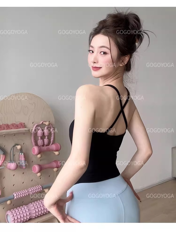 스포츠 속옷 여성의 봄과 여름 아름다운 뒤로 충격 방지 브래지어 가슴 매트 요가 의류 조끼 외부 착용 필라테스 훈련 피트니스 브래지어