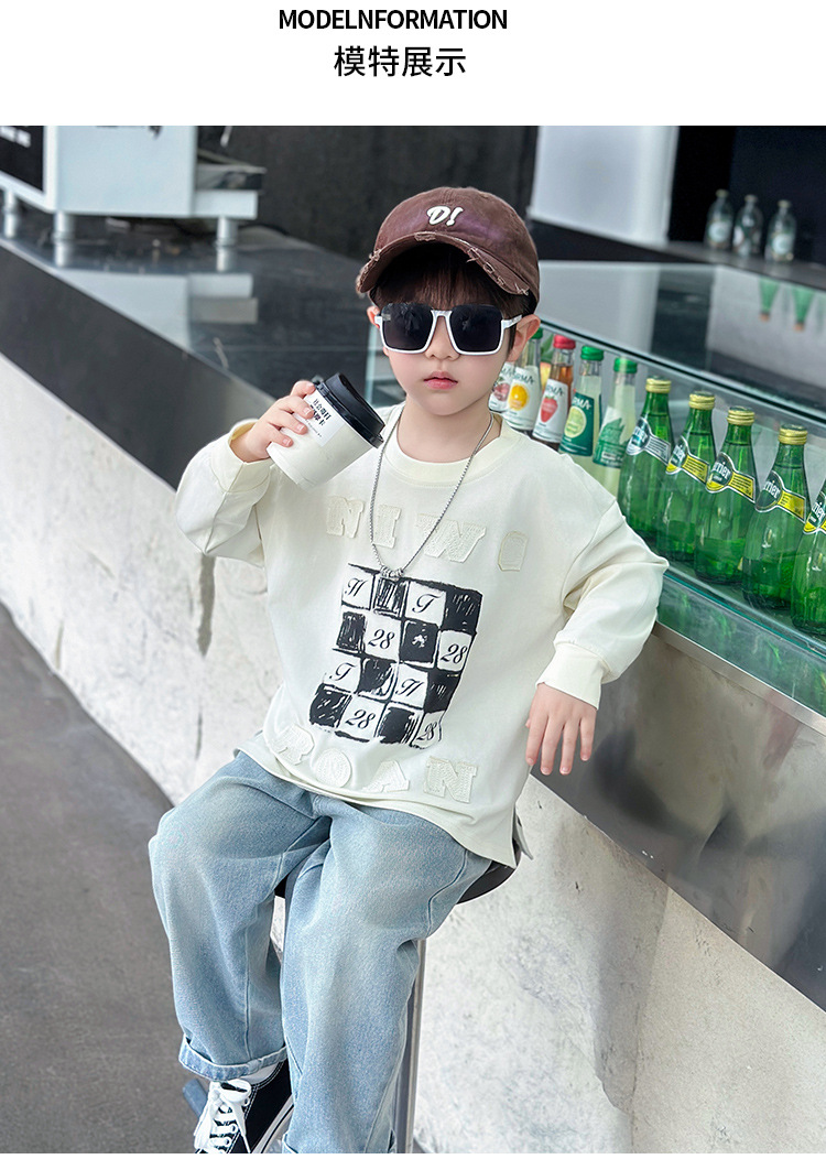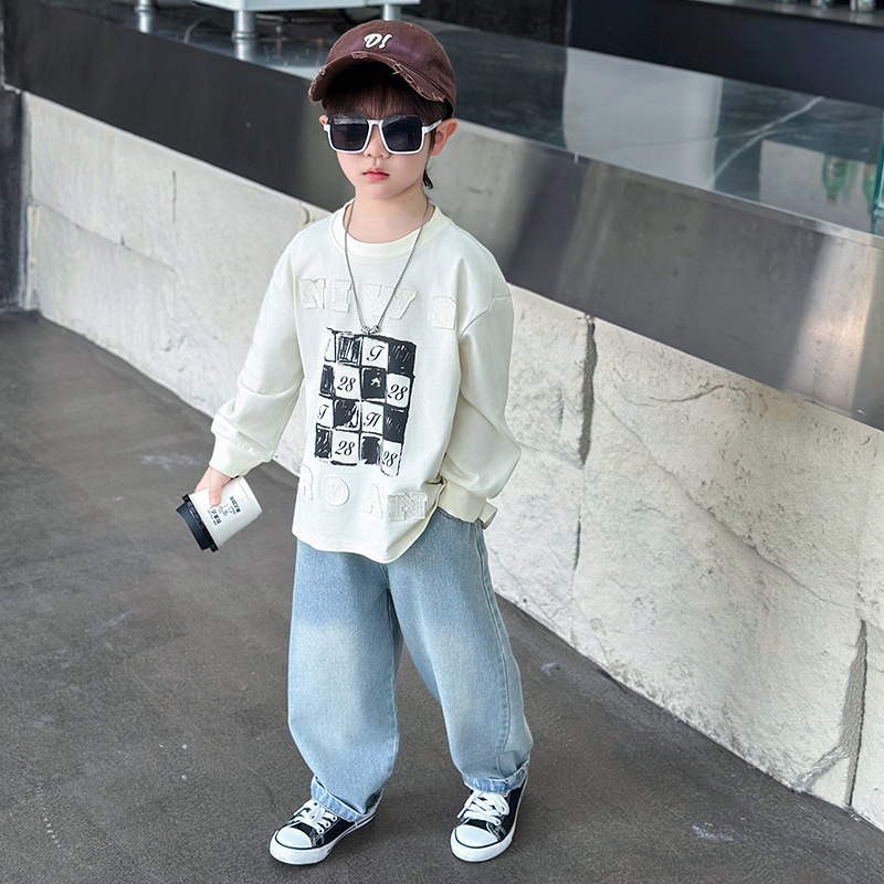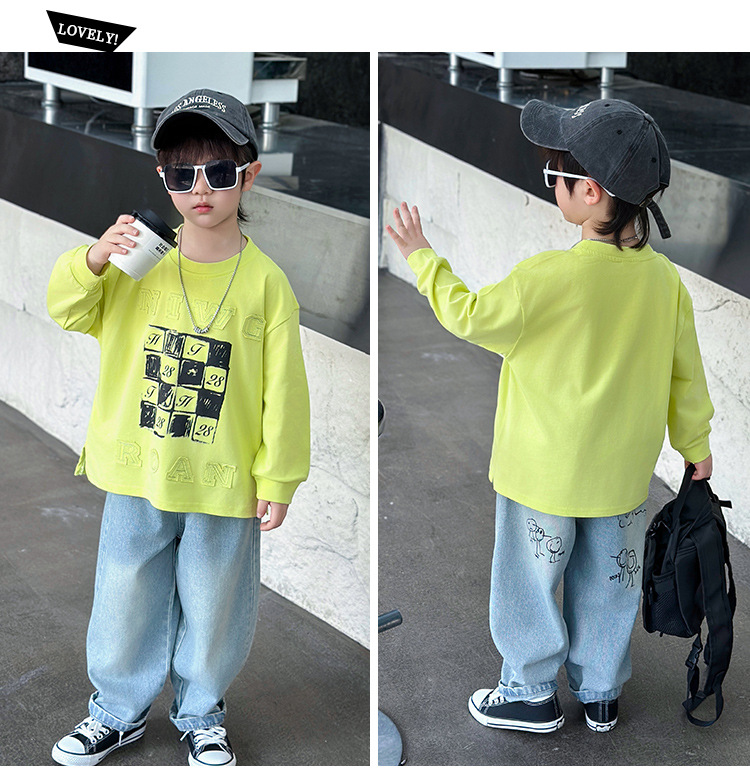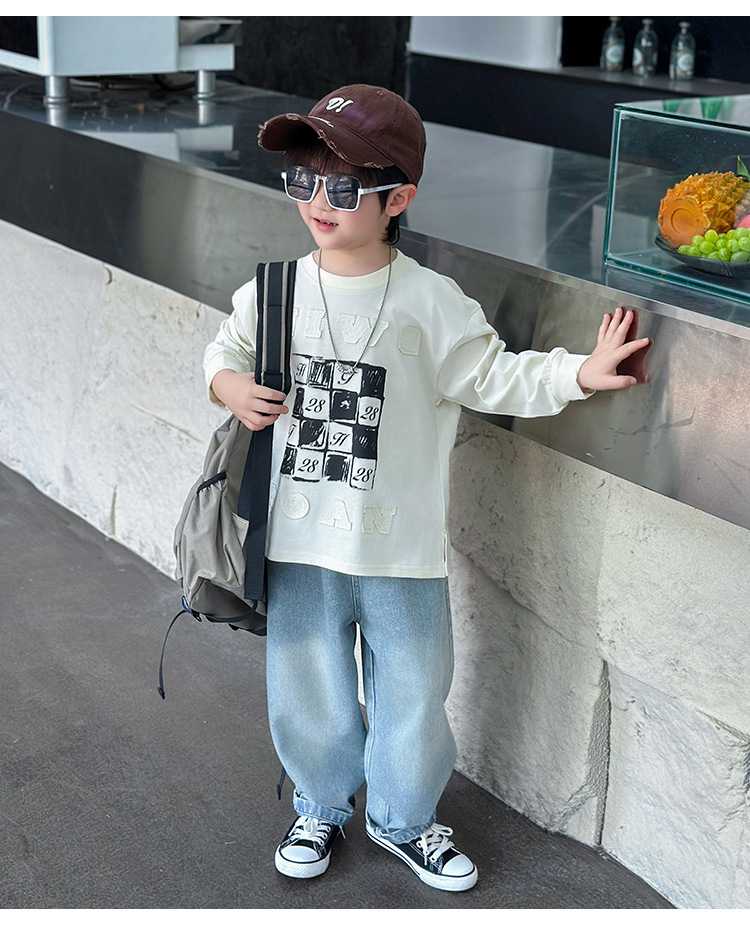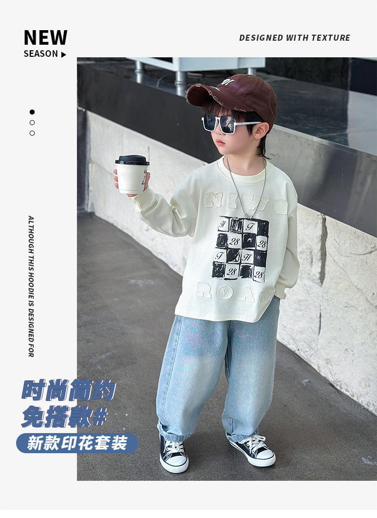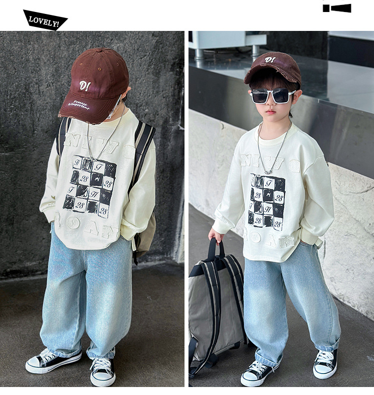 어린이 봄과 가을 바둑판 스웨터 세트 2025 봄 새로운 패션 멋진 남자 아기 그물 빨간색 유행 투피스 세트스토어 가기