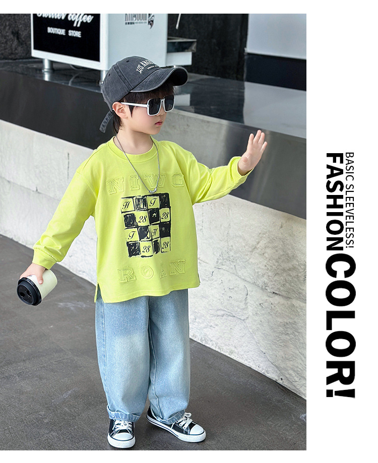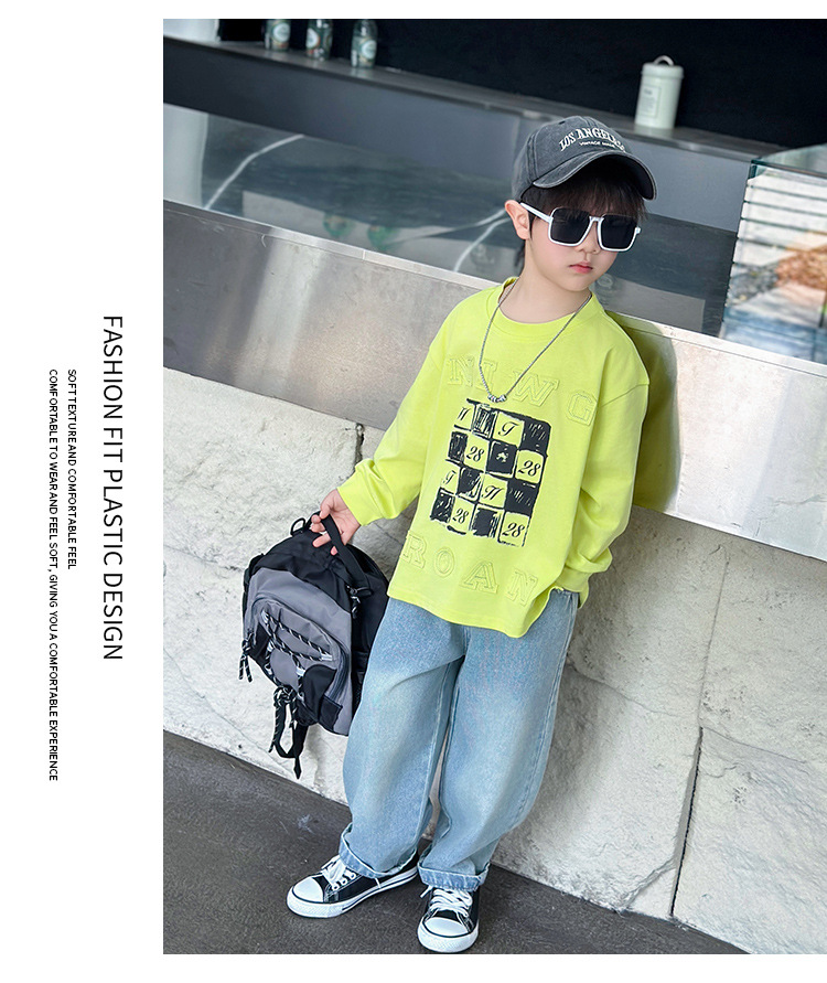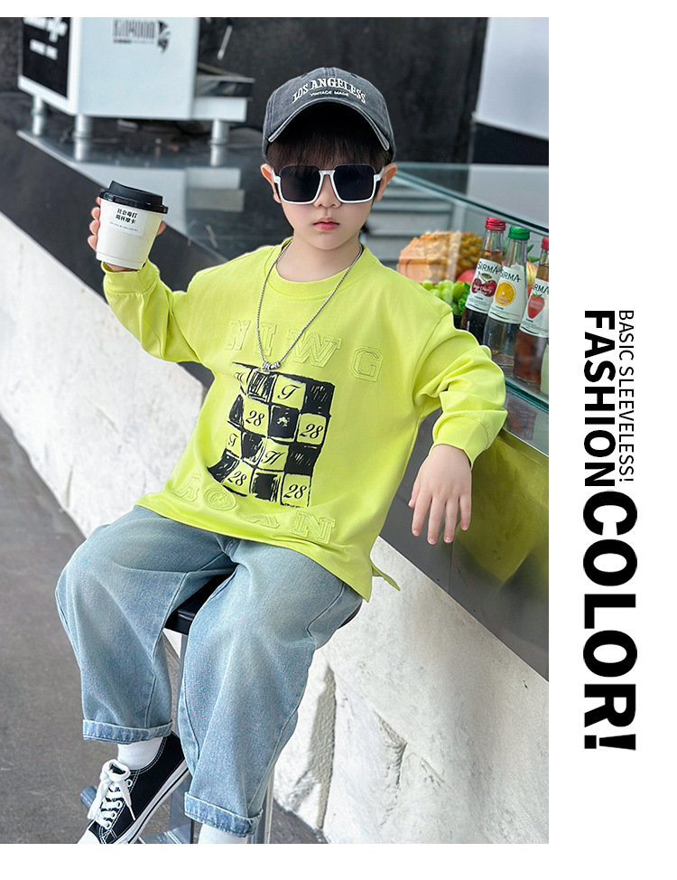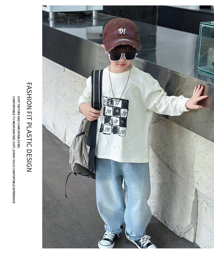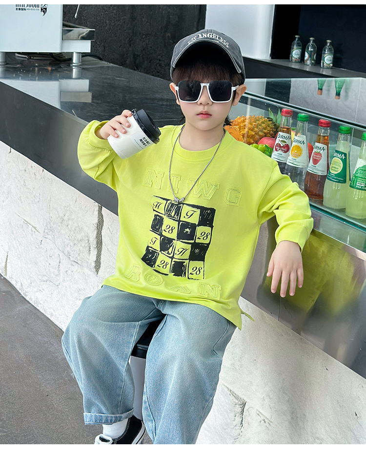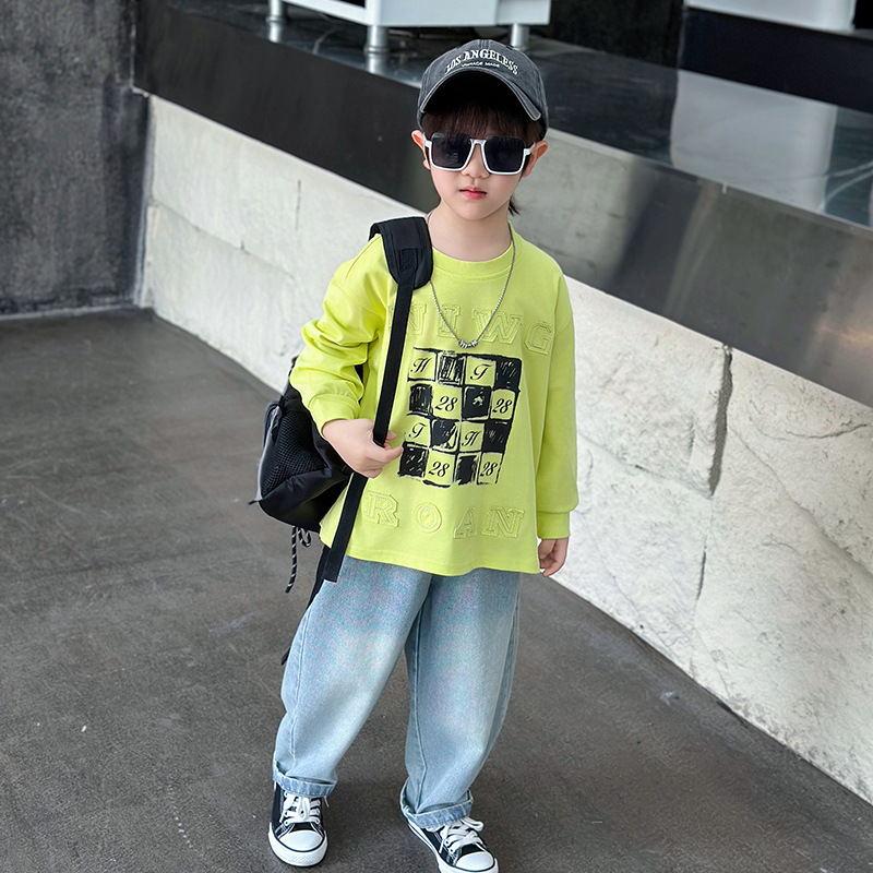 어린이 봄과 가을 바둑판 스웨터 세트 2025 봄 새로운 패션 멋진 남자 아기 그물 빨간색 유행 투피스 세트스토어 가기