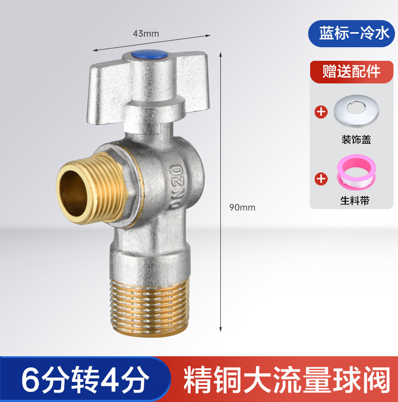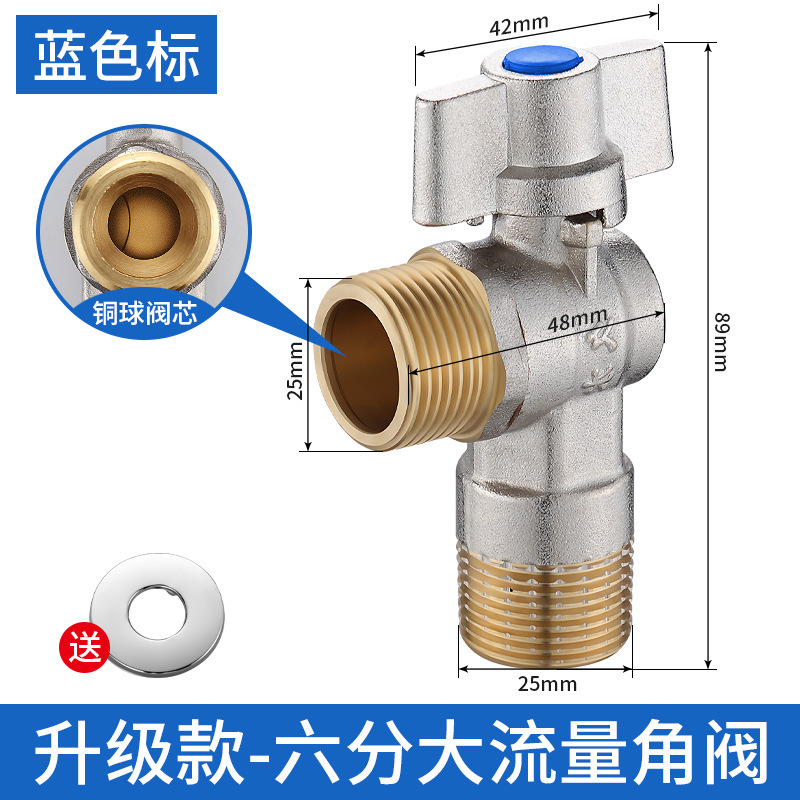 모든 구리 대형 흐름 삼각형 밸브 볼 코어 스위치 가스 온수기 냉수 및 온수 정지 밸브 4 점 6 점 각도 밸브