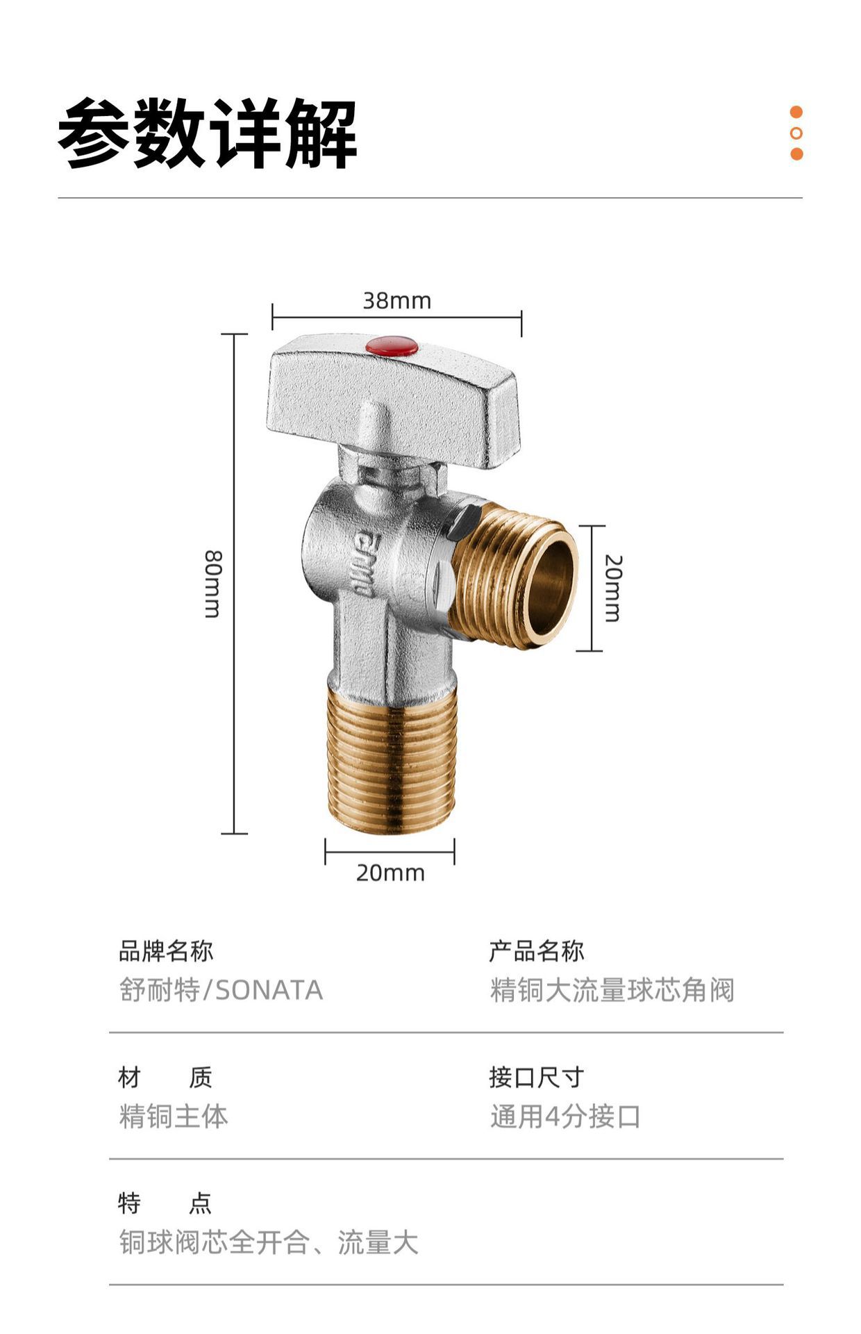 모든 구리 대형 흐름 삼각형 밸브 볼 코어 스위치 가스 온수기 냉수 및 온수 정지 밸브 4 점 6 점 각도 밸브스토어 가기