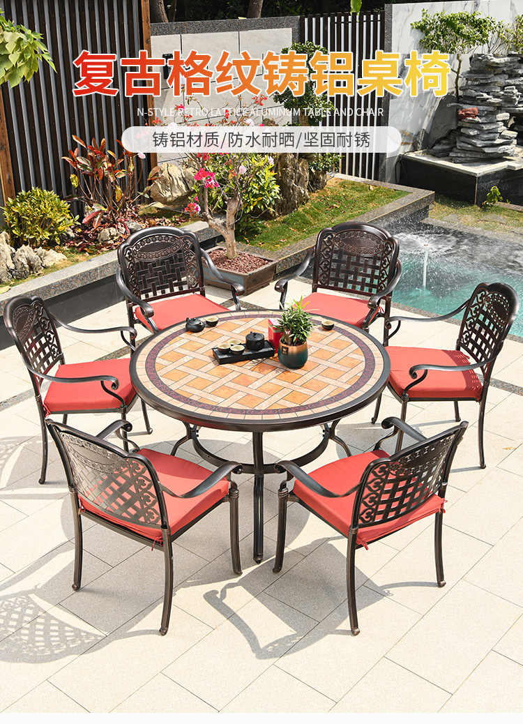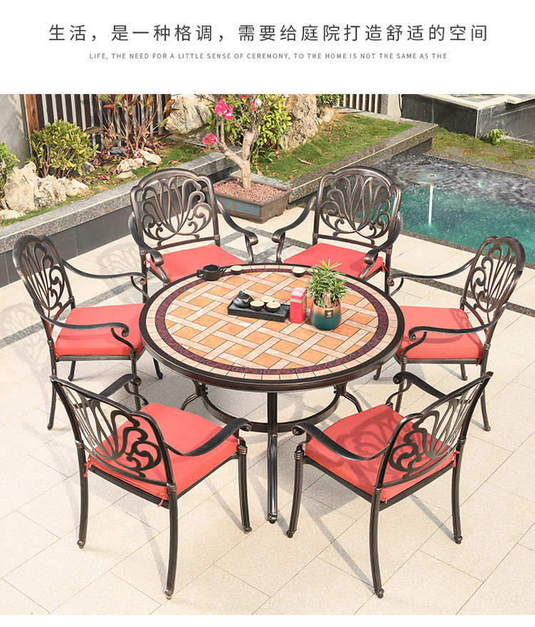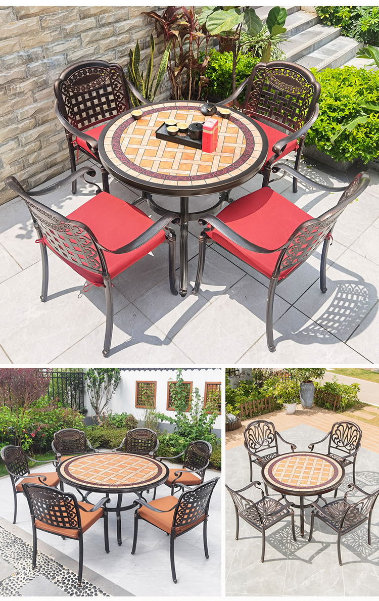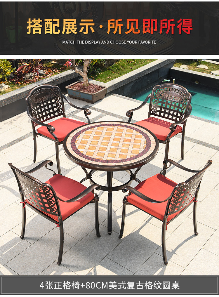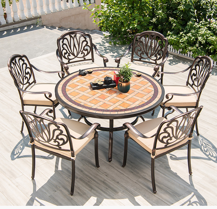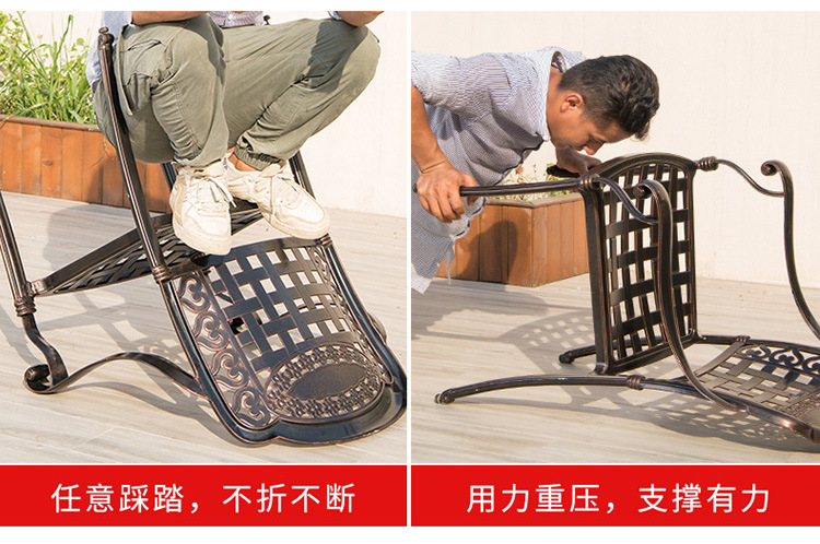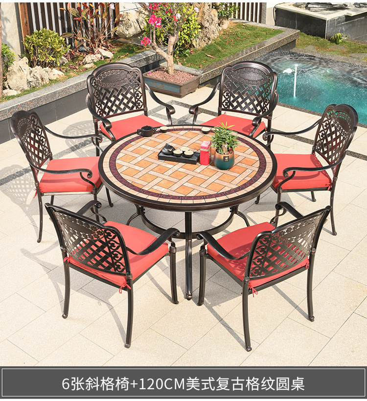 테라스 빌라 캐스트 알루미늄 테이블 및 의자 스윙 코트 야외 야외 정원 철 예술 내부 및 외부 정원 레저 의자 야드 식사 테이블스토어 가기
