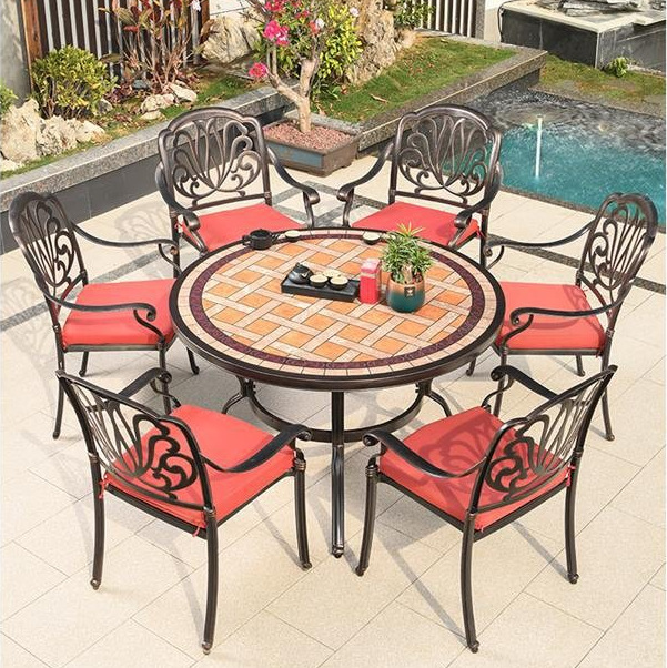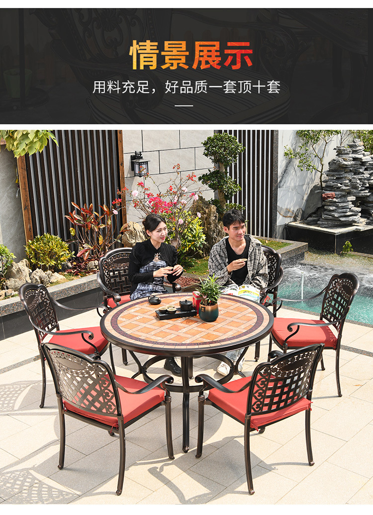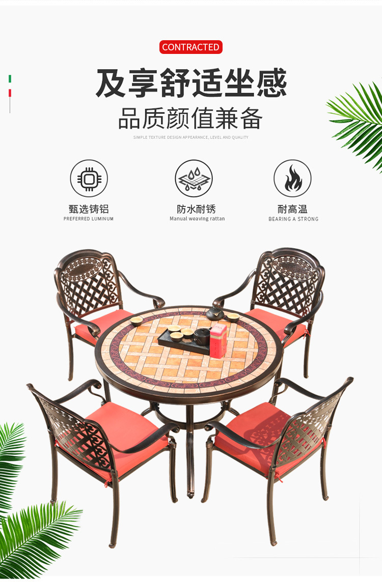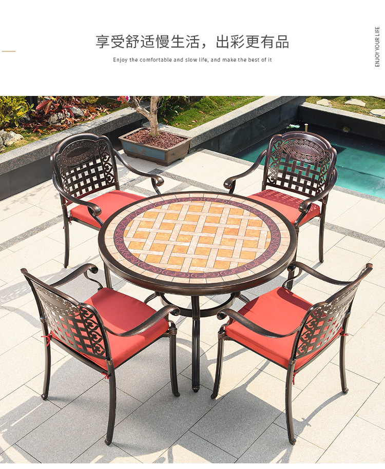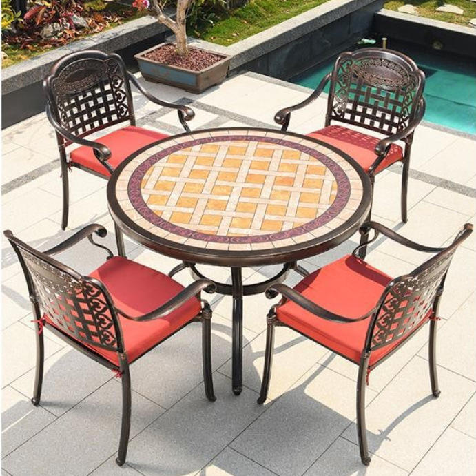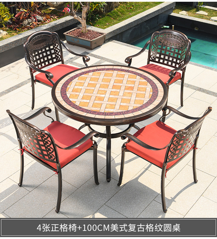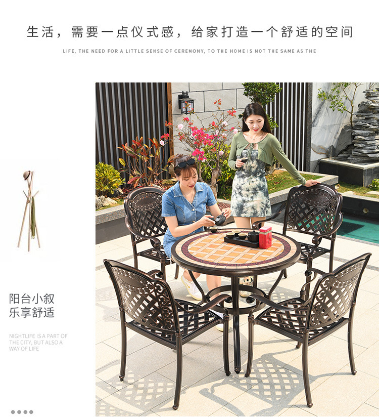테라스 빌라 캐스트 알루미늄 테이블 및 의자 스윙 코트 야외 야외 정원 철 예술 내부 및 외부 정원 레저 의자 야드 식사 테이블스토어 가기