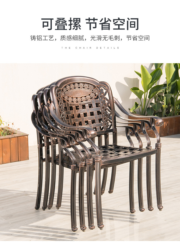 테라스 빌라 캐스트 알루미늄 테이블 및 의자 스윙 코트 야외 야외 정원 철 예술 내부 및 외부 정원 레저 의자 야드 식사 테이블