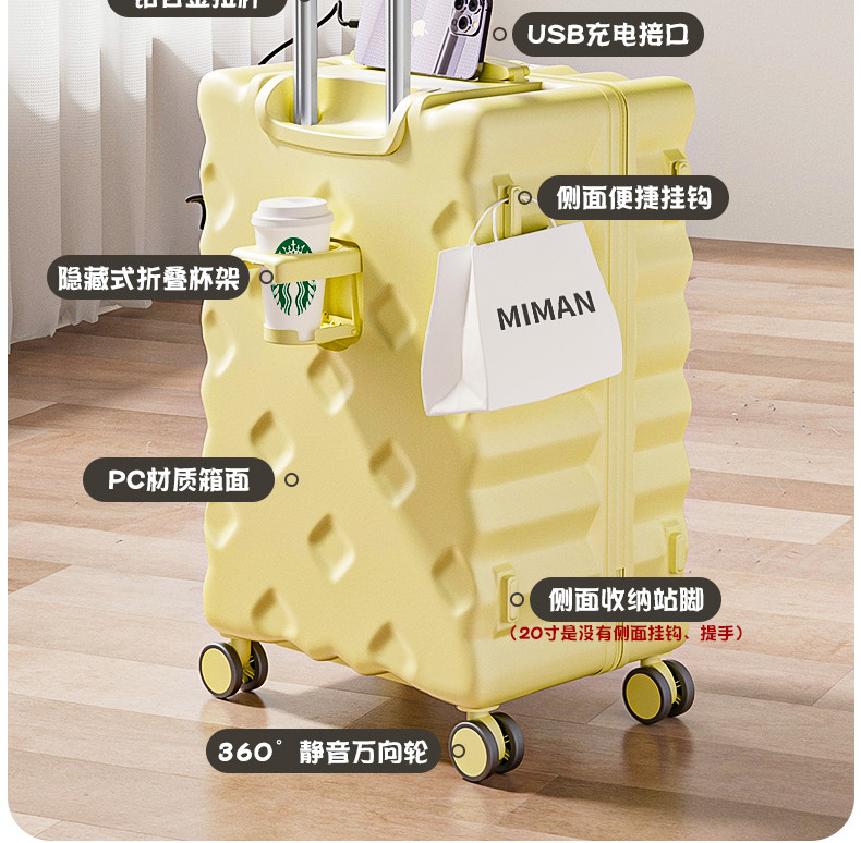 대용량 여행가방 여성용 2024 여행가방 20inch 탑승용 트롤리 비밀번호 가방 범용 휠 USB 충전스토어 가기