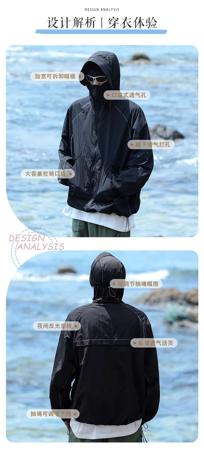 NASA 여름 태양 보호 의류 남성 아이스 실크 얇은 쿨 야외 스포츠 레저 낚시 의류 UV 보호 재킷