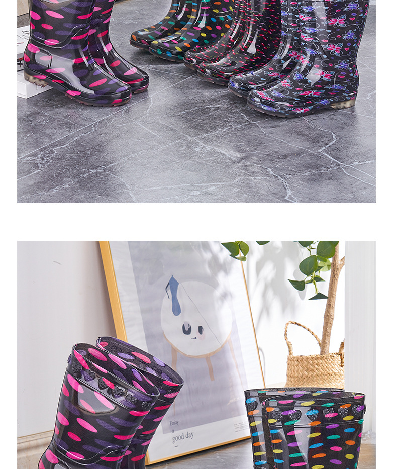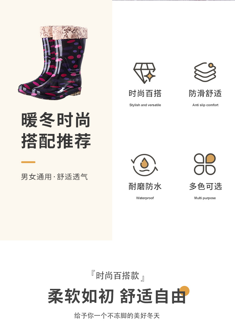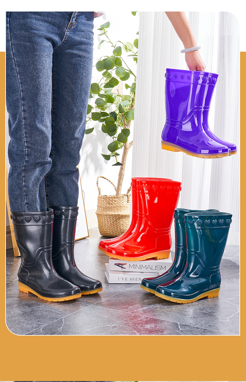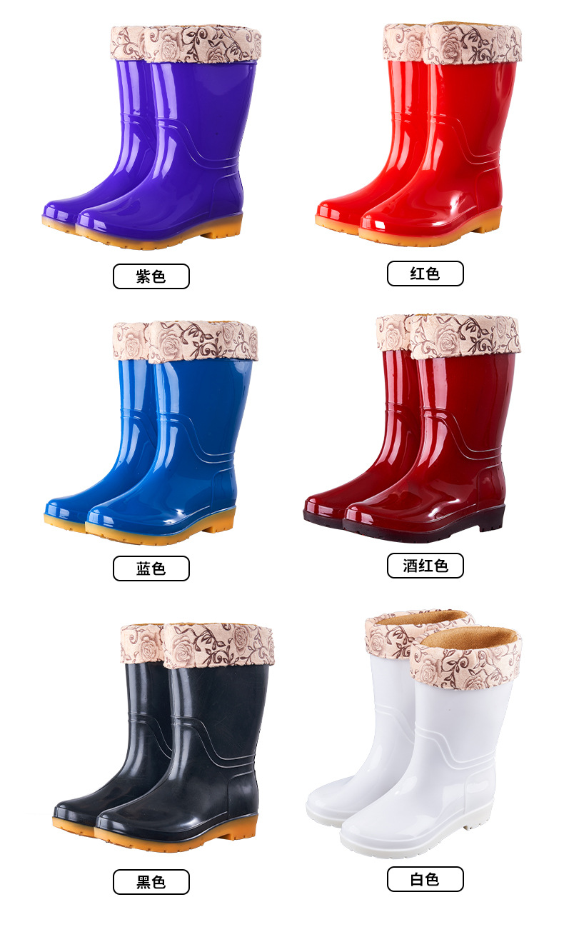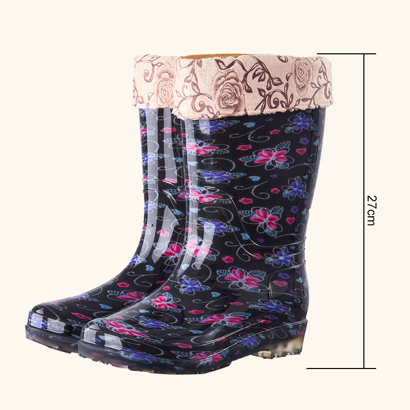 장화 여성용 미드 튜브 장화 성인 워터 슈즈 패션 워터 부츠 비 슬립 따뜻한 내마모성 기모 방수 노동 보호 신발스토어 가기