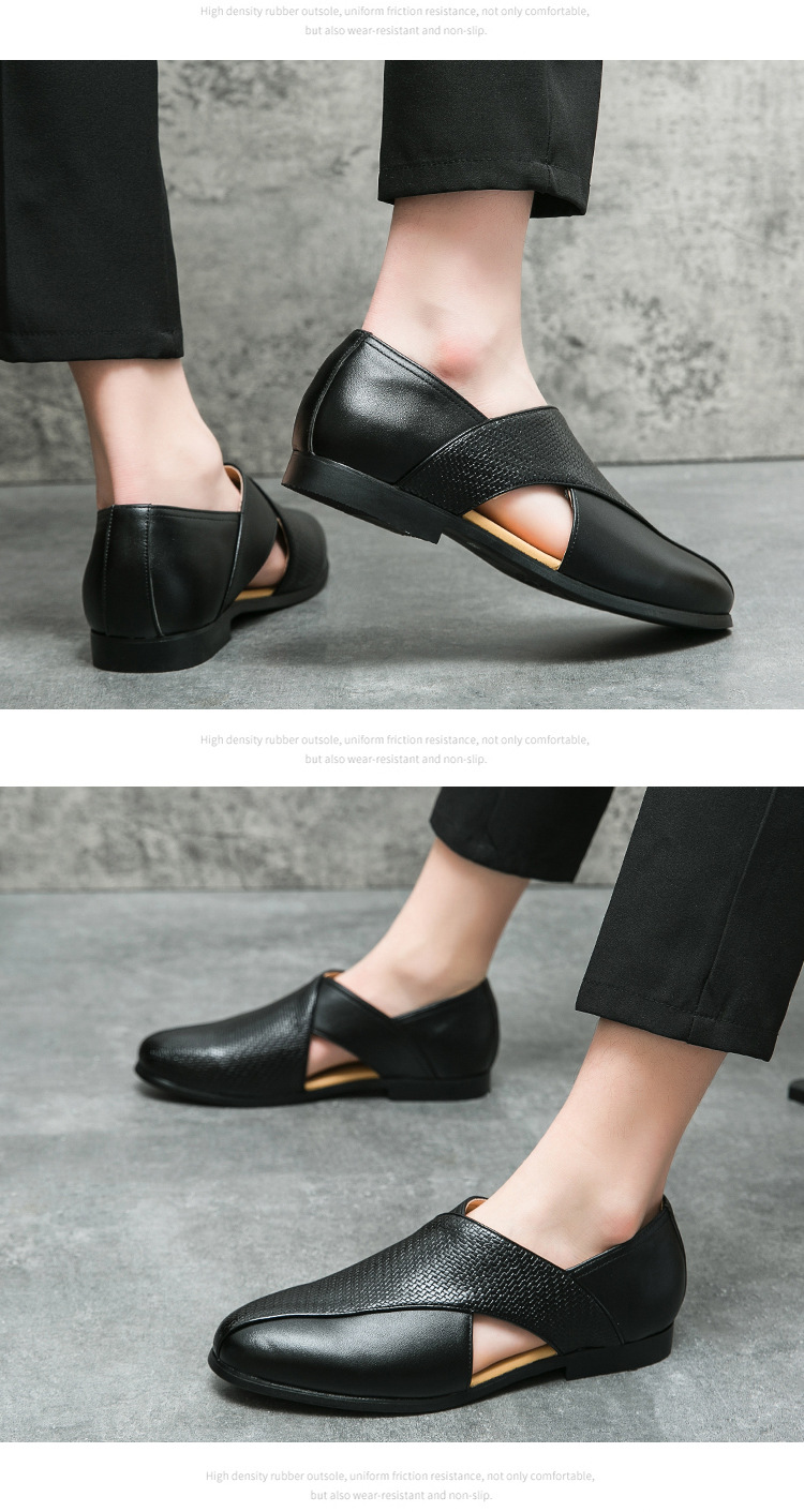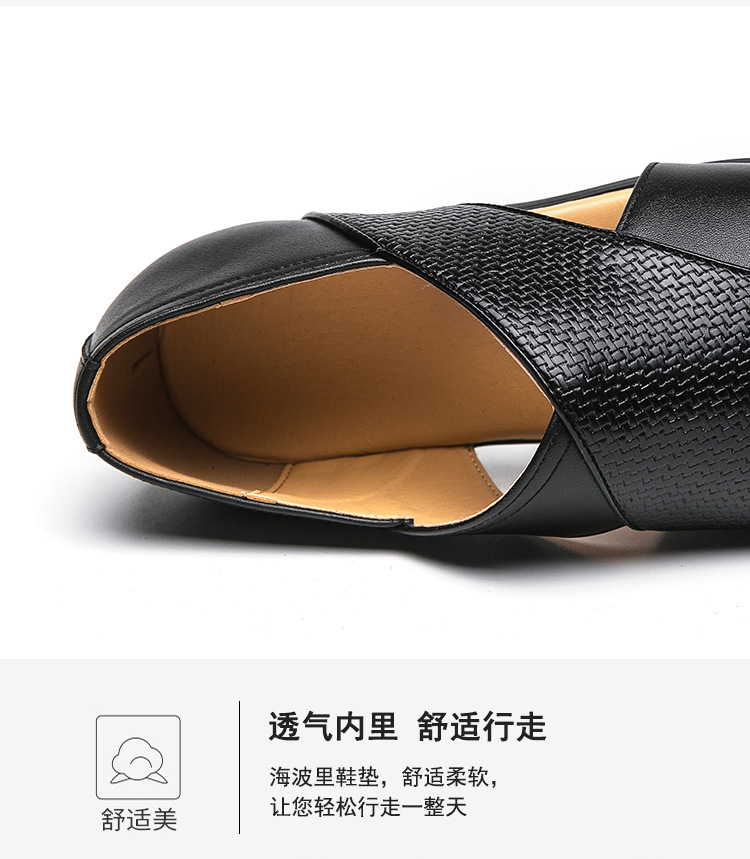 국경 새 여름 가죽 샌들 남성 플러스 사이즈 패션 영국 스타일 다리 샌들 남성용 빈 작은 가죽 신발