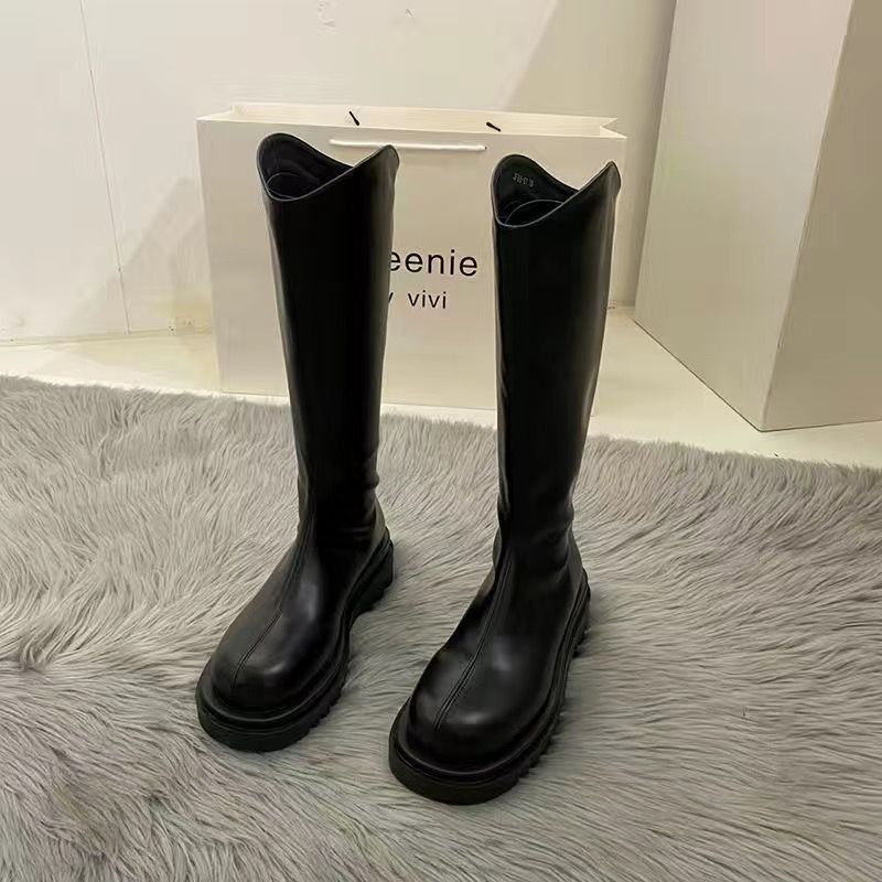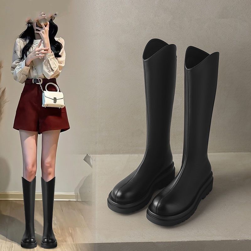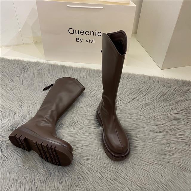 롱 부츠 여자 2025 봄과 가을 새로운 한국 스타일 올매치 하이 부츠 리어 지퍼 얇은 부츠 그러나 무릎 부츠스토어 가기