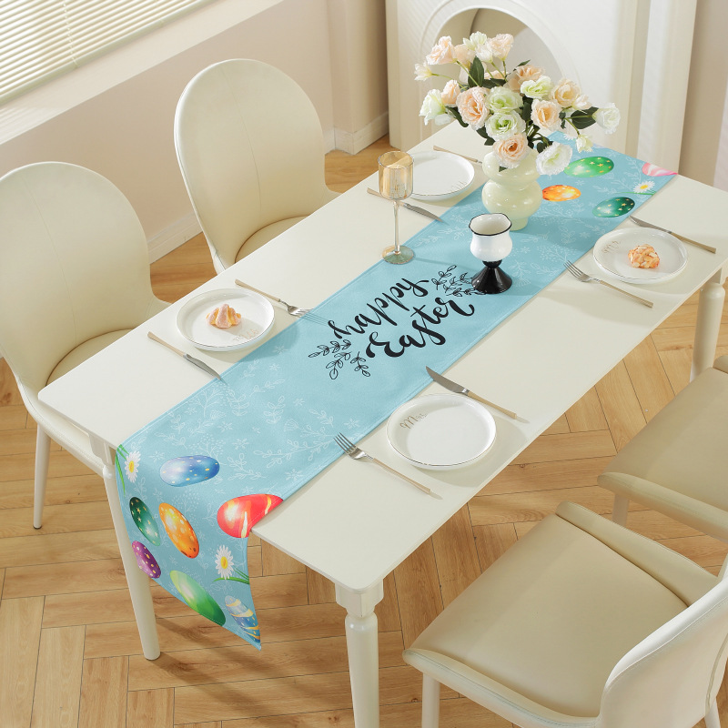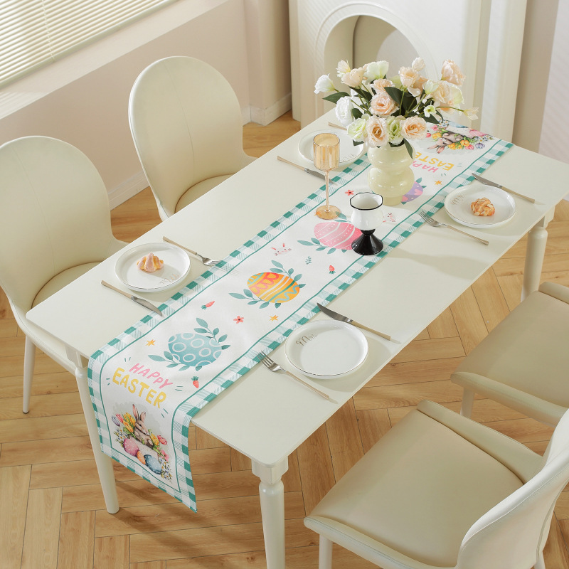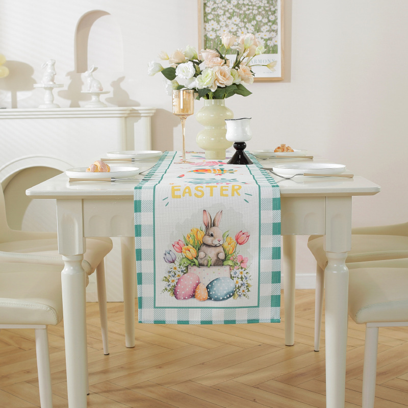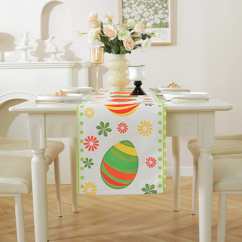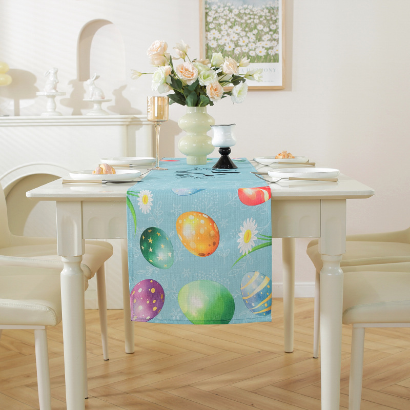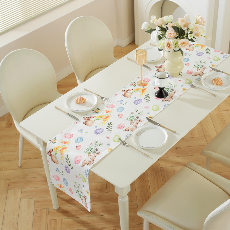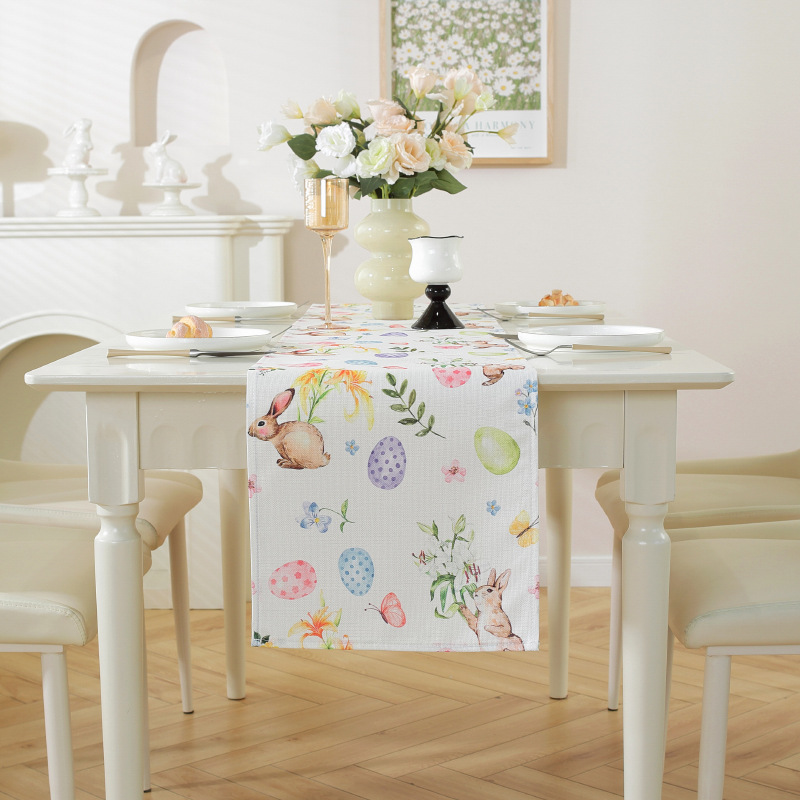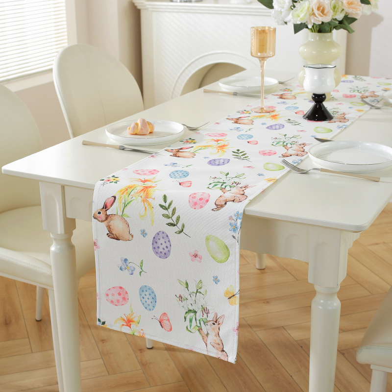 부활절 현대 간단한 직사각형 면화와 리넨 테이블 러너 토끼 계란 패턴 테이블 장식 테이블 천 러너스토어 가기