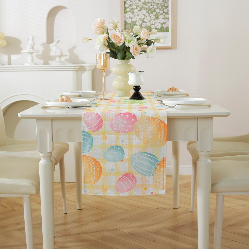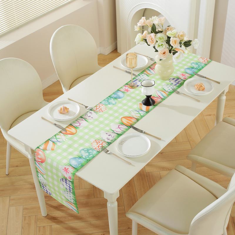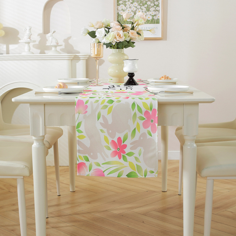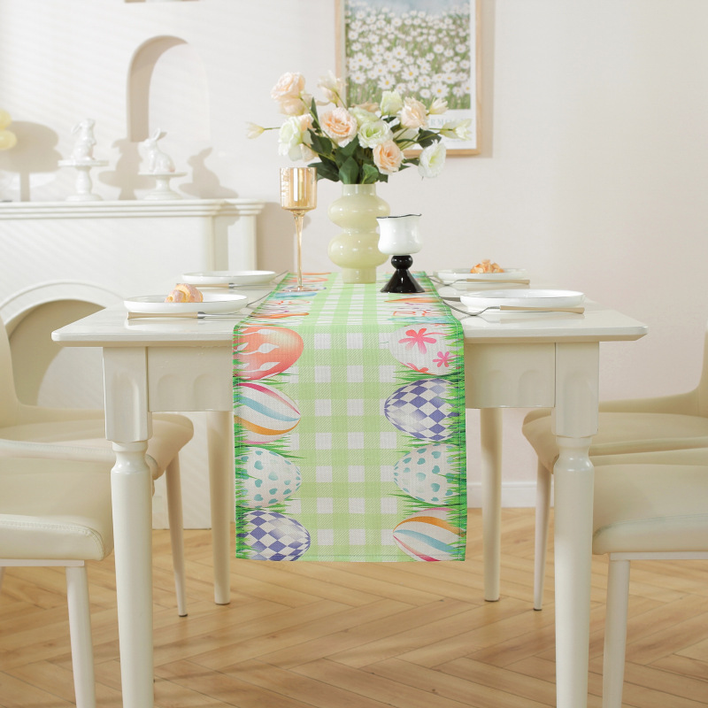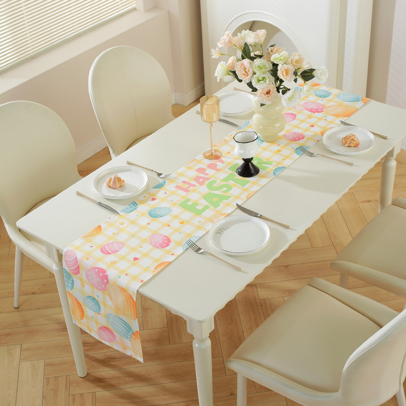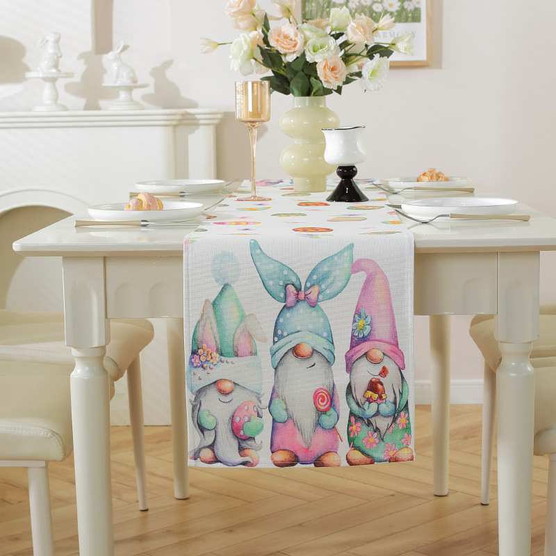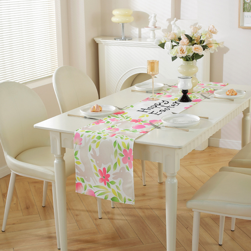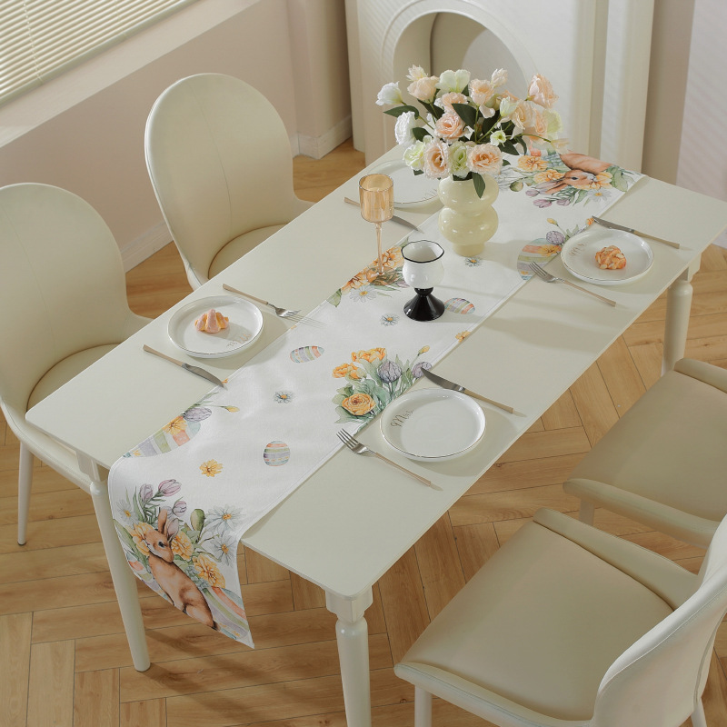 부활절 현대 간단한 직사각형 면화와 리넨 테이블 러너 토끼 계란 패턴 테이블 장식 테이블 천 러너스토어 가기