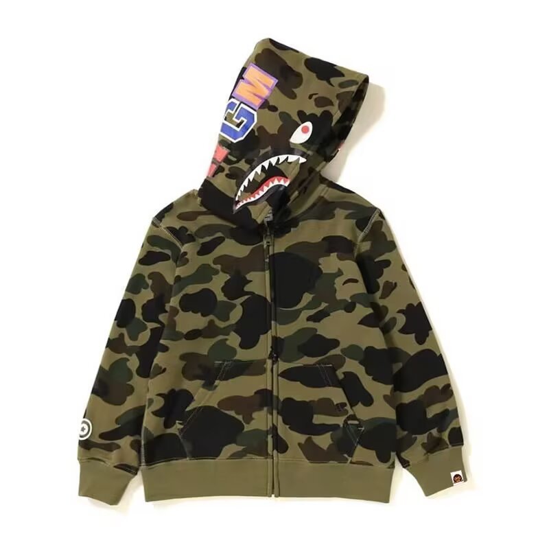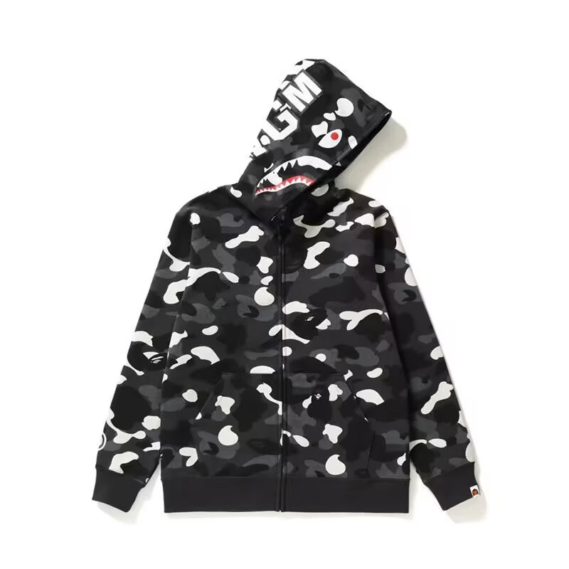 봄과 가을 새로운 무거운 일본 상어 머리 미국 스타일 유행 브랜드 위장 싱글 모자 스웨트 셔츠 후드 남성 및 여성 코트 트렌디스토어 가기