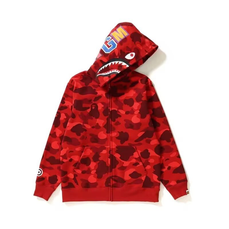 봄과 가을 새로운 무거운 일본 상어 머리 미국 스타일 유행 브랜드 위장 싱글 모자 스웨트 셔츠 후드 남성 및 여성 코트 트렌디