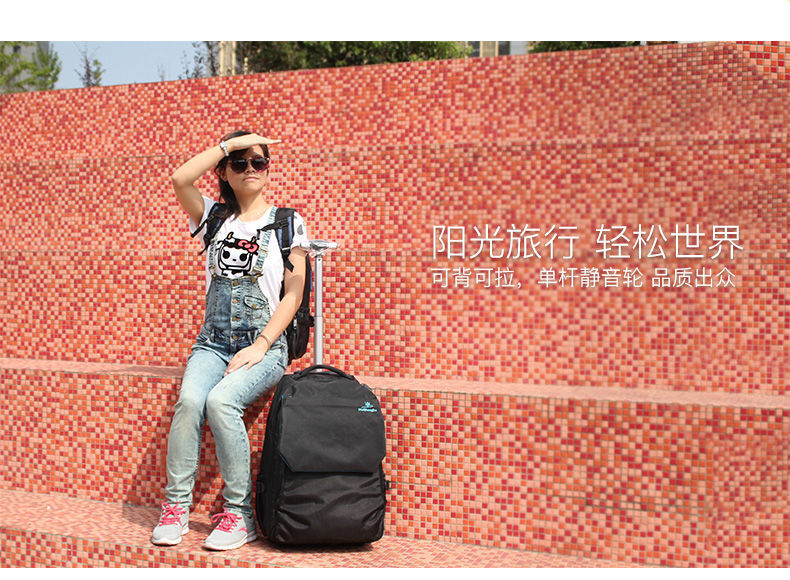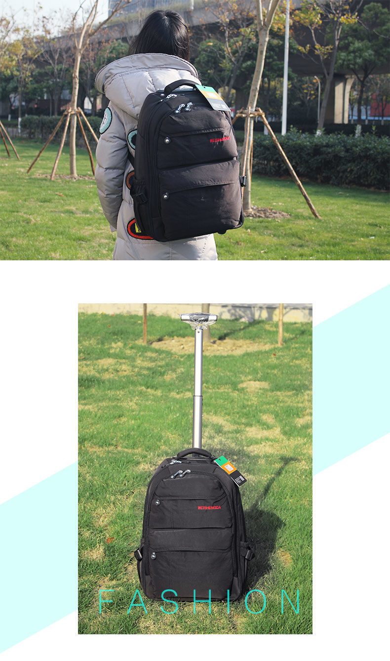 Wang Zifang Pull Rod Backpack 더블 어깨 여행 가방 중학생 풀로드 스쿨백 고등학교 학생 수하물 가방 20 인치 Dengryh