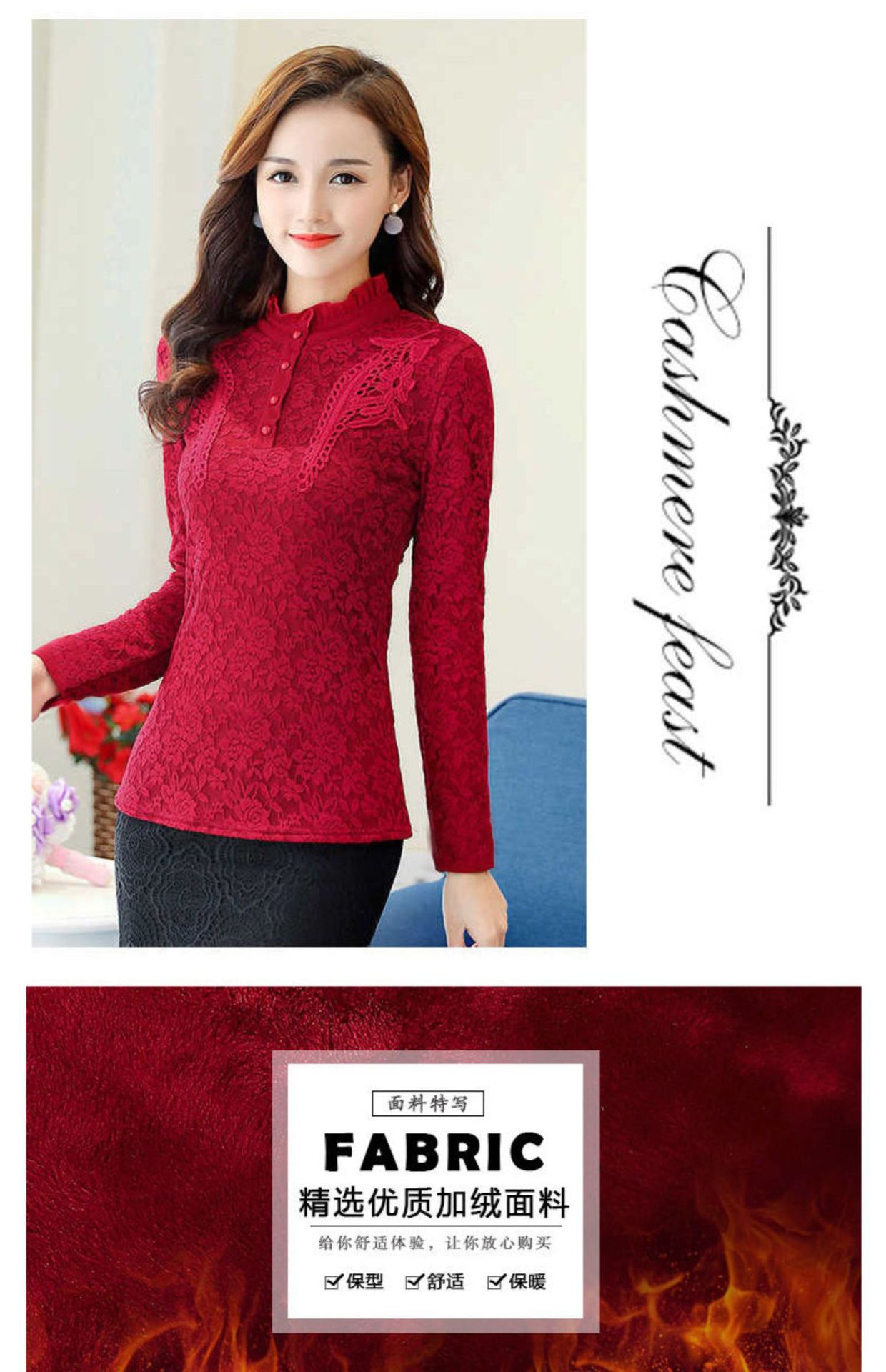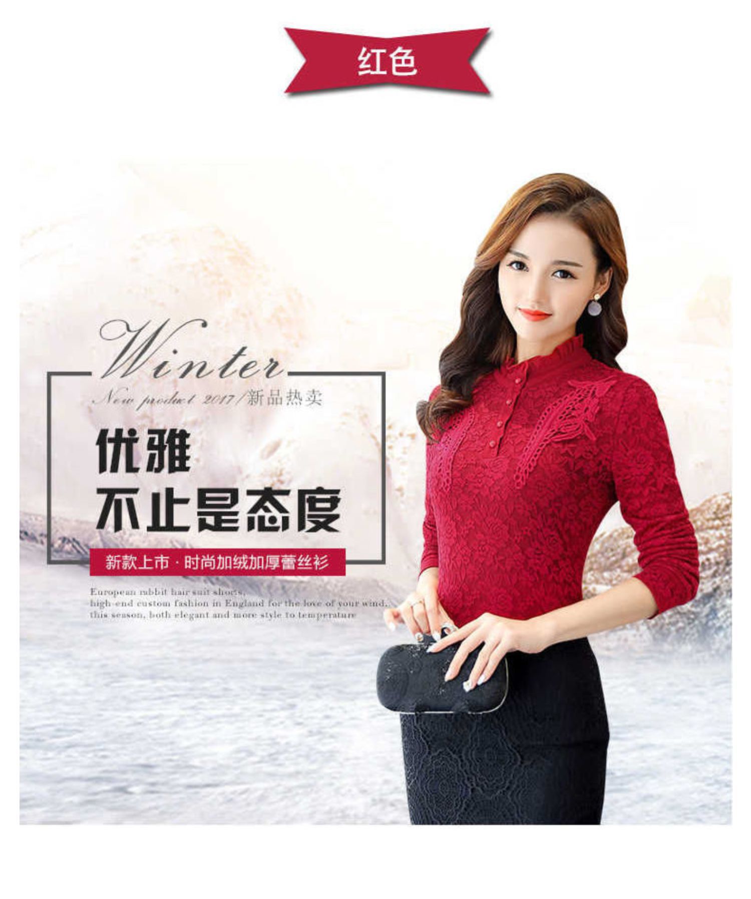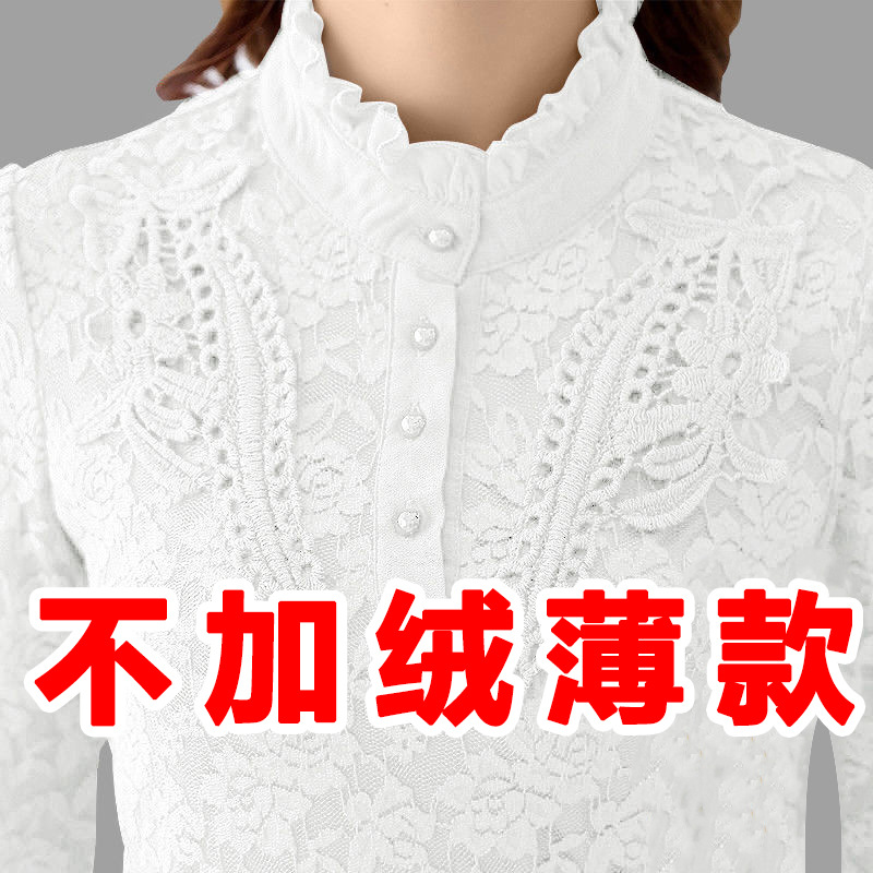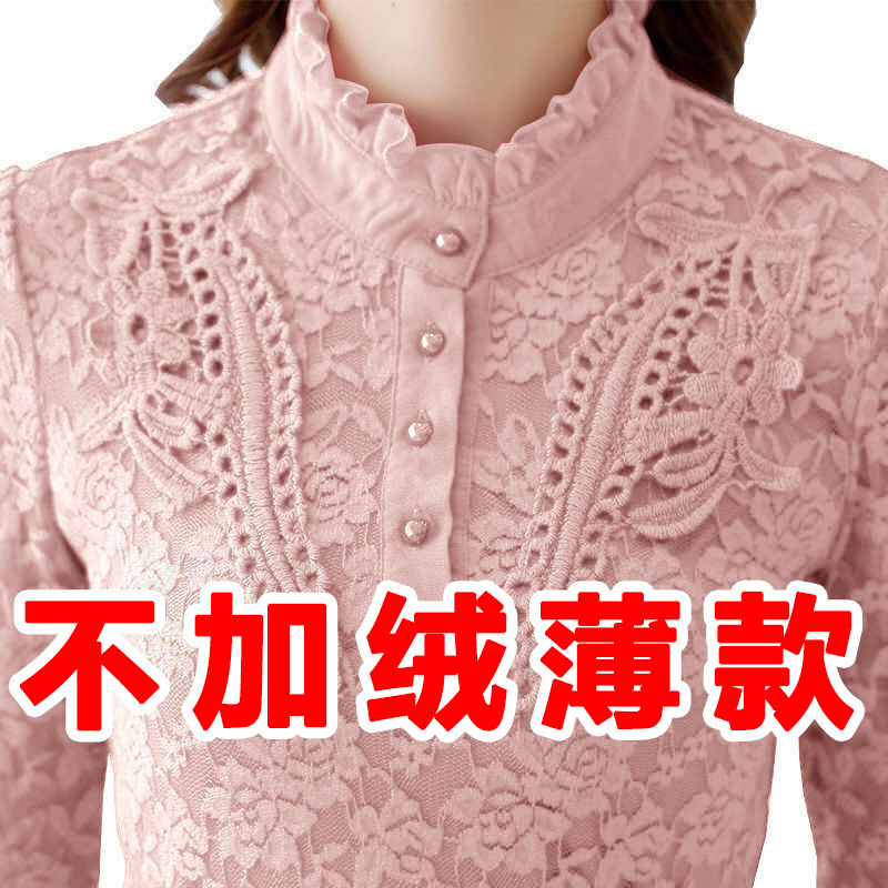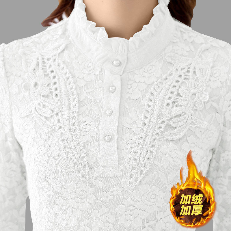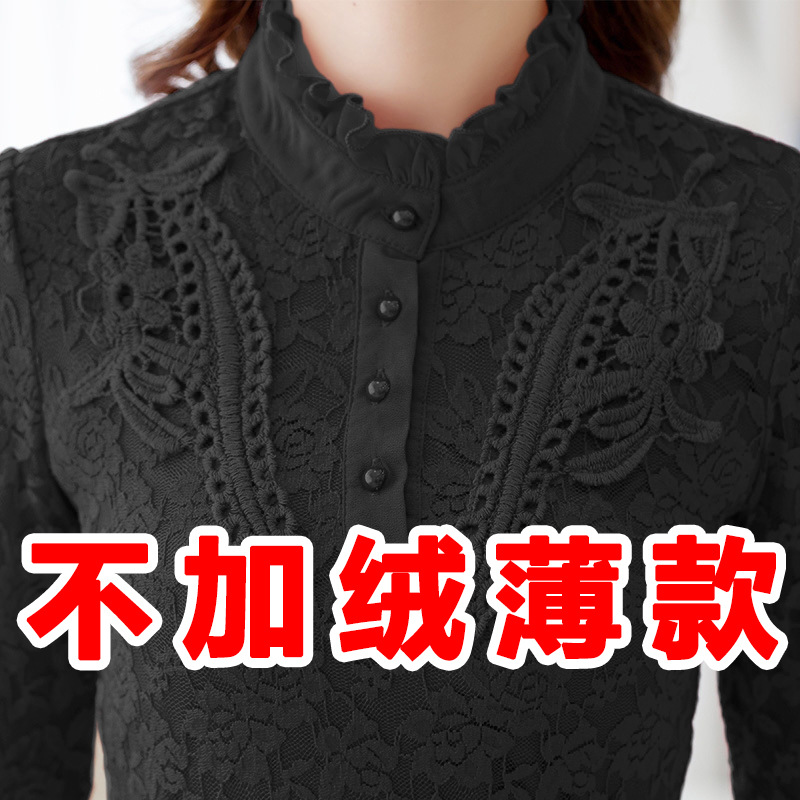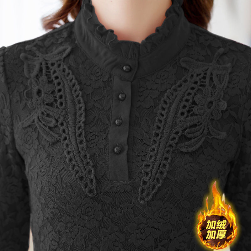 기모 두꺼운 가을과 겨울 새로운베이스 셔츠 여성용 유행 레이스 셔츠 내부 플러스 사이즈 슬림핏 슬리밍 탑 셔츠스토어 가기