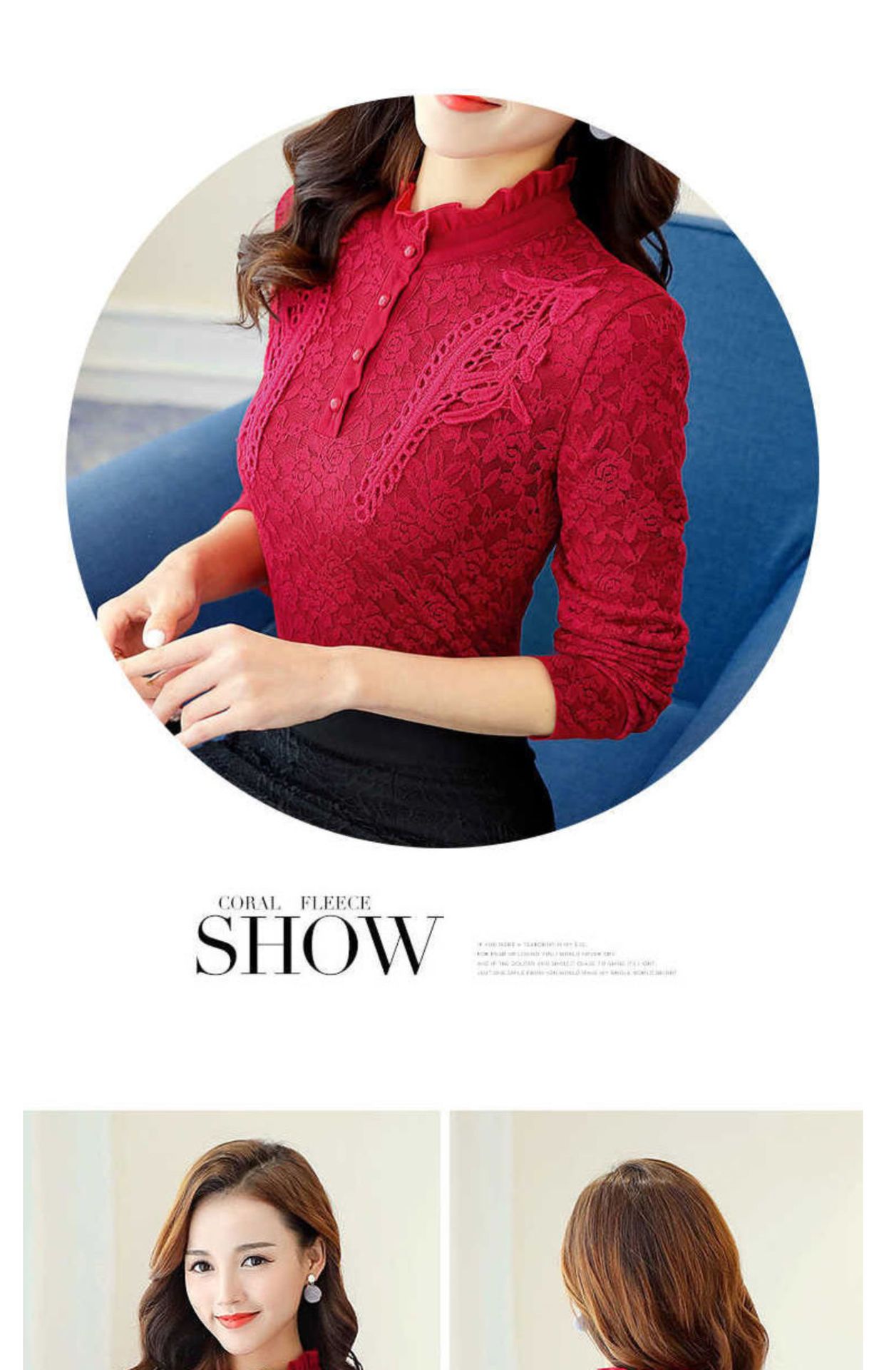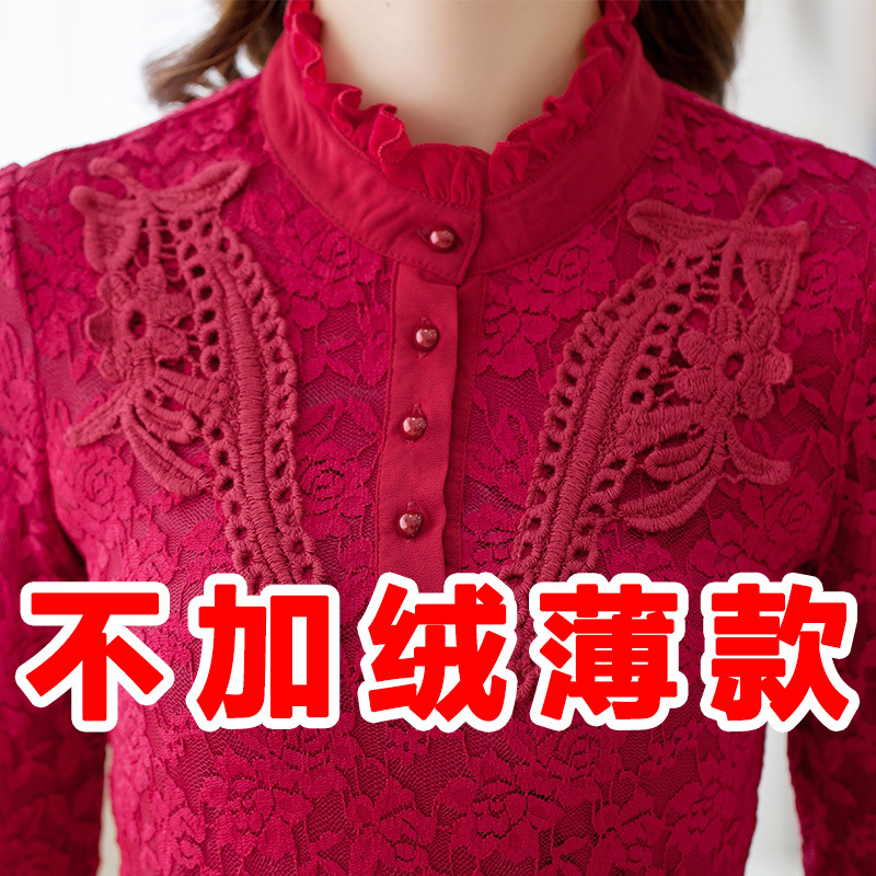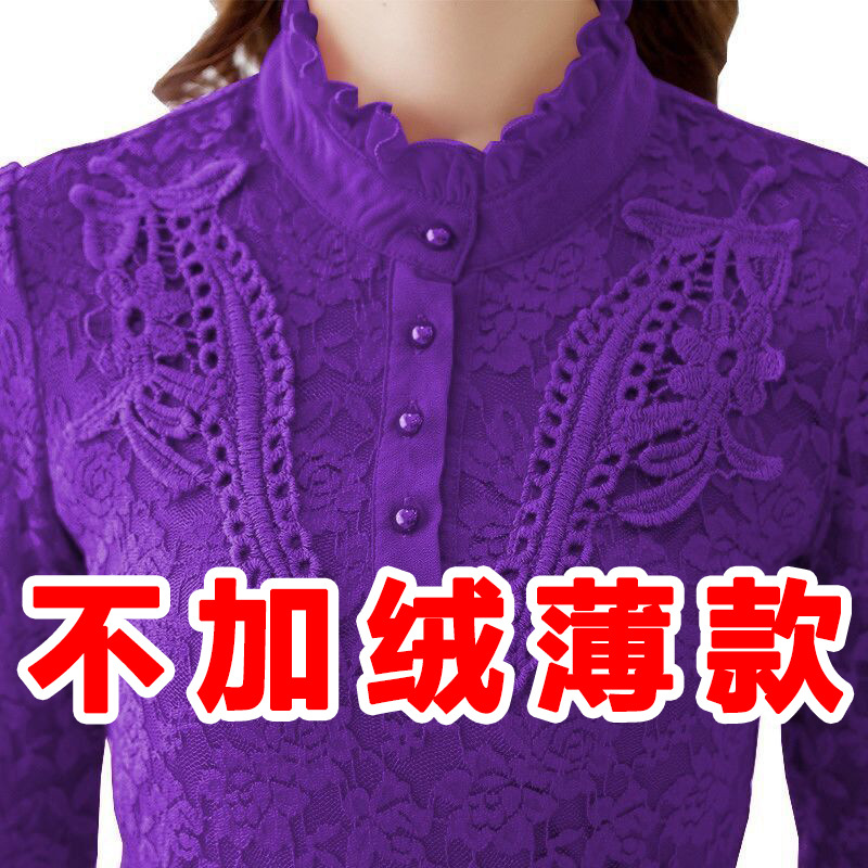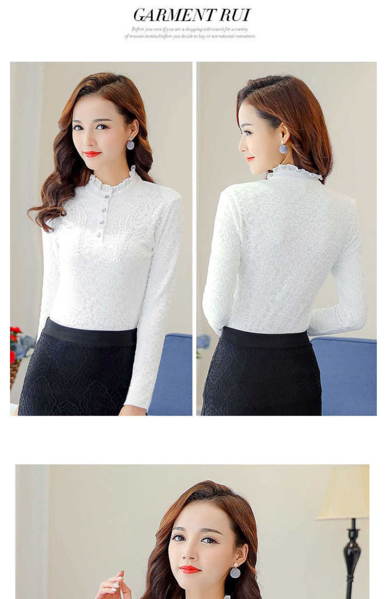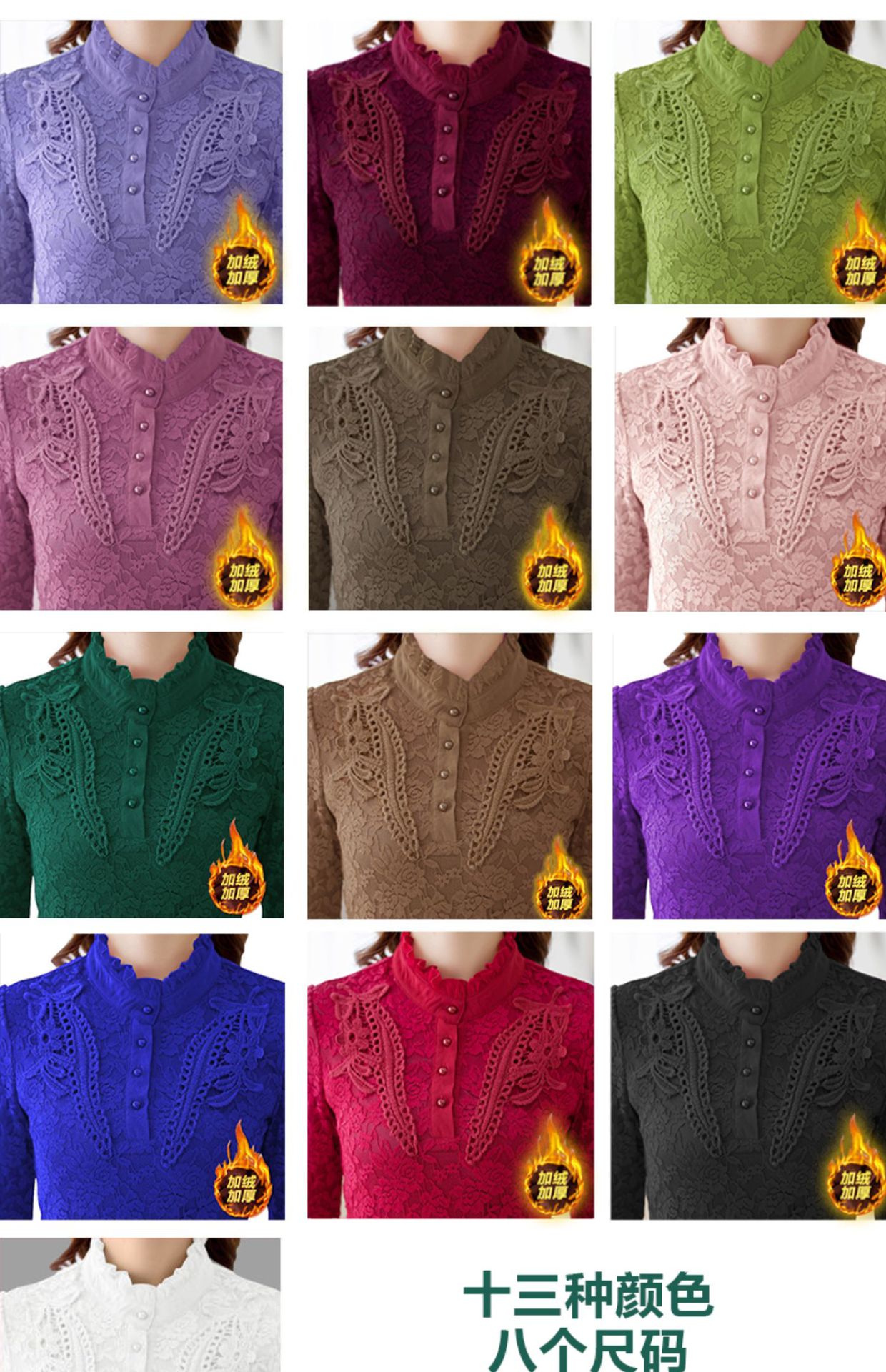 기모 두꺼운 가을과 겨울 새로운베이스 셔츠 여성용 유행 레이스 셔츠 내부 플러스 사이즈 슬림핏 슬리밍 탑 셔츠스토어 가기
