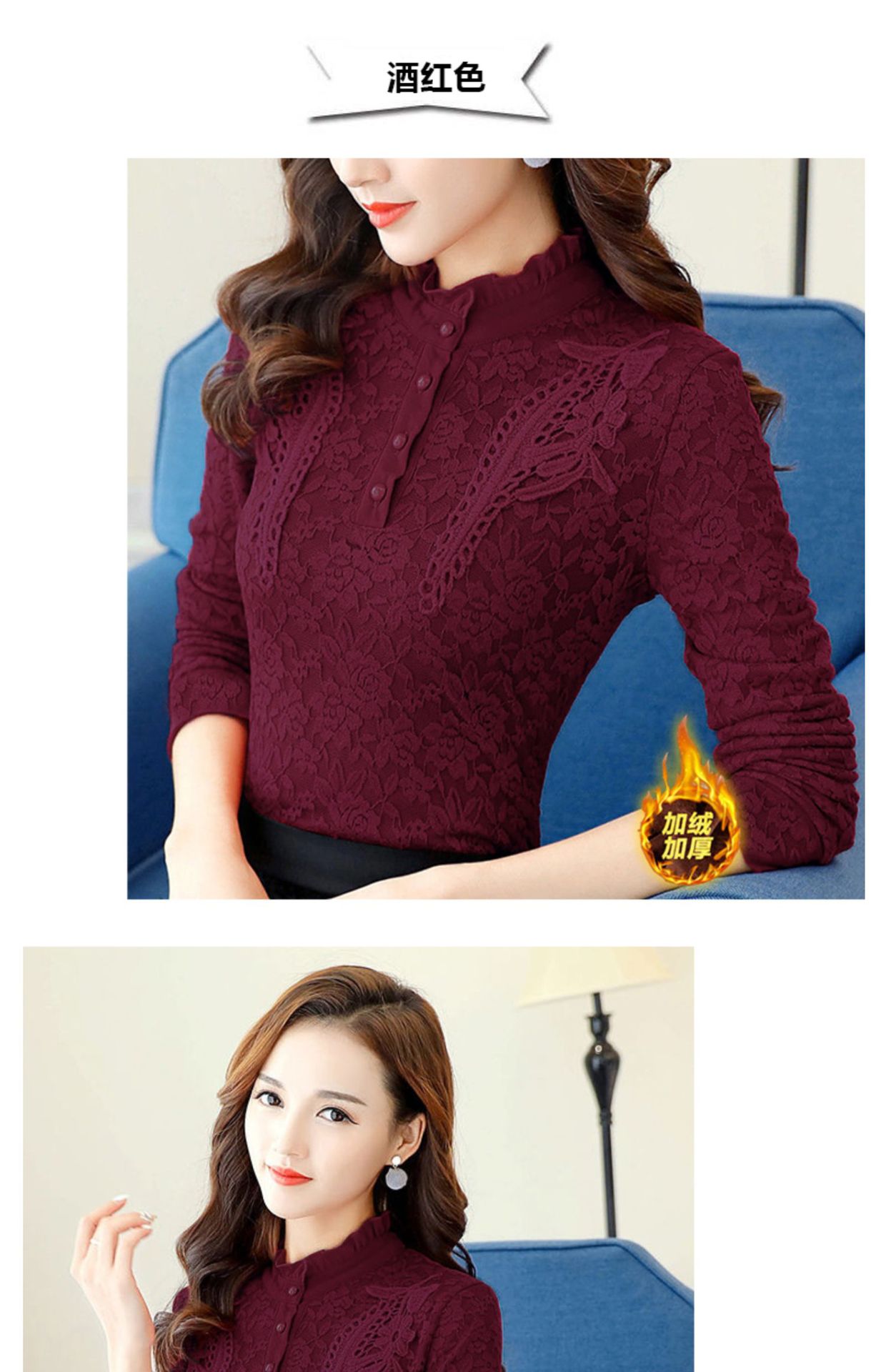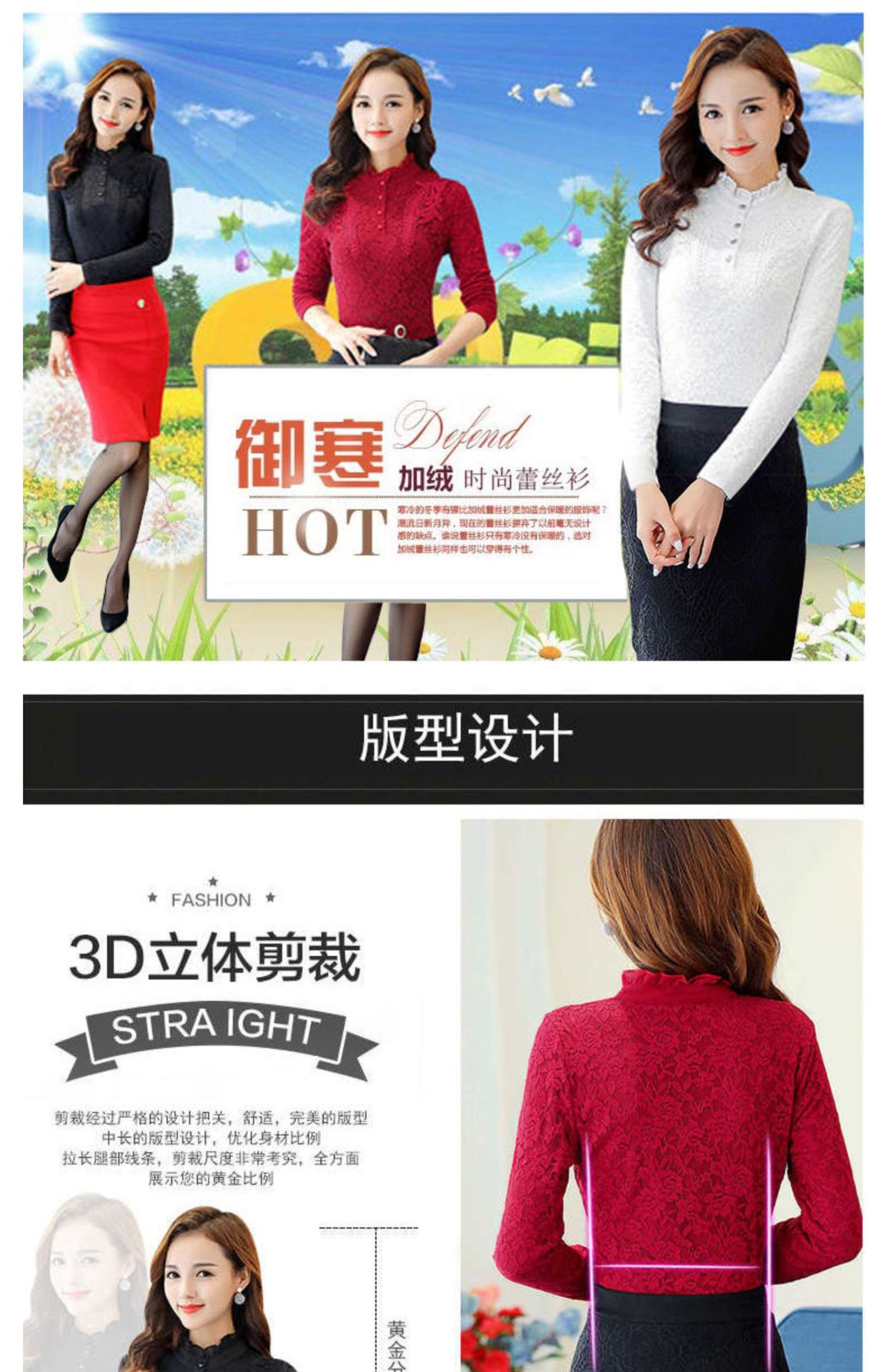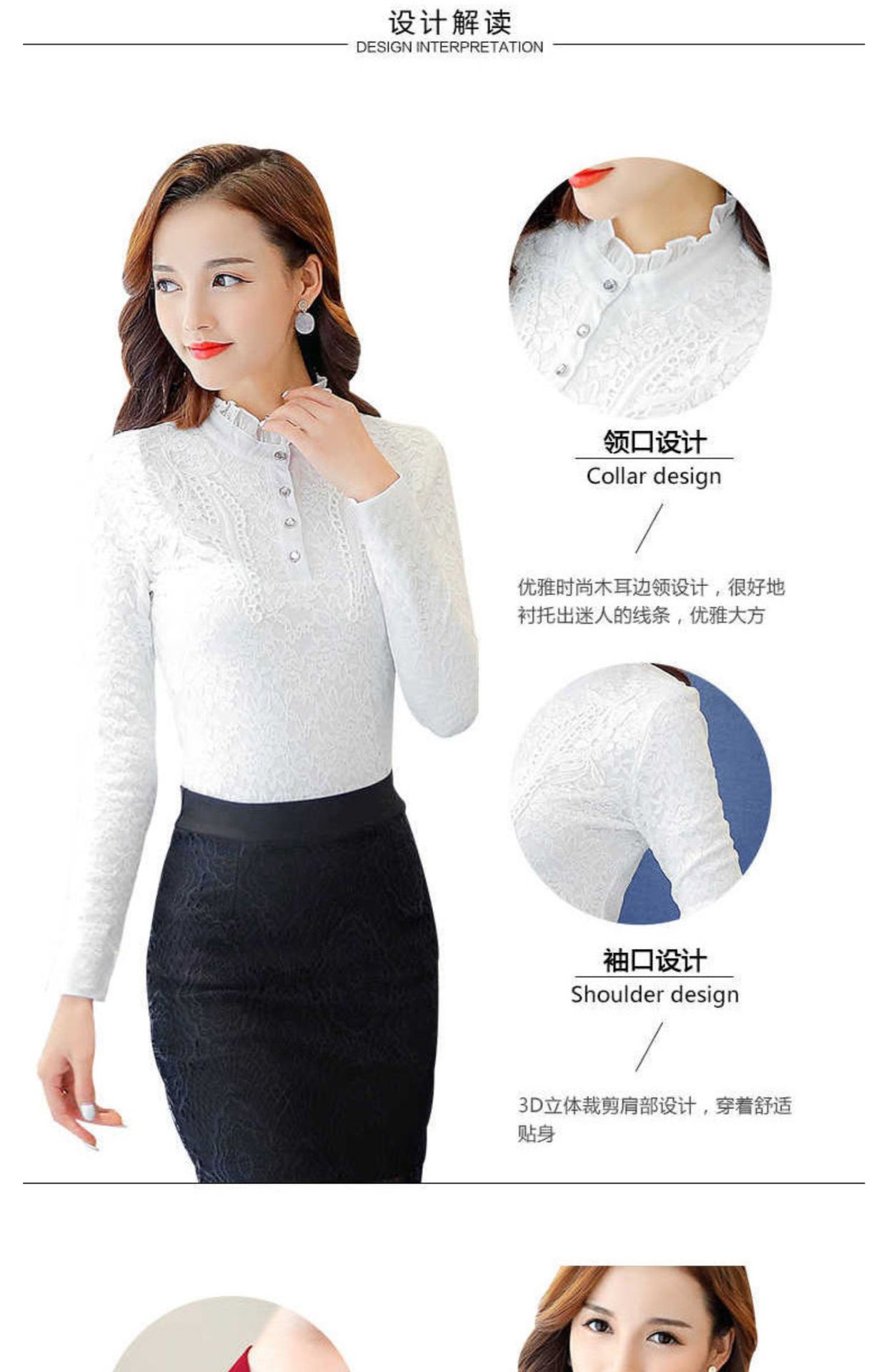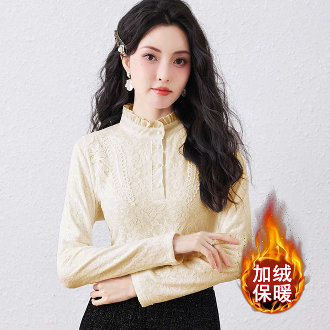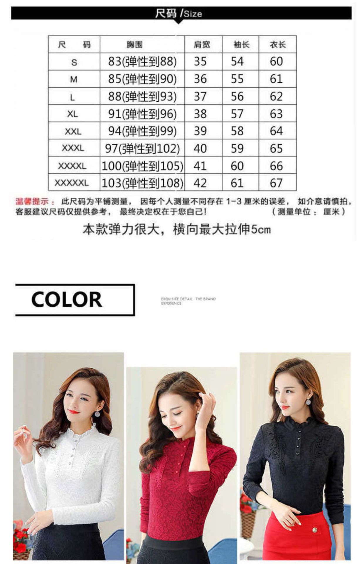기모 두꺼운 가을과 겨울 새로운베이스 셔츠 여성용 유행 레이스 셔츠 내부 플러스 사이즈 슬림핏 슬리밍 탑 셔츠스토어 가기