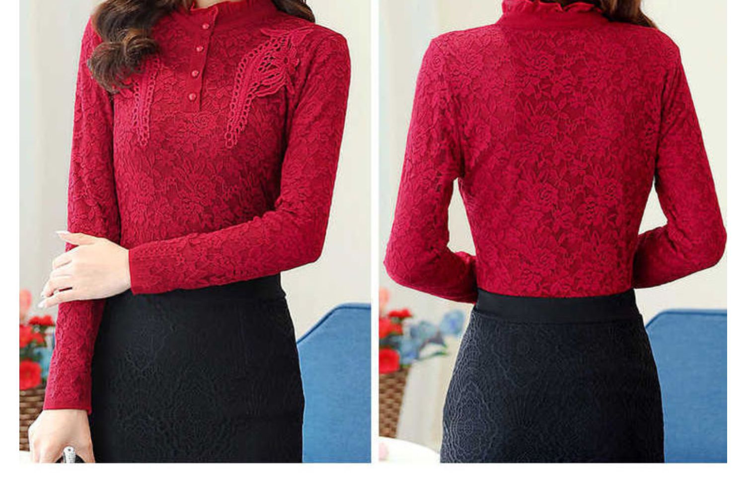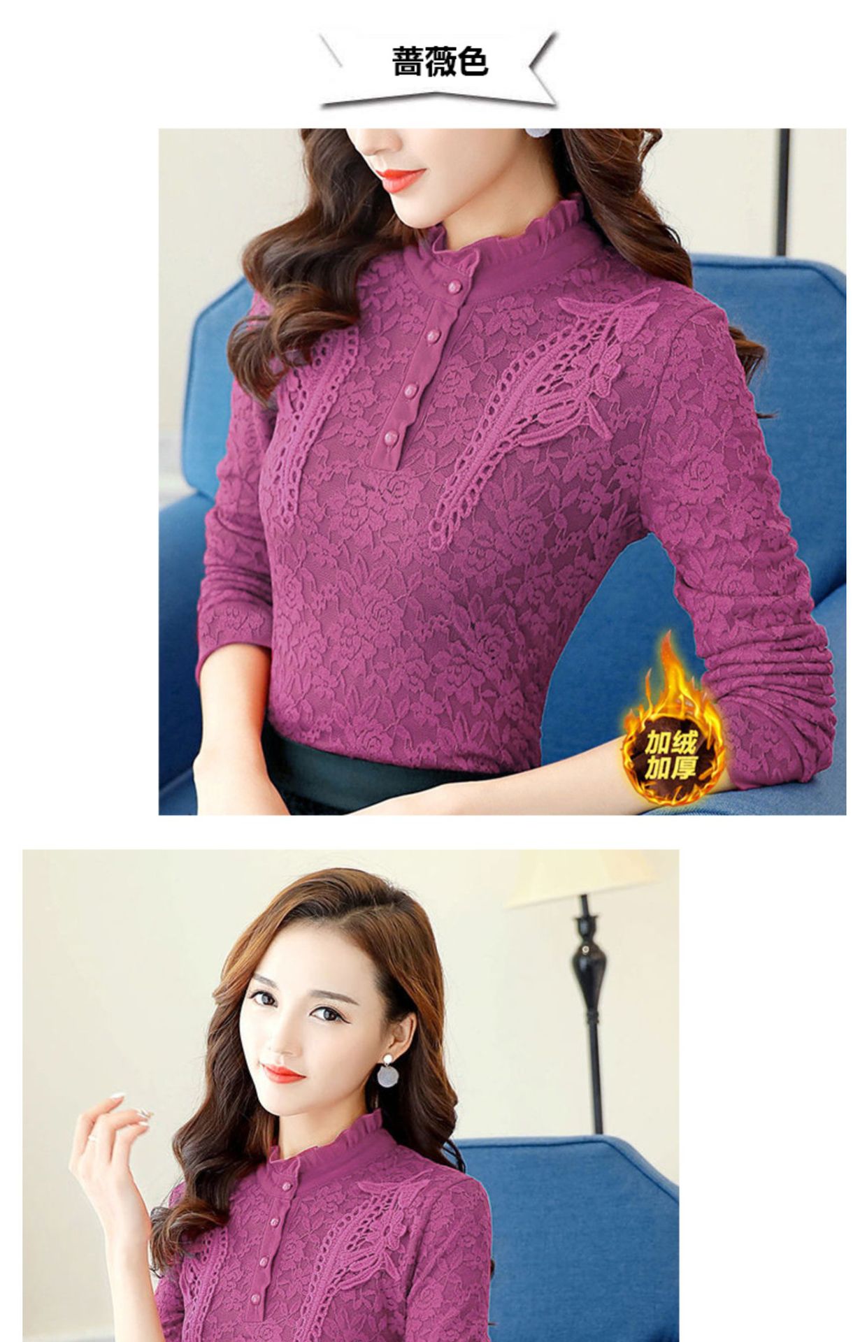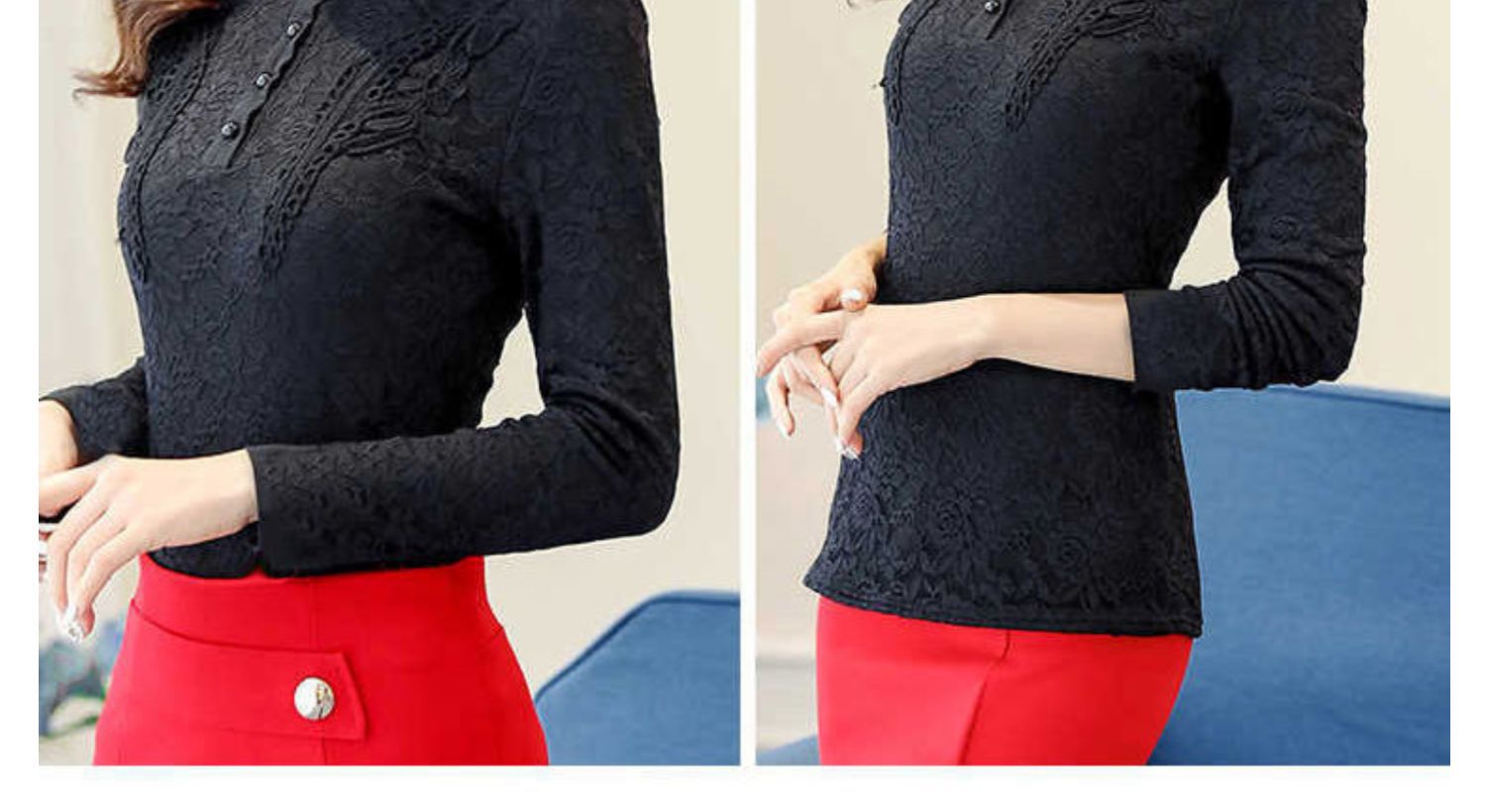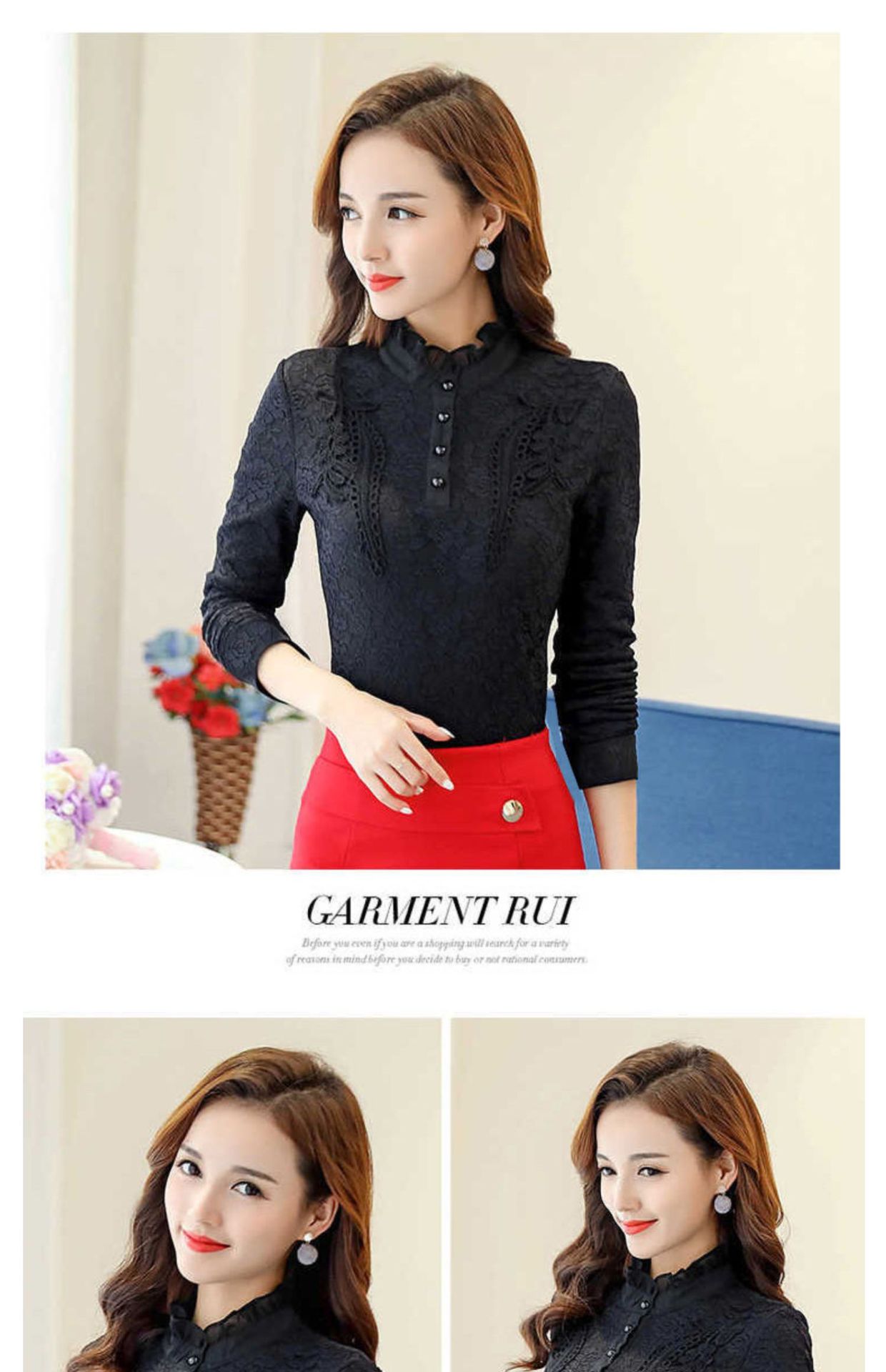 기모 두꺼운 가을과 겨울 새로운베이스 셔츠 여성용 유행 레이스 셔츠 내부 플러스 사이즈 슬림핏 슬리밍 탑 셔츠스토어 가기