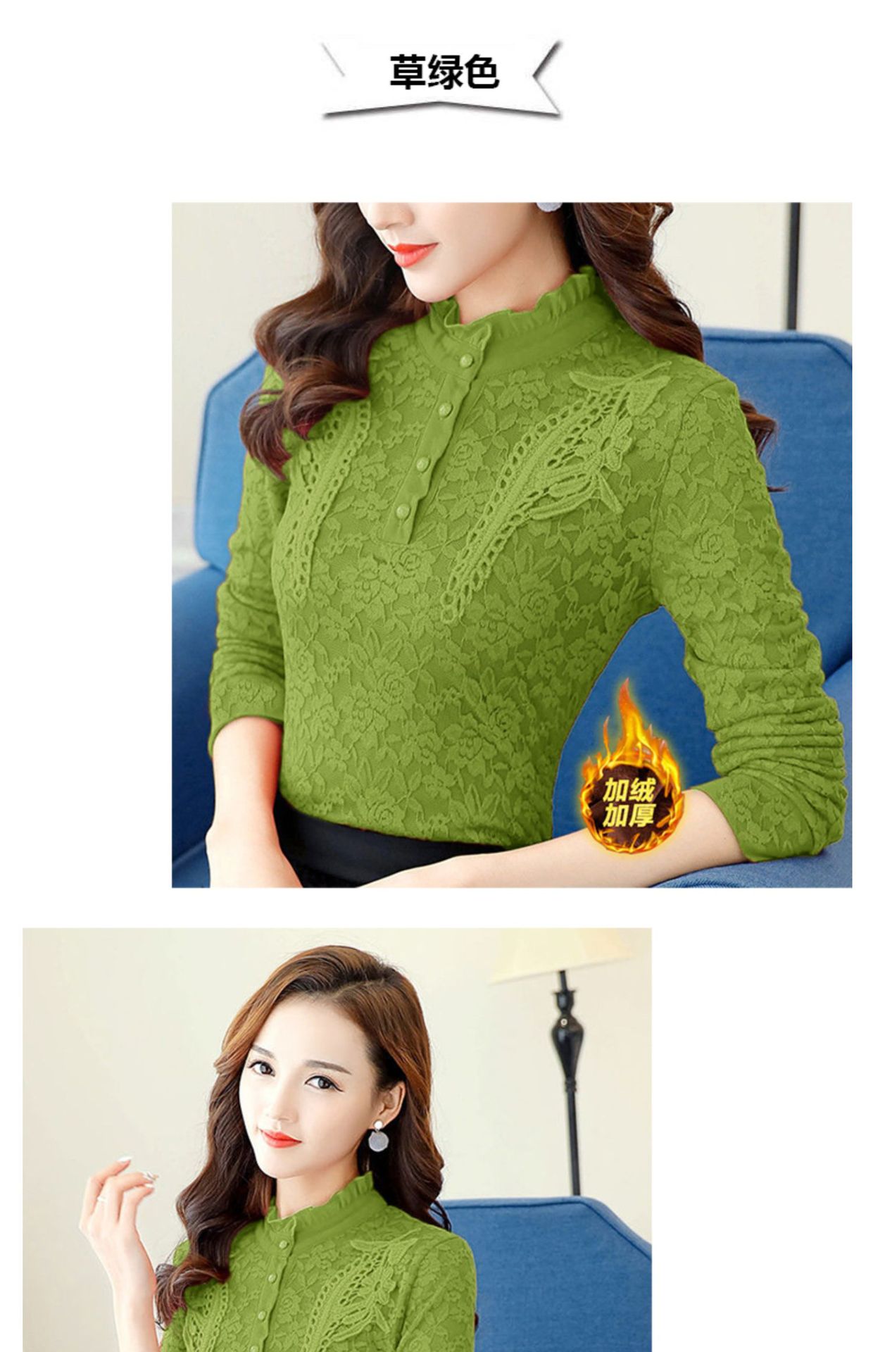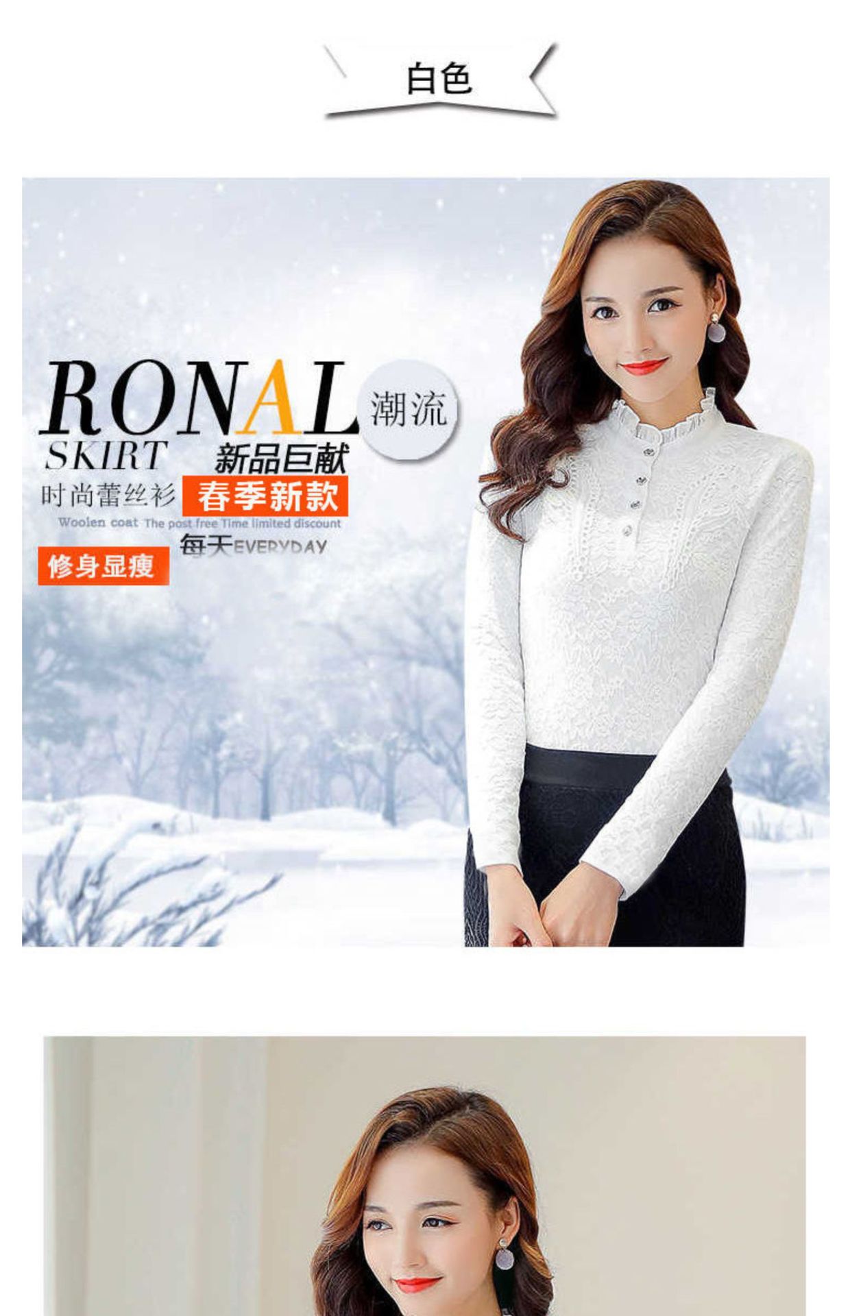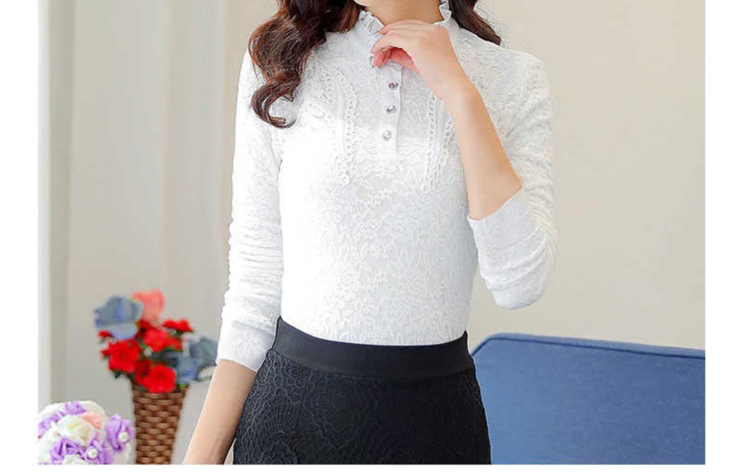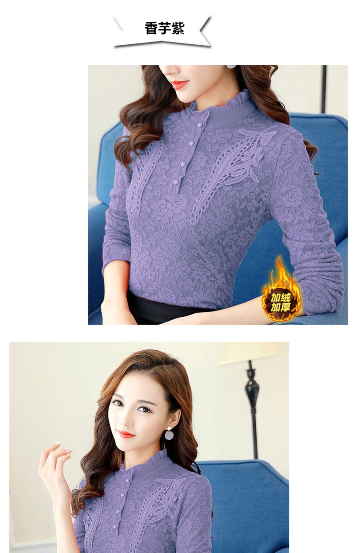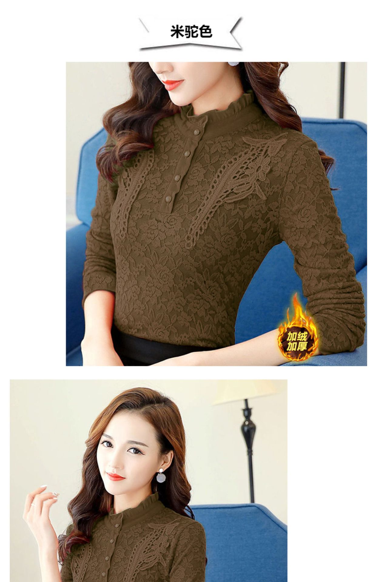 기모 두꺼운 가을과 겨울 새로운베이스 셔츠 여성용 유행 레이스 셔츠 내부 플러스 사이즈 슬림핏 슬리밍 탑 셔츠스토어 가기