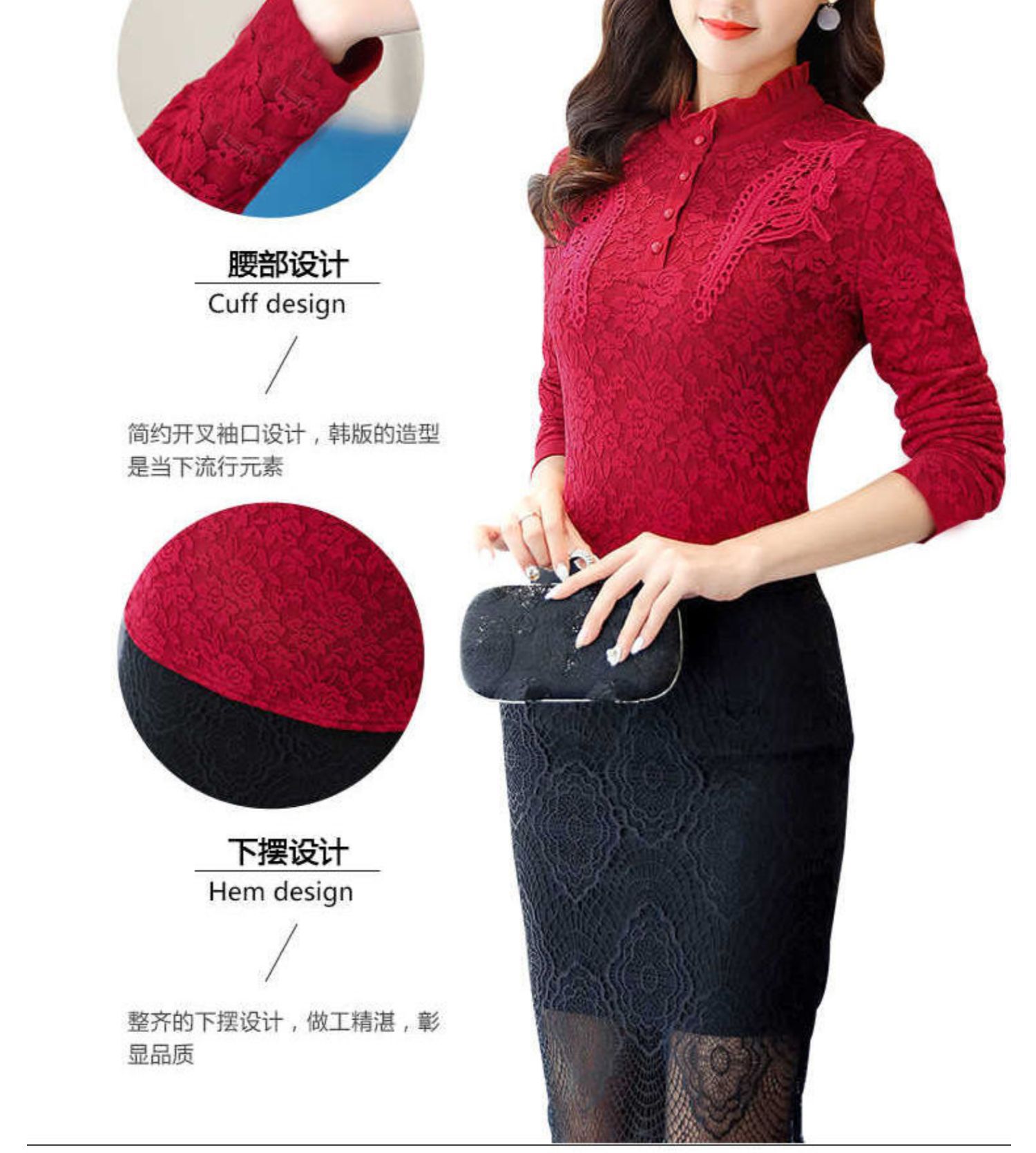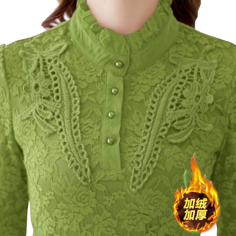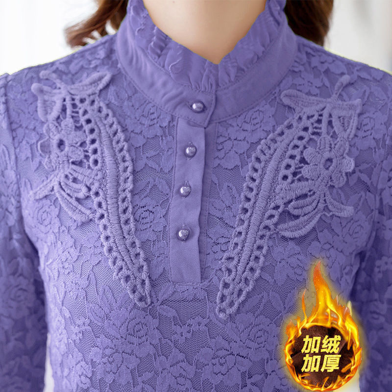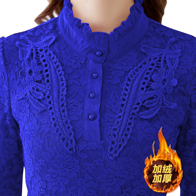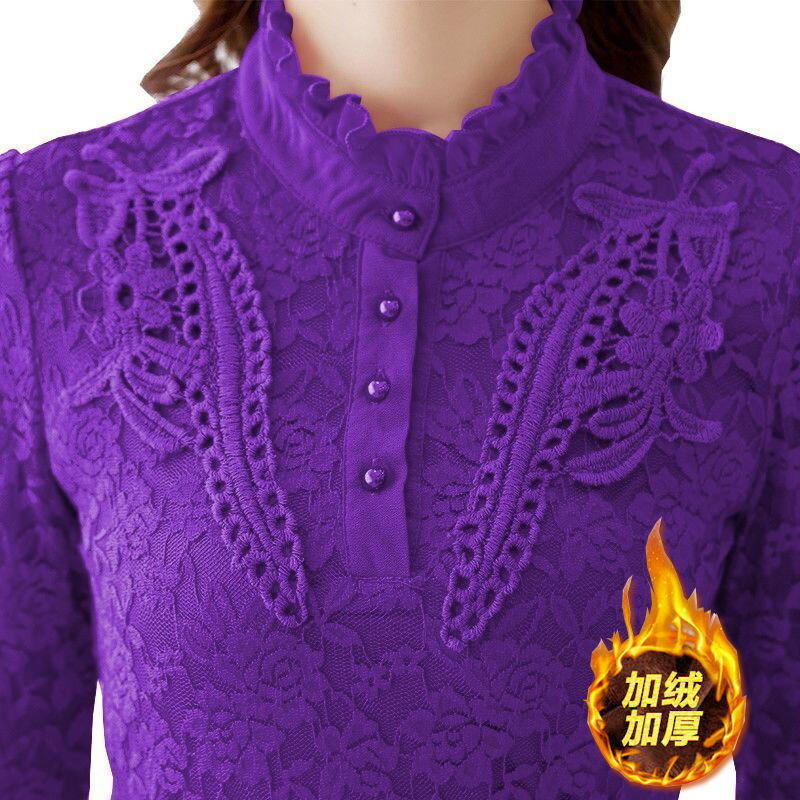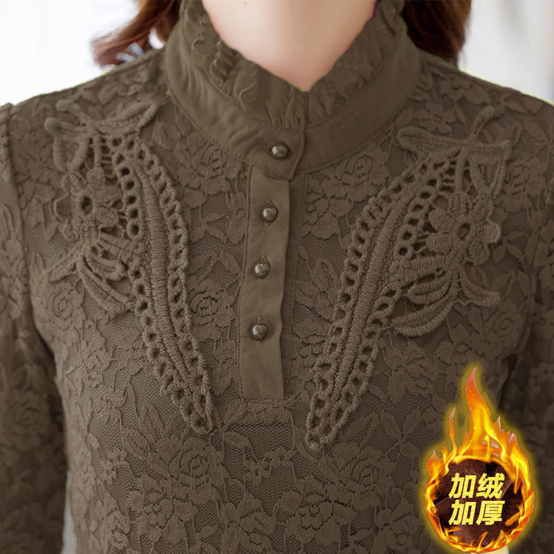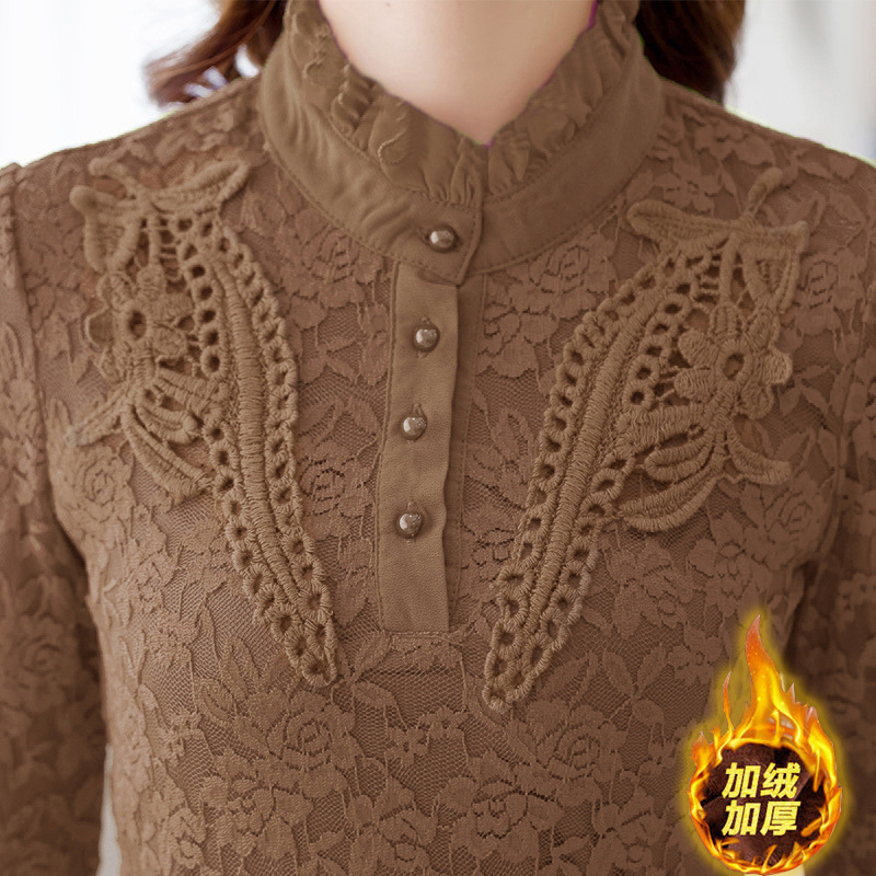 기모 두꺼운 가을과 겨울 새로운베이스 셔츠 여성용 유행 레이스 셔츠 내부 플러스 사이즈 슬림핏 슬리밍 탑 셔츠