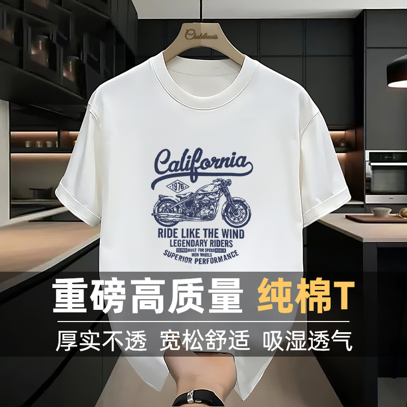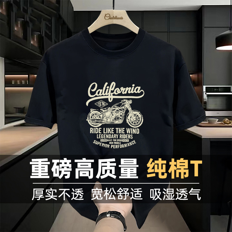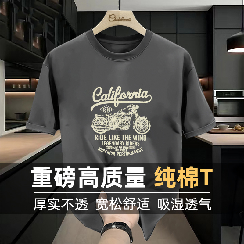 남성용 반팔 여름 코튼 중량급 크루 넥 티셔츠 유행 브랜드 유행 2025 새로운 느슨한 미국 스타일 하이 스트리트 의류스토어 가기