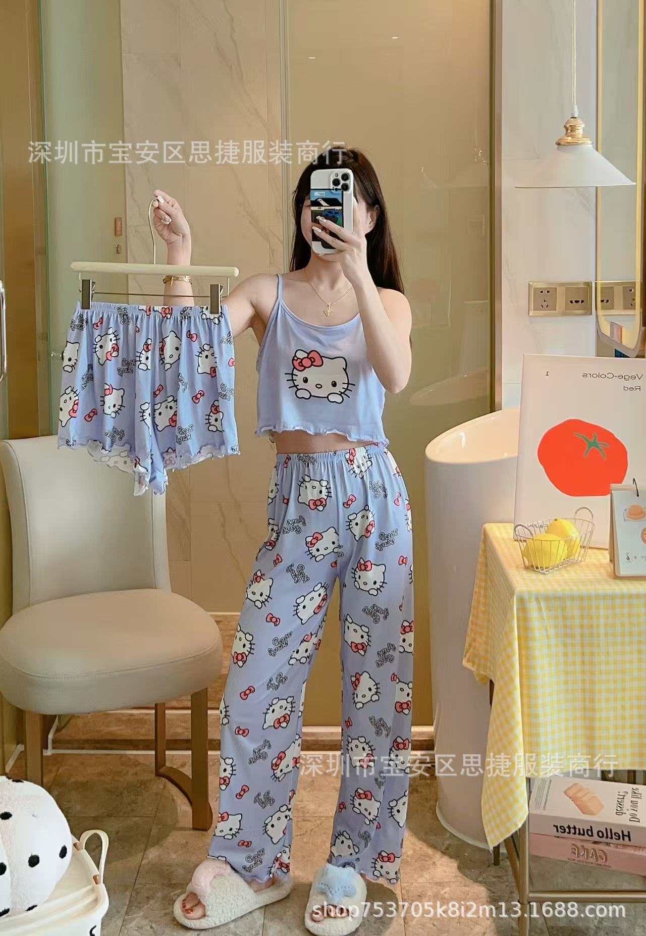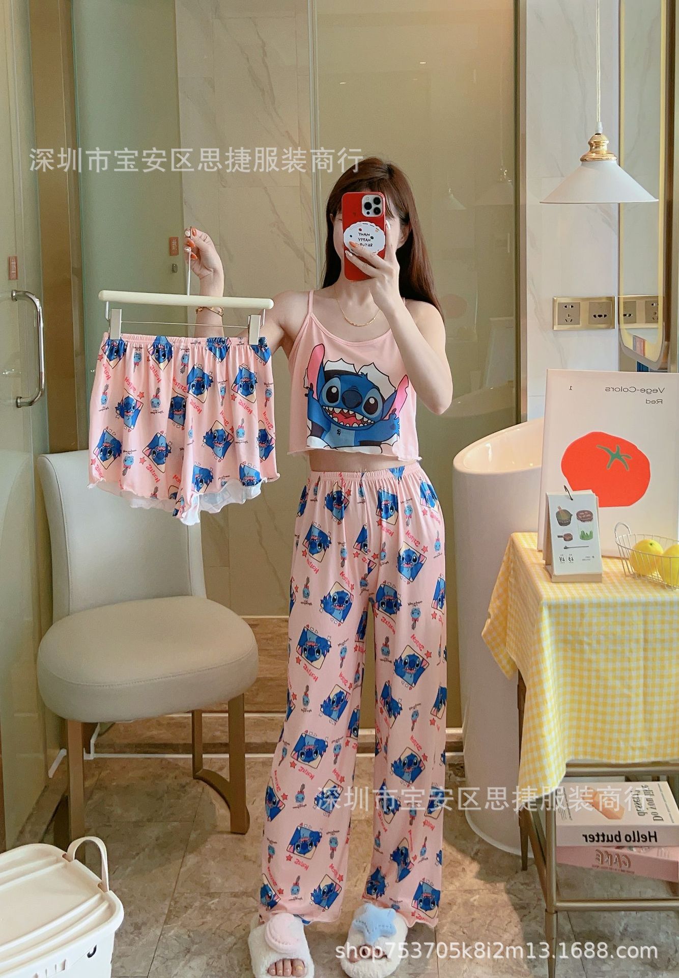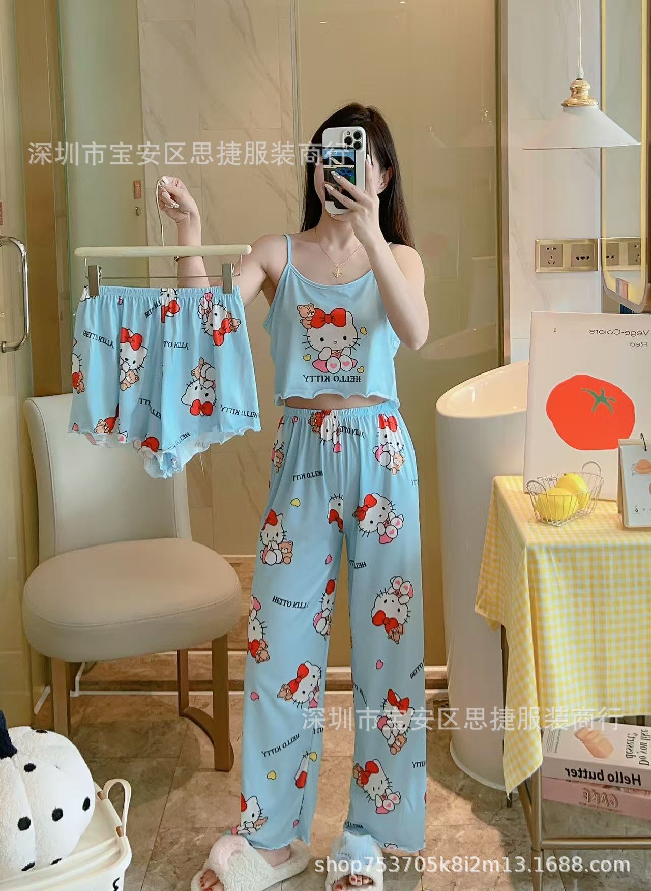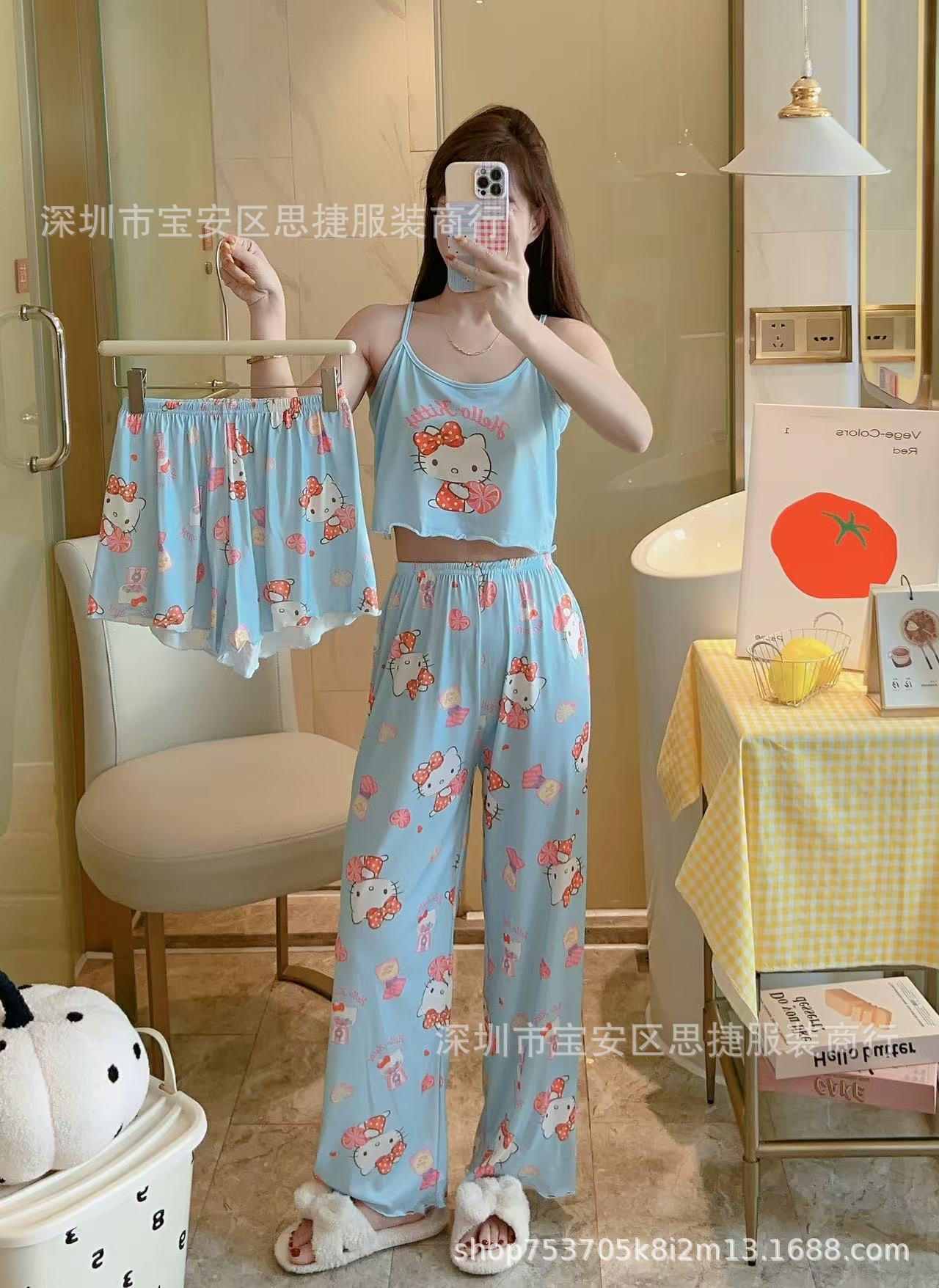 새로운 유럽과 미국의 국경 간 여성 잠옷 슬링 3 피스 세트 아마존 대외 무역 동남아시아 여름 홈 의류 잠옷스토어 가기