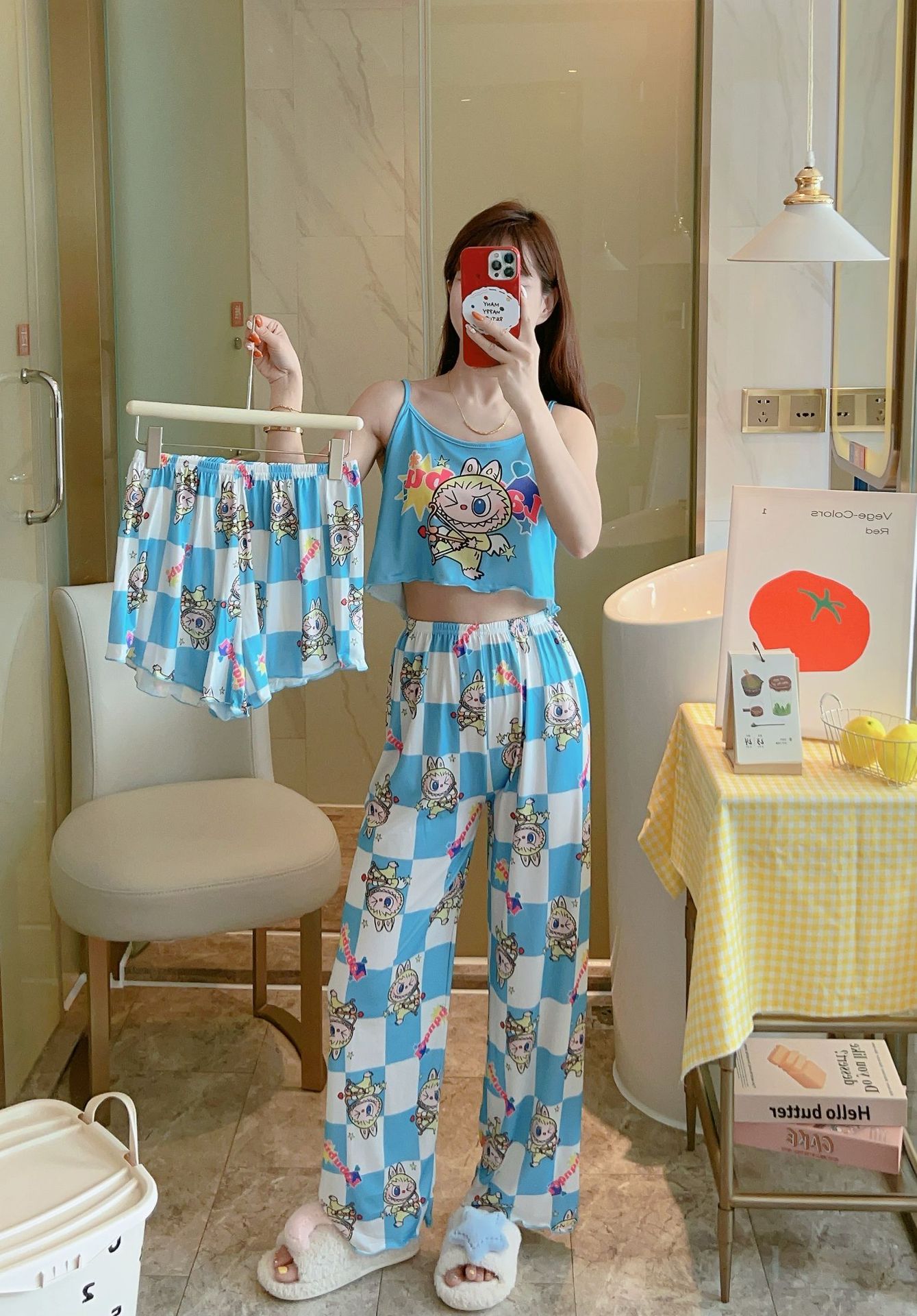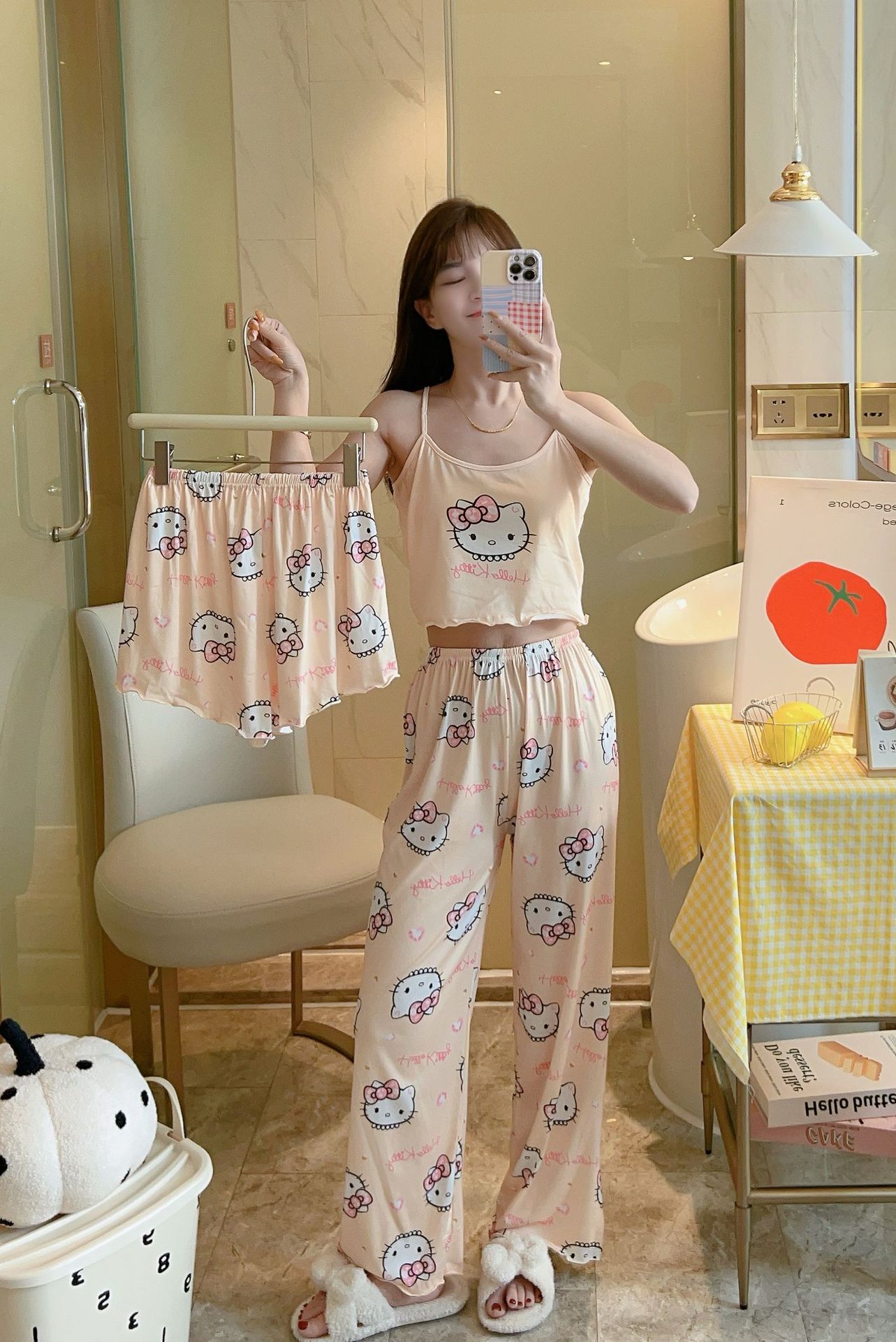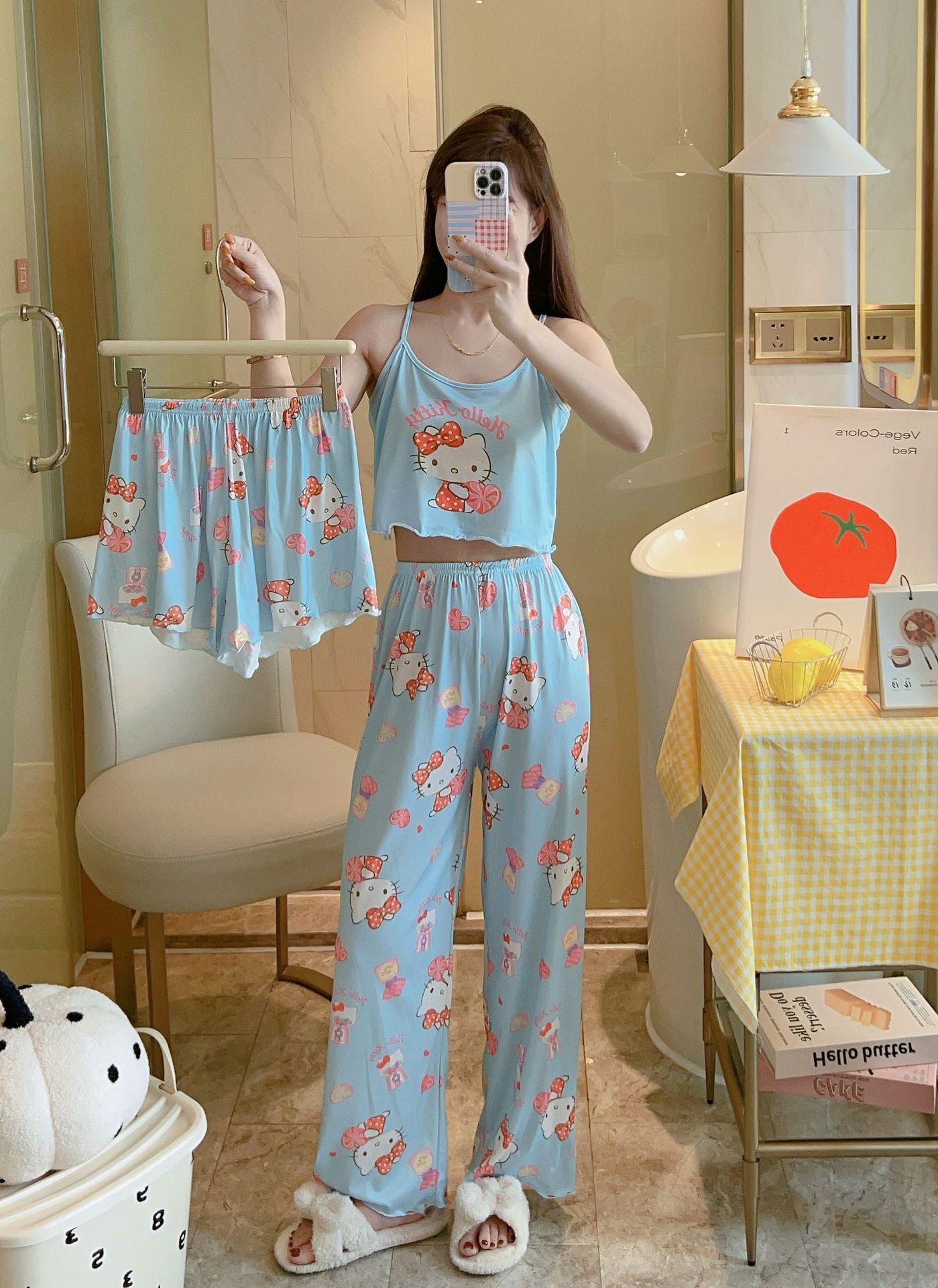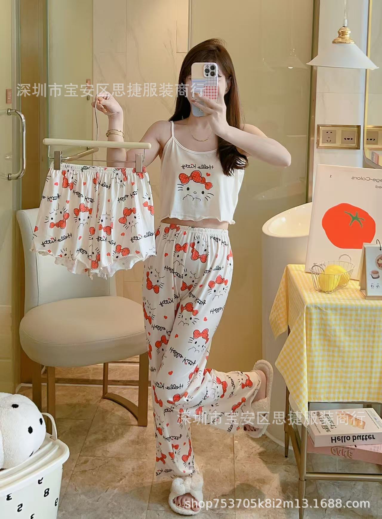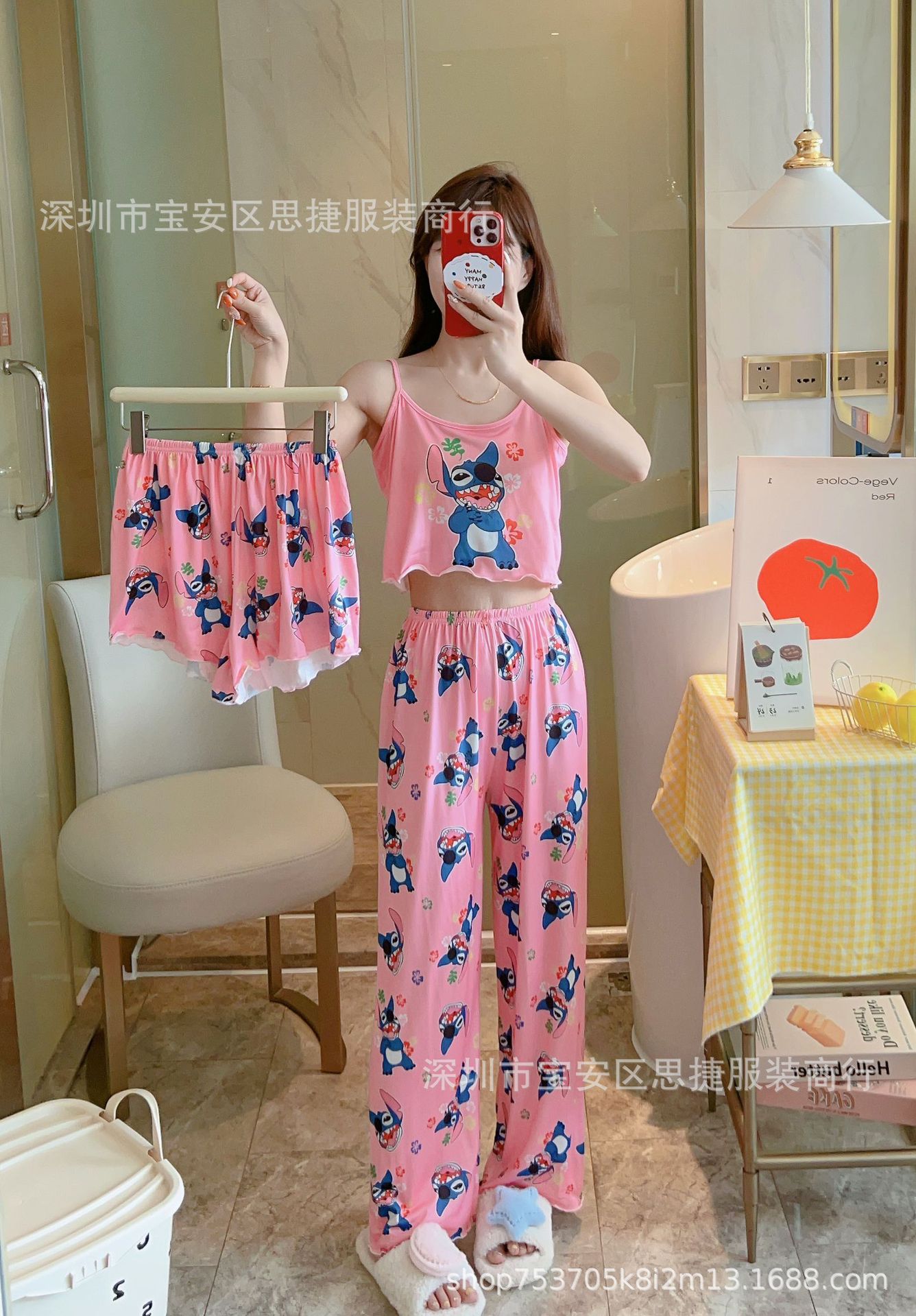 새로운 유럽과 미국의 국경 간 여성 잠옷 슬링 3 피스 세트 아마존 대외 무역 동남아시아 여름 홈 의류 잠옷스토어 가기