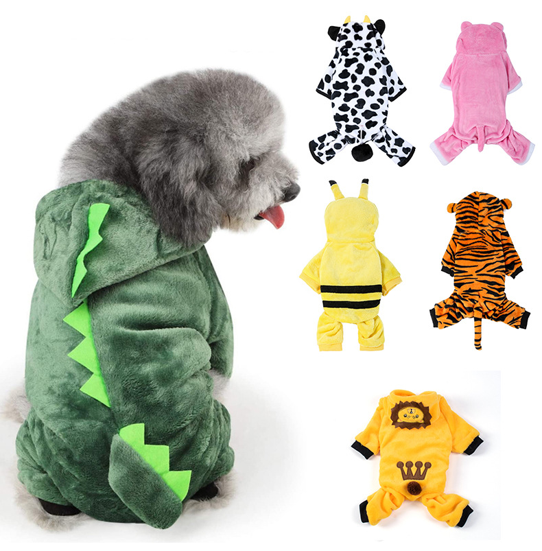 애완 동물 네 다리 옷 개 고양이 가을 겨울 따뜻한 옷 작은 개 호랑이 의류 용품 공룡 변형 옷