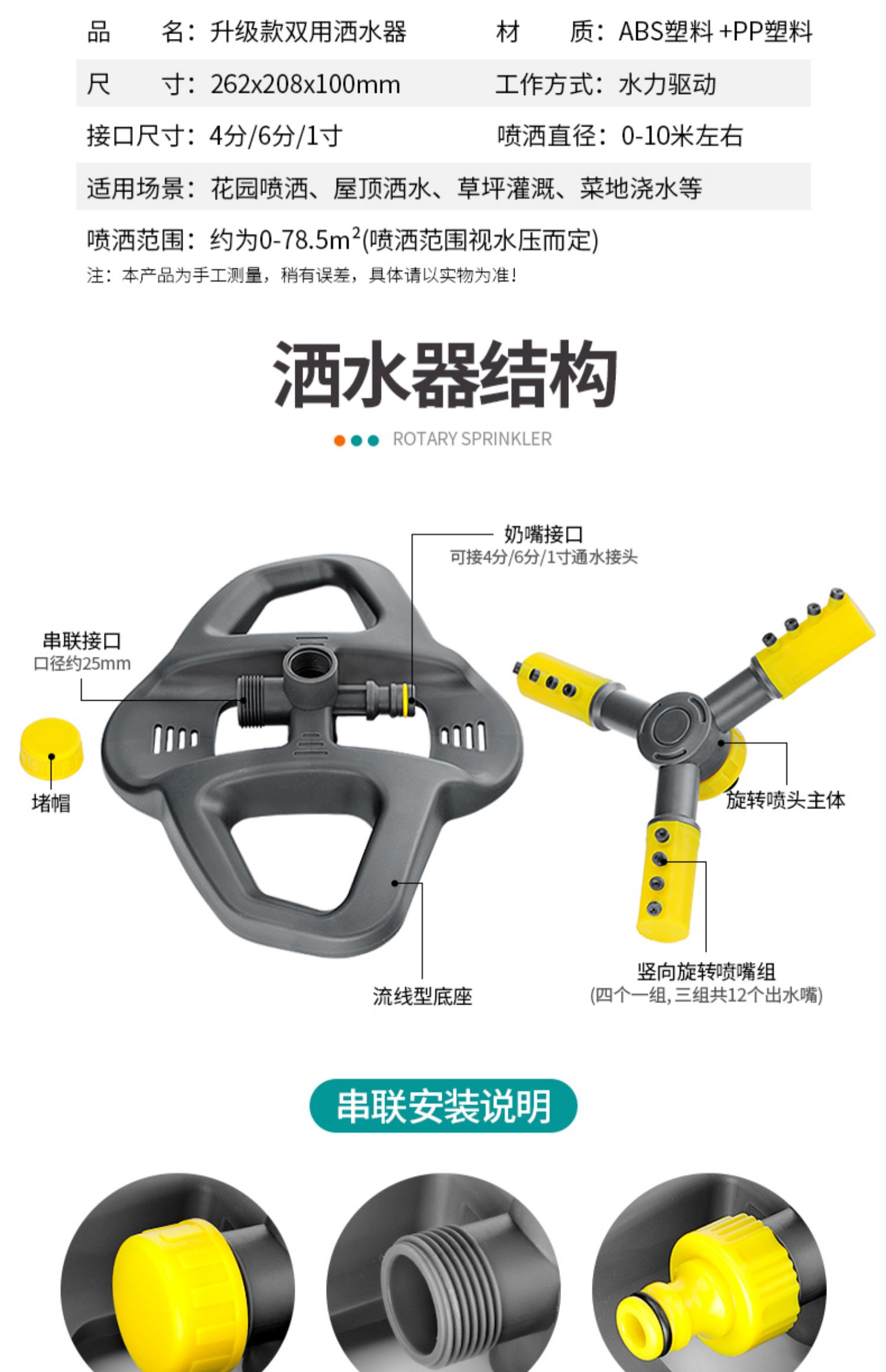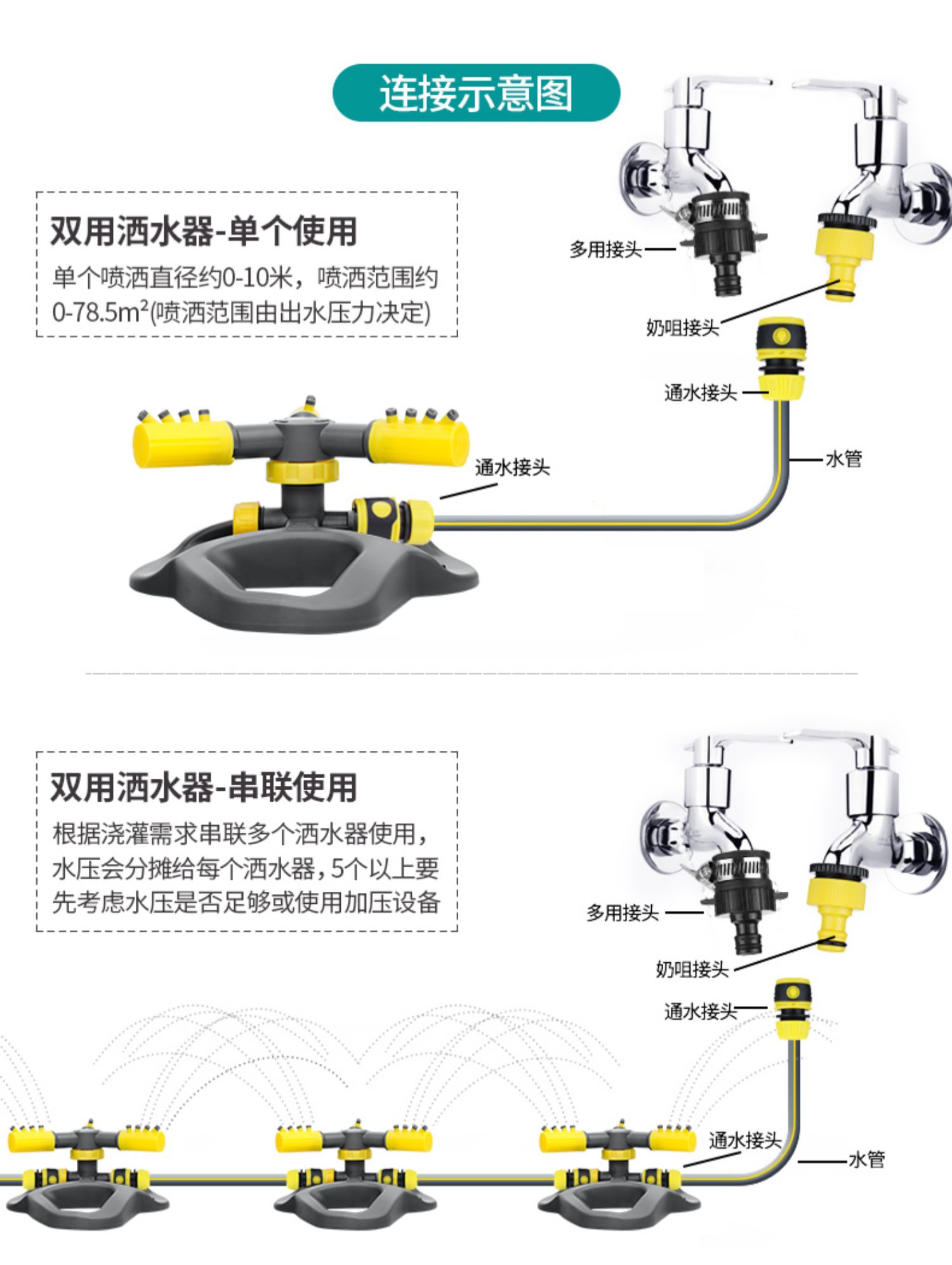 • 업그레이드된 이중 목적 스프링클러 + 1inch 커넥터 세트