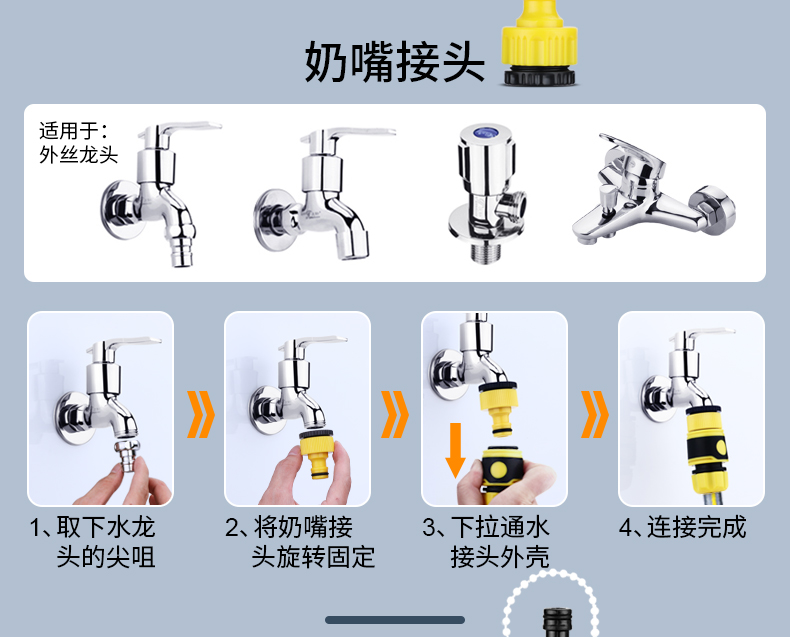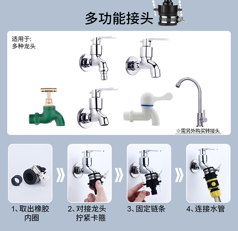 • 업그레이드된 이중 목적 스프링클러 + 4탭 커넥터 2개 + 젖꼭지