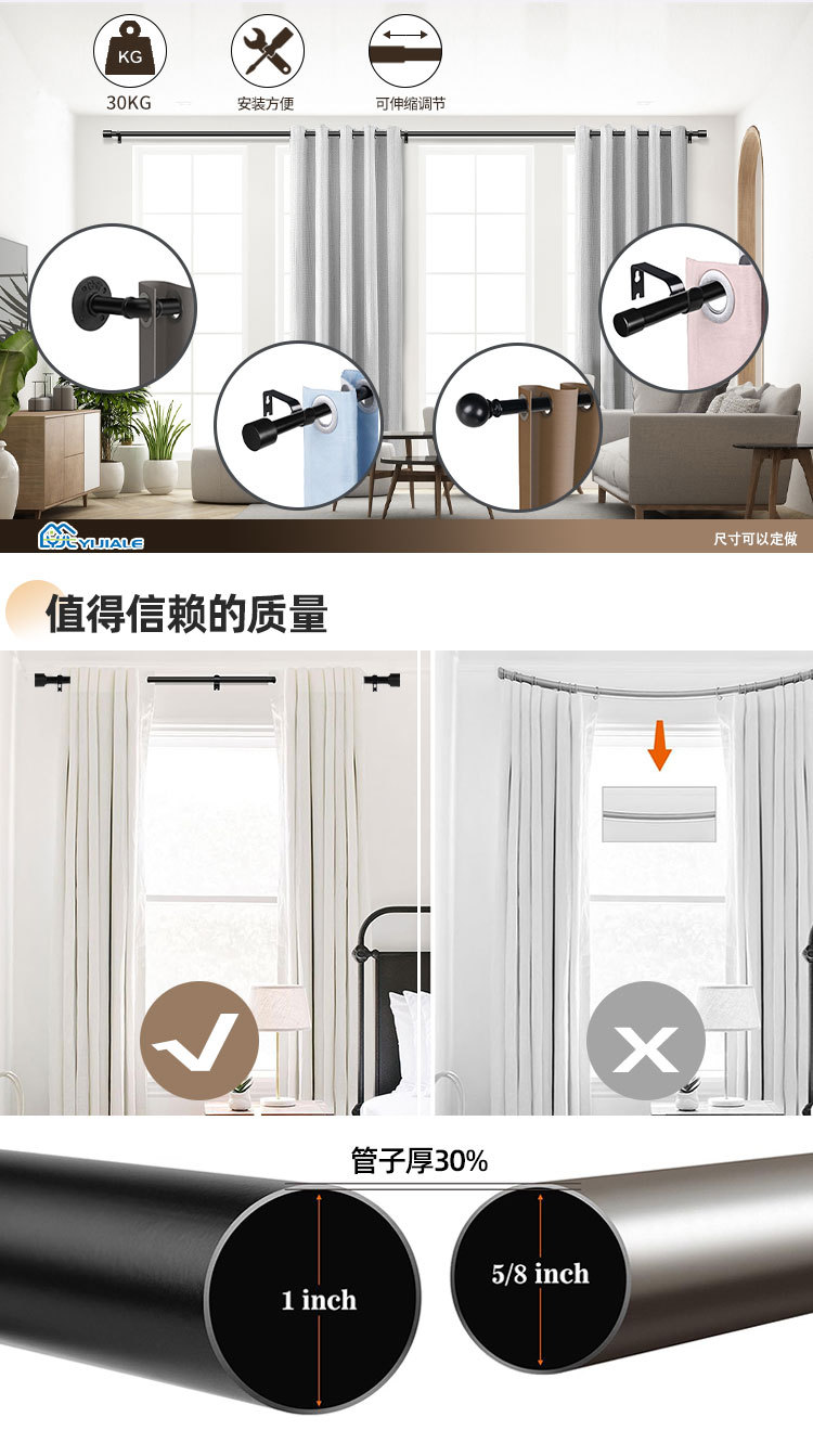망원경로드 설치 커튼 막대 싱글 막대 커튼 브래킷 리프팅 로마 막대 알루미늄 합금 옷 건조 막대 걸이 스트럿