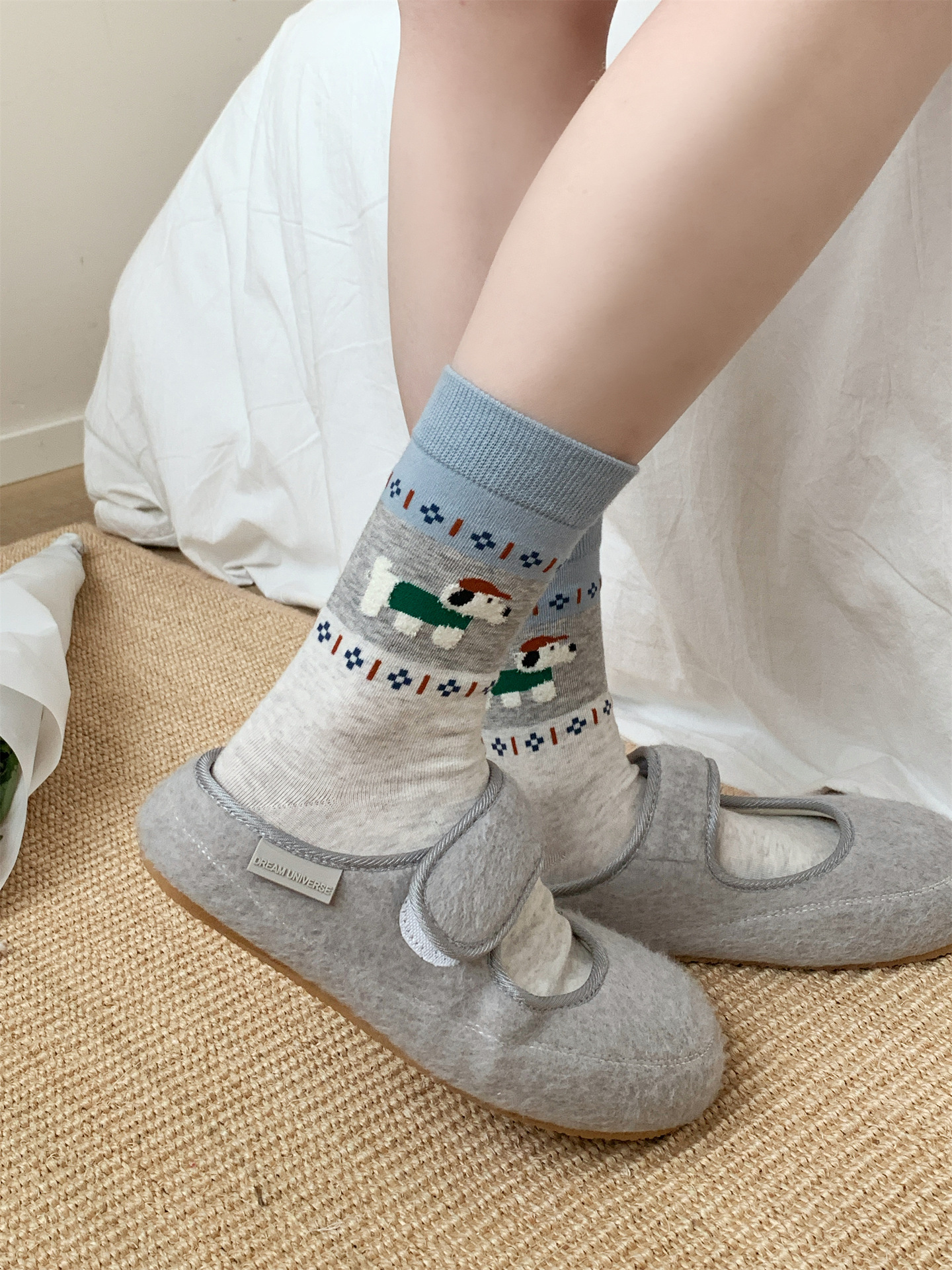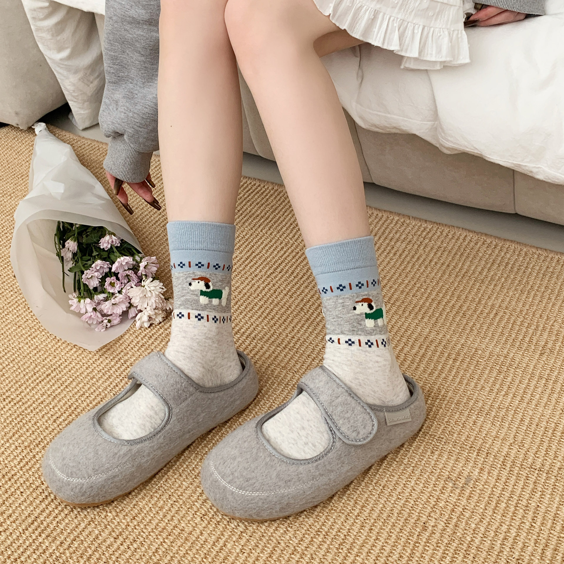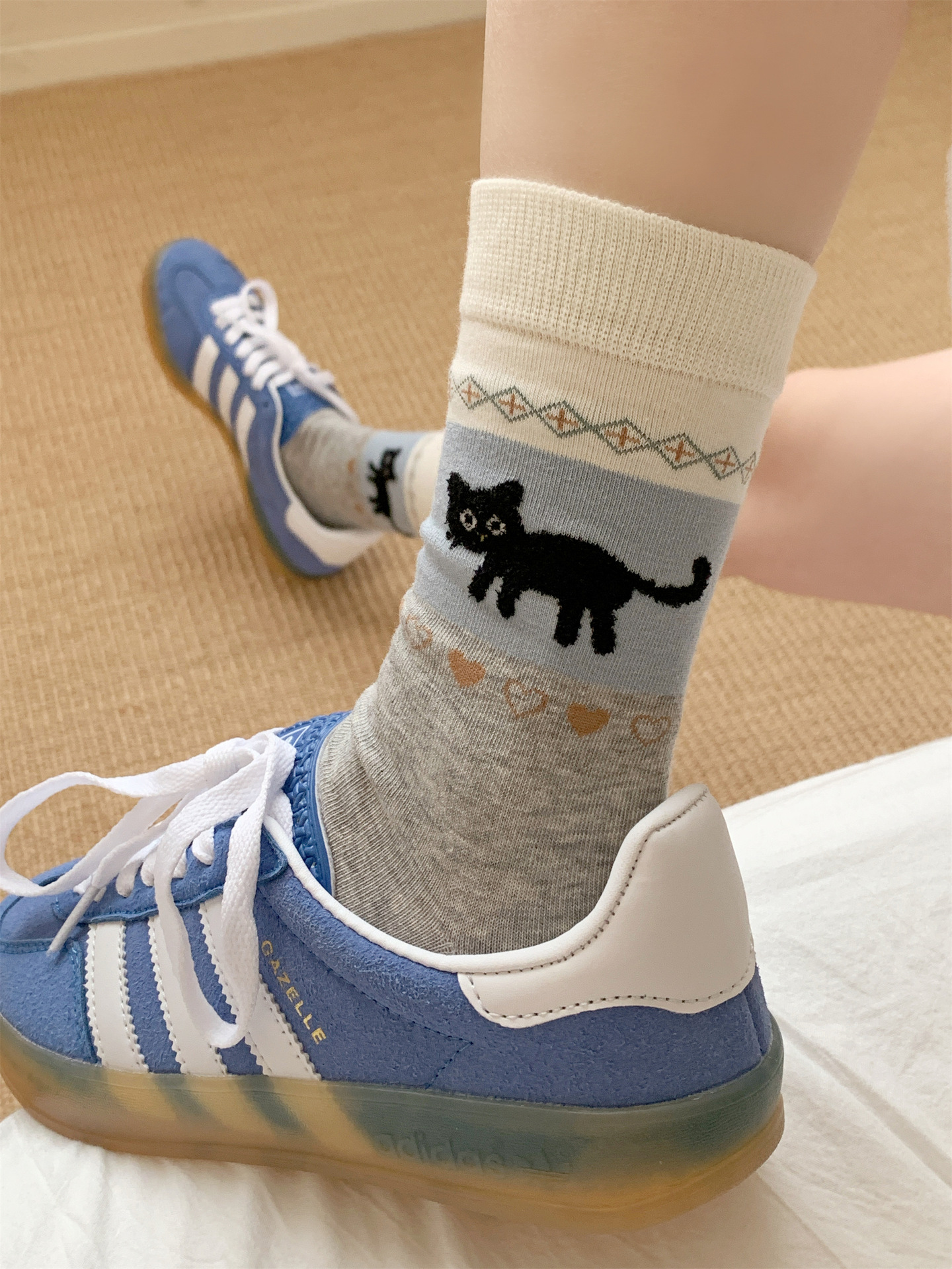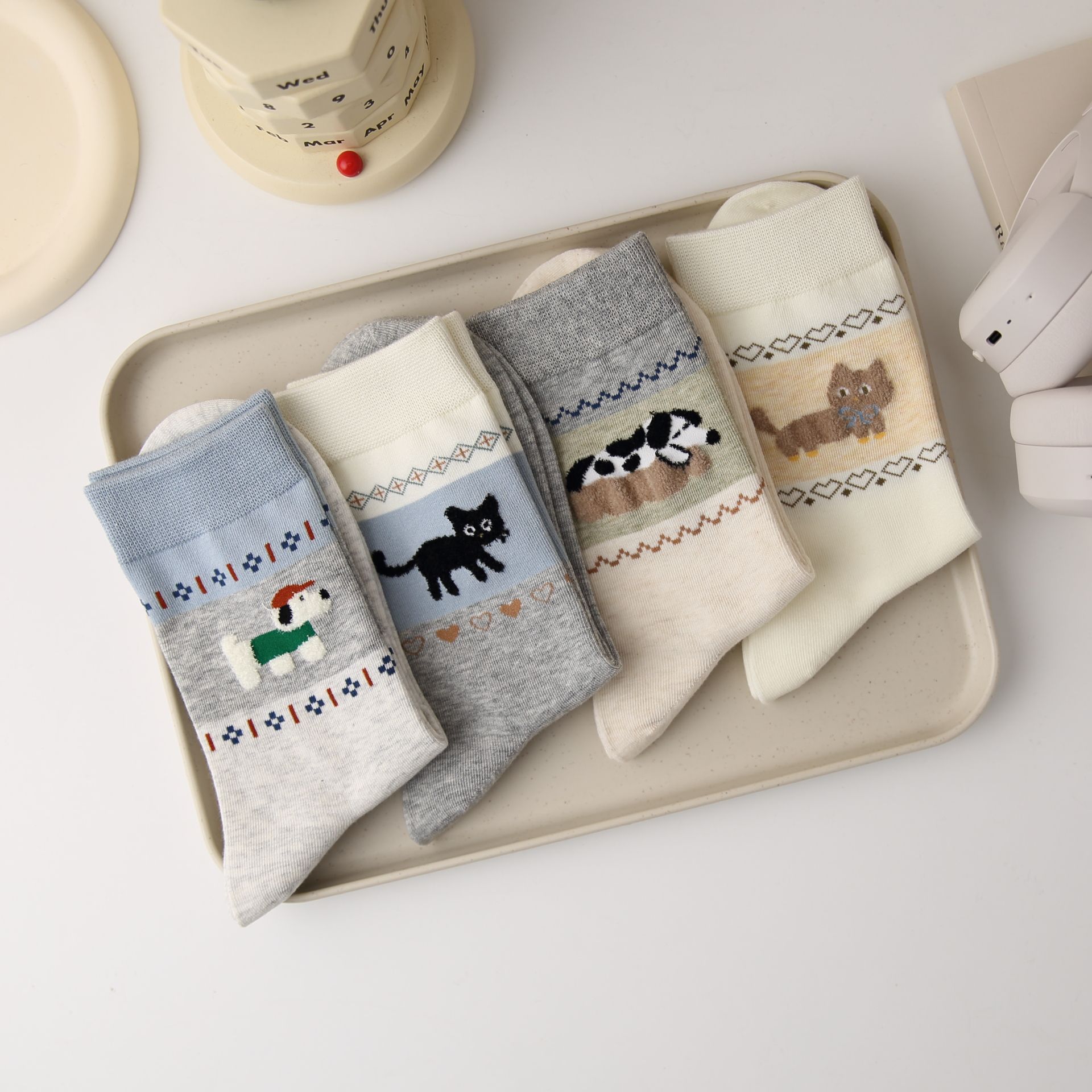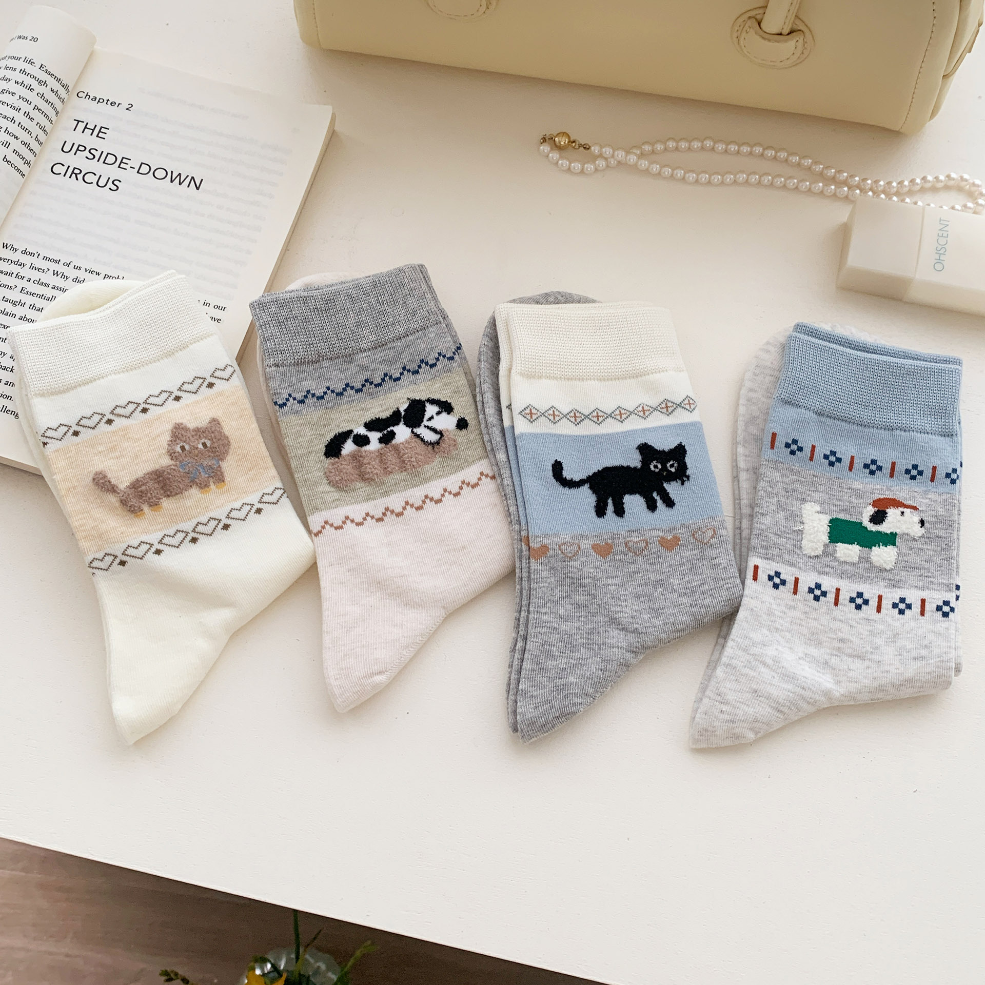 오리지널 양말 여성용 양말 무봉제 양말 레트로 스타일 배색 페어 아일 귀여운 만화 중간 길이 고양이 면 양말스토어 가기