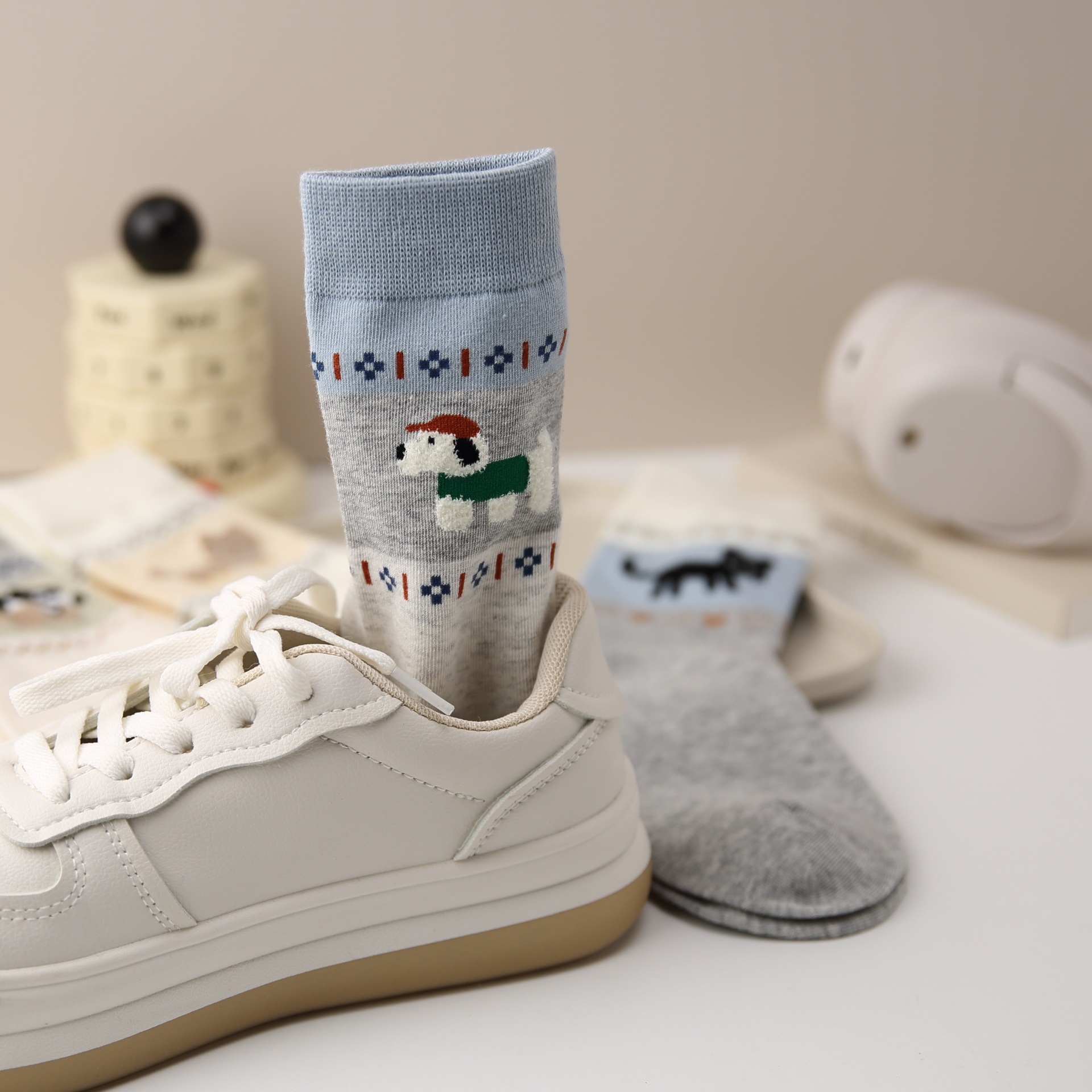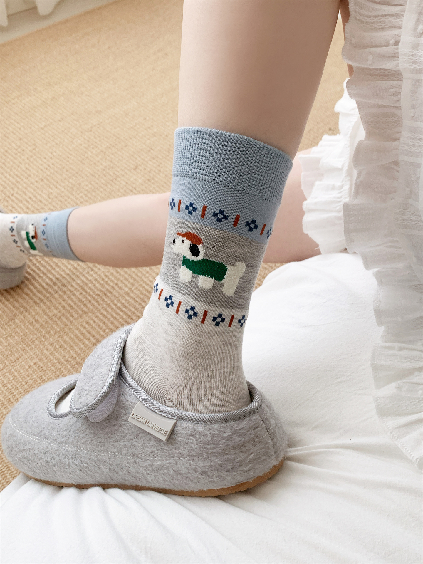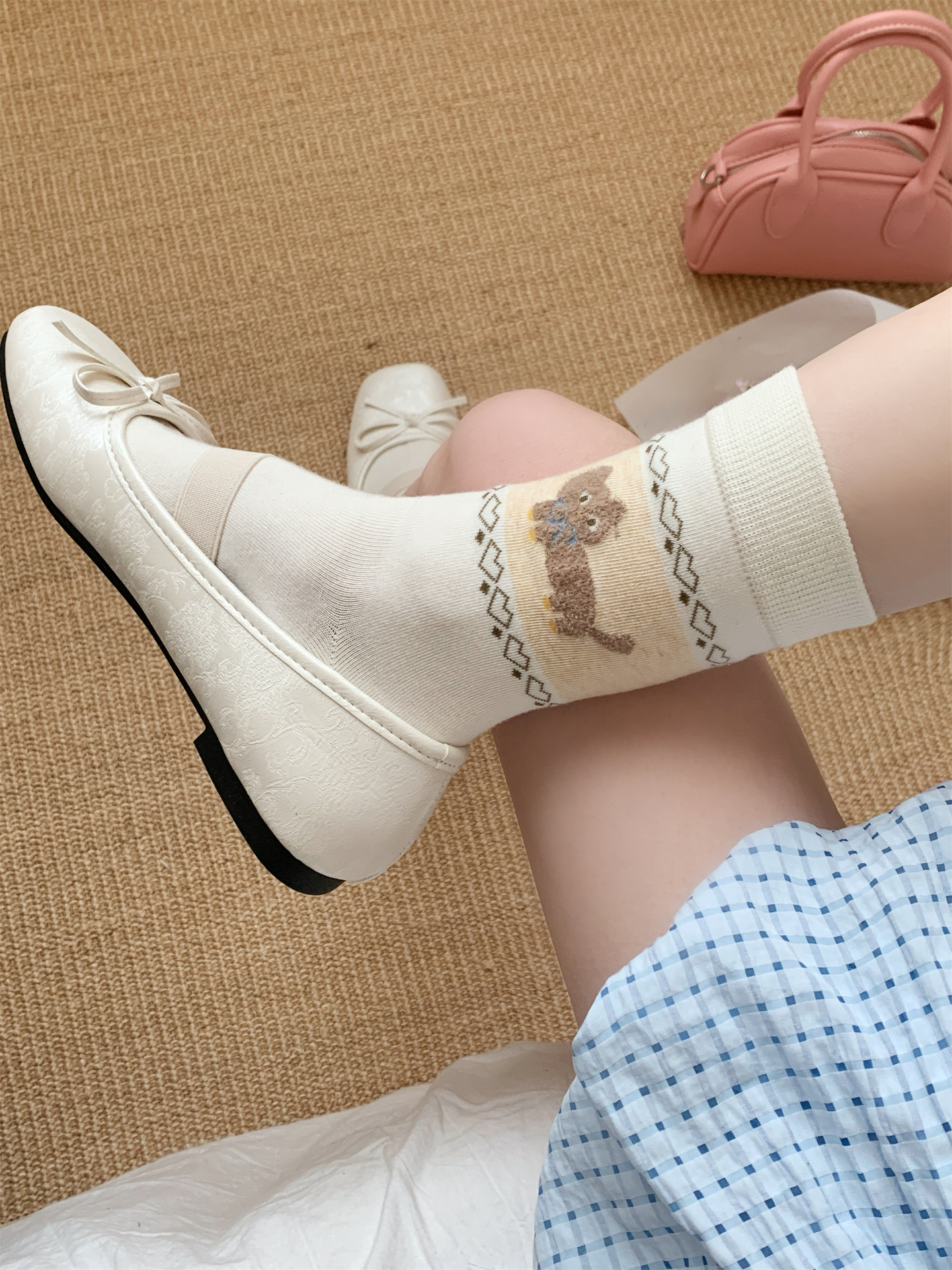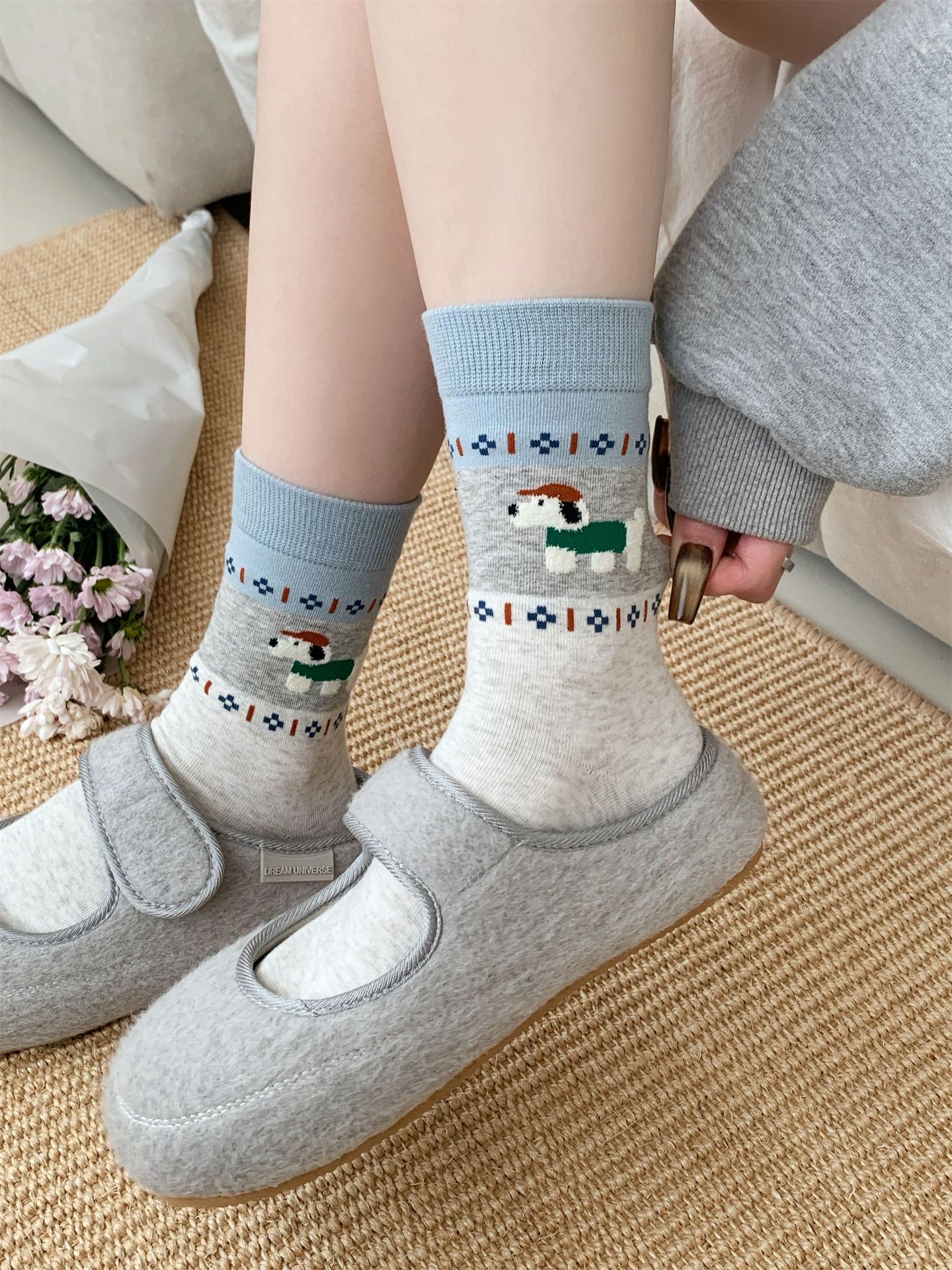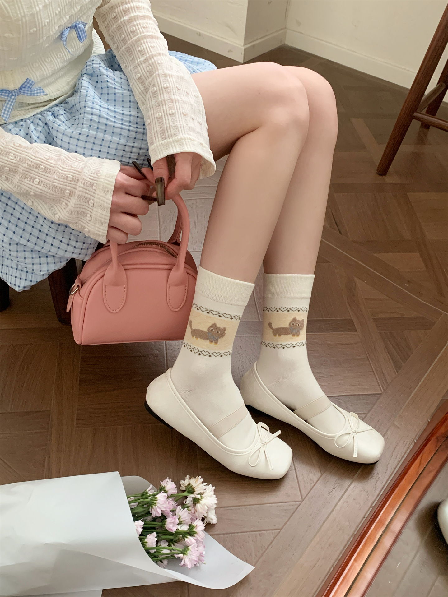 오리지널 양말 여성용 양말 무봉제 양말 레트로 스타일 배색 페어 아일 귀여운 만화 중간 길이 고양이 면 양말스토어 가기