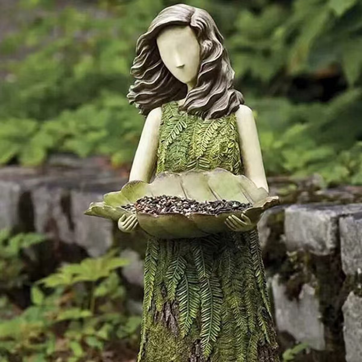 국경 간 숲 소녀 조류 피더 수지 공예 야외 정원 동상 안뜰 잔디 장식 수지 장식품스토어 가기