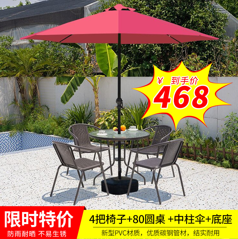 야외 테이블과 의자 등나무 의자 철 레저 야외 테이블 및 의자 5 개 세트 야외 테이블 및 의자 안뜰 발코니 테이블과 의자 우산 조합스토어 가기