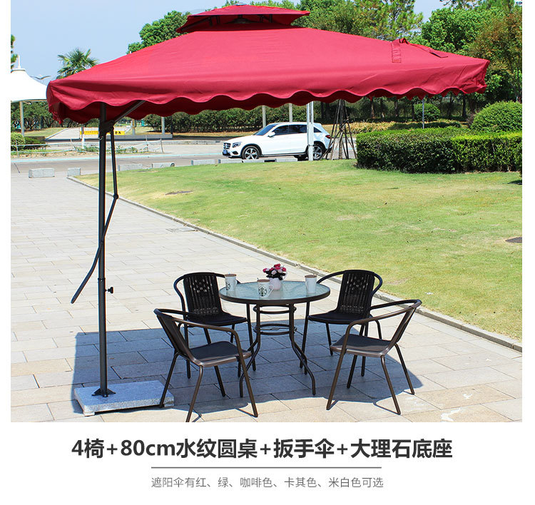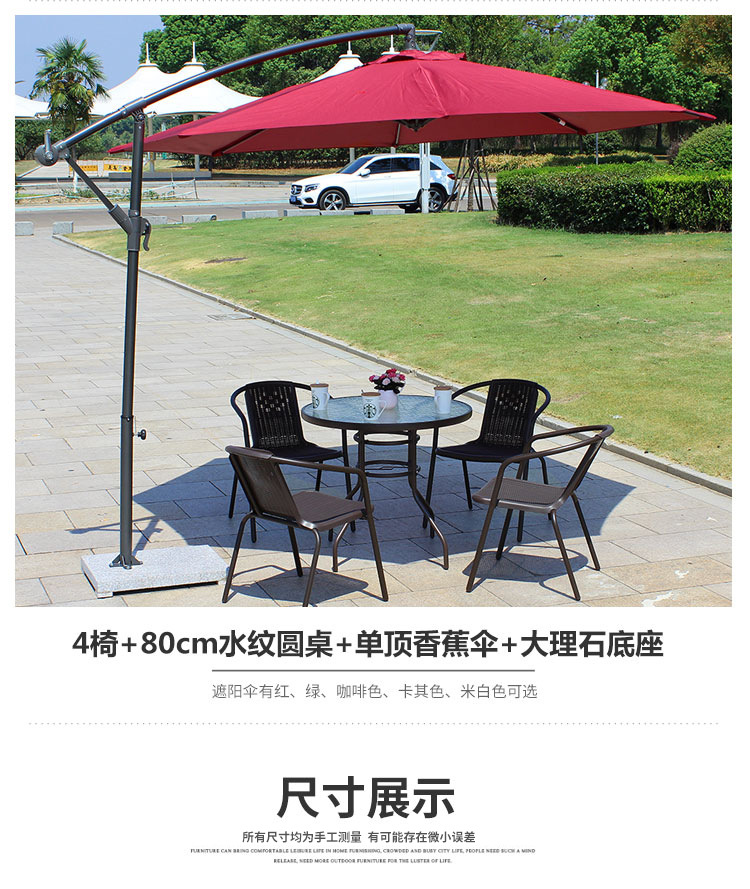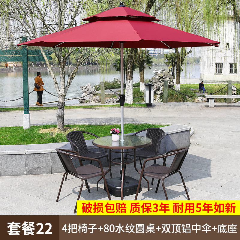 • 패키지 22: 의자 4개 + 원형 테이블 80개 + 알루미늄 이중 상단 우산 베이스