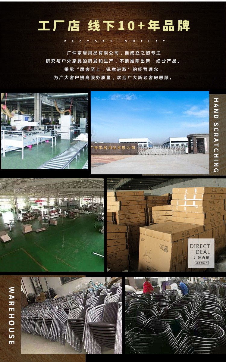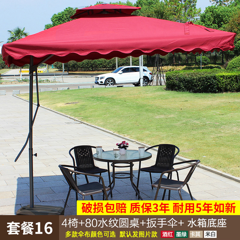 • 패키지 10: 의자 6개 + 물무늬 긴 테이블 150개 + 알루미늄 이중 우산 + 베이스