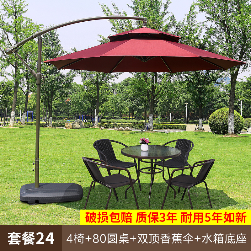• 패키지 24: 의자 4개 + 원형 테이블 80개 + 이중 우산 베이스