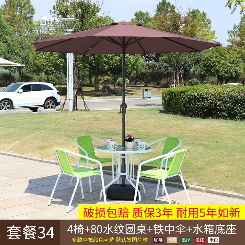 • 녹색 의자 4개 + 물무늬 원형 테이블 80개 + 철제 우산 + 베이스
