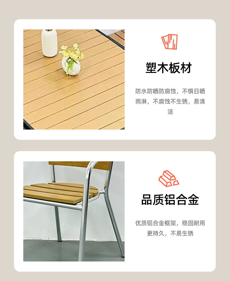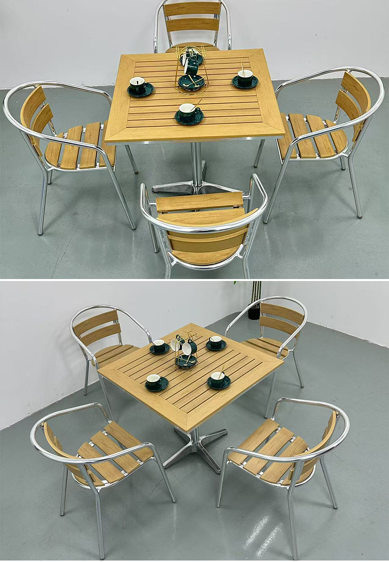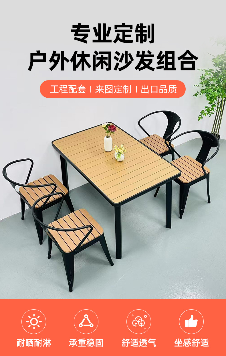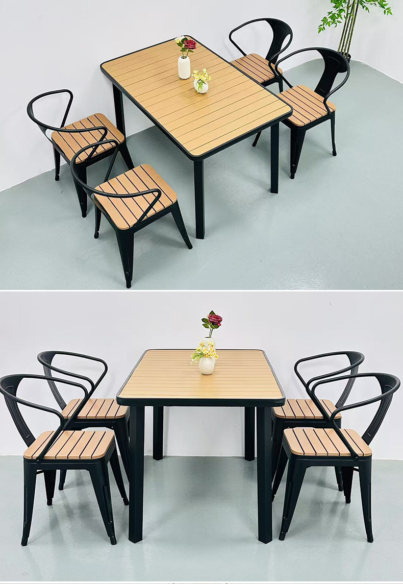 공급 공원 야외 안뜰 테이블 및 의자 야외 방수 방첩 방지 식탁 발코니 야외 플라스틱 나무 바베큐 테이블 및 의자 조합스토어 가기