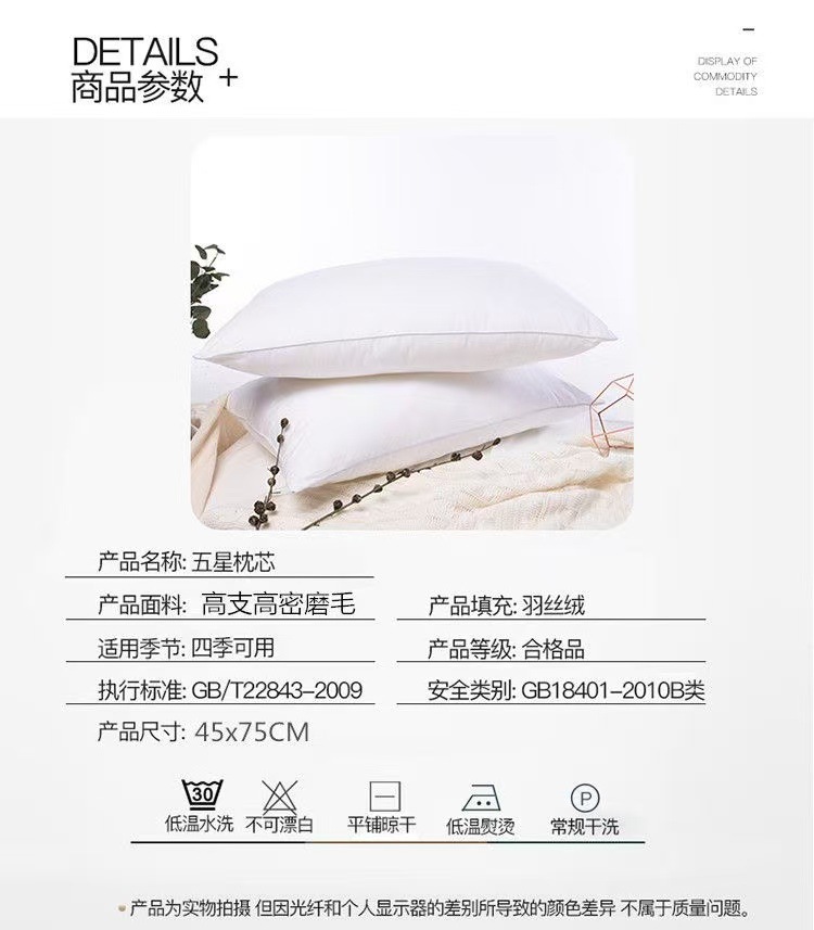 깃털 벨벳 베개 코어 쌍 베개 단일 성인 목 베개 코어 높은 리바운드 내부 베개 호텔 홈스테이