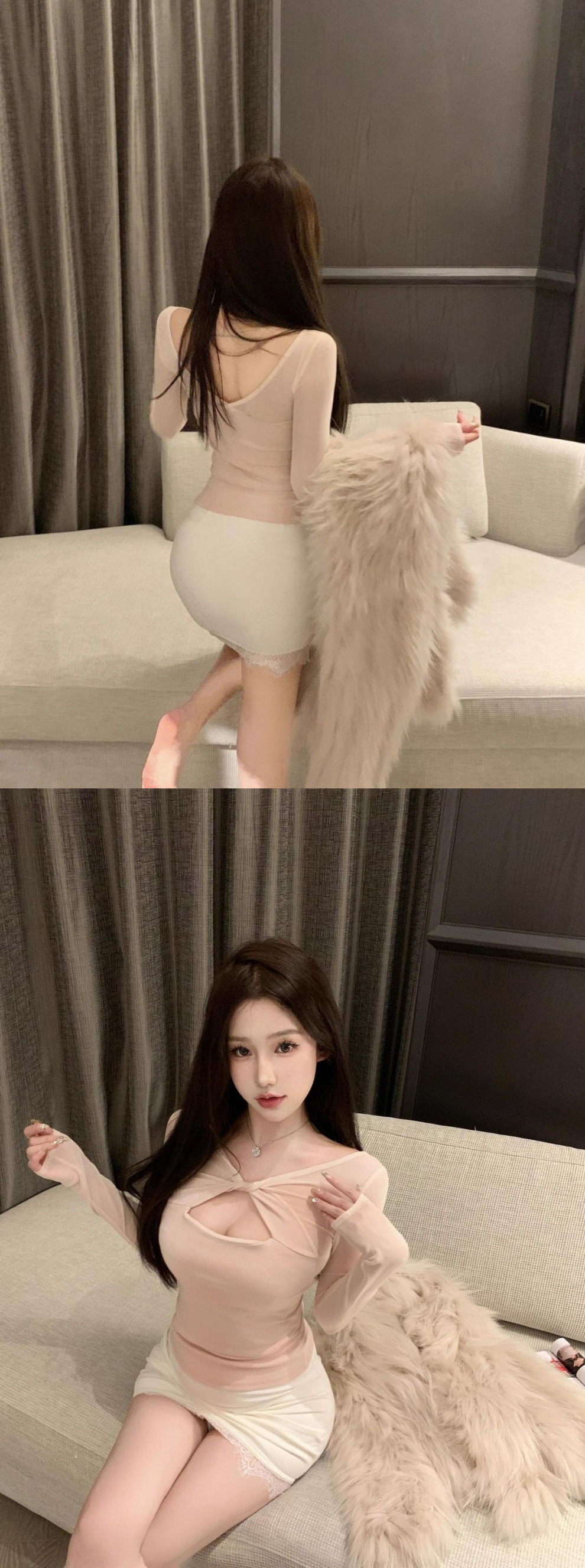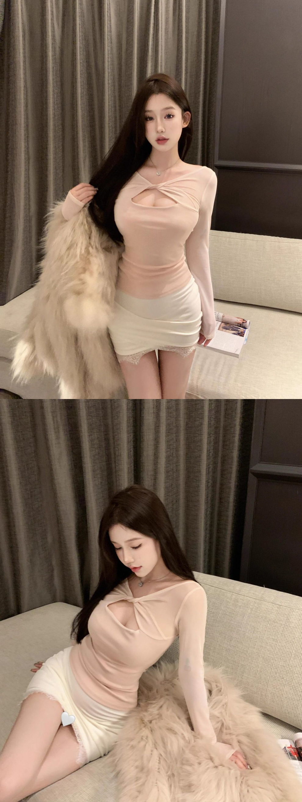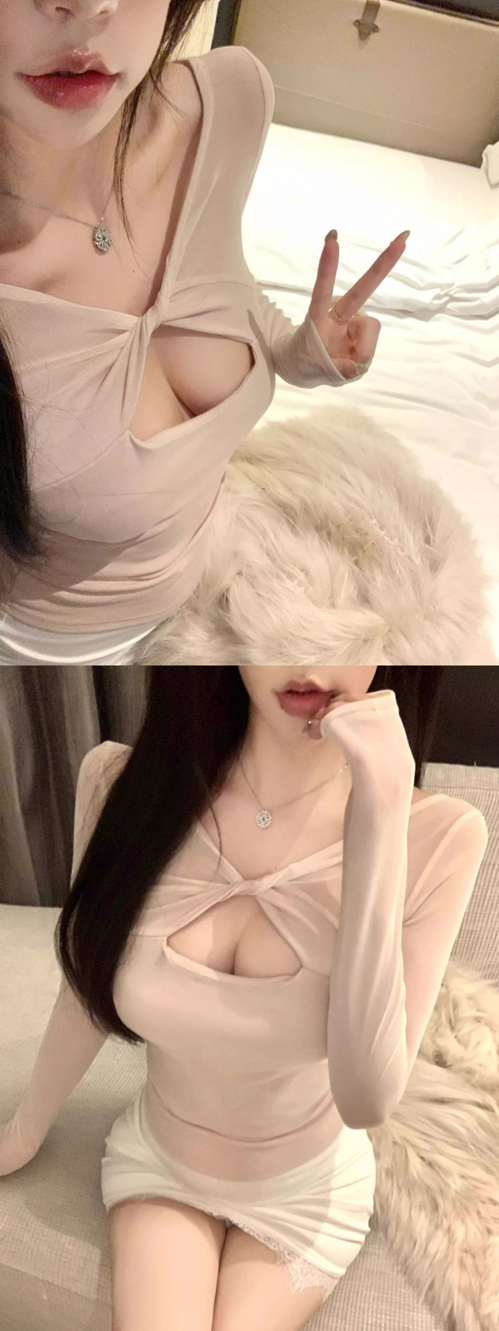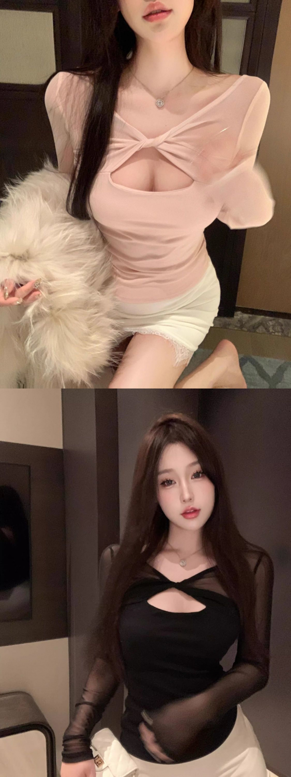 브이넥 메쉬 할로우 긴팔 티셔츠 여성용 핫 걸스 섹시 퓨어 하이 엔드 슬림베이스 셔츠 탑
