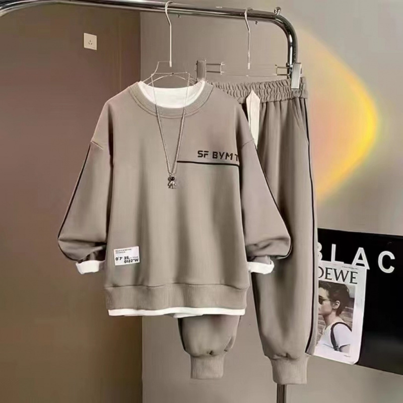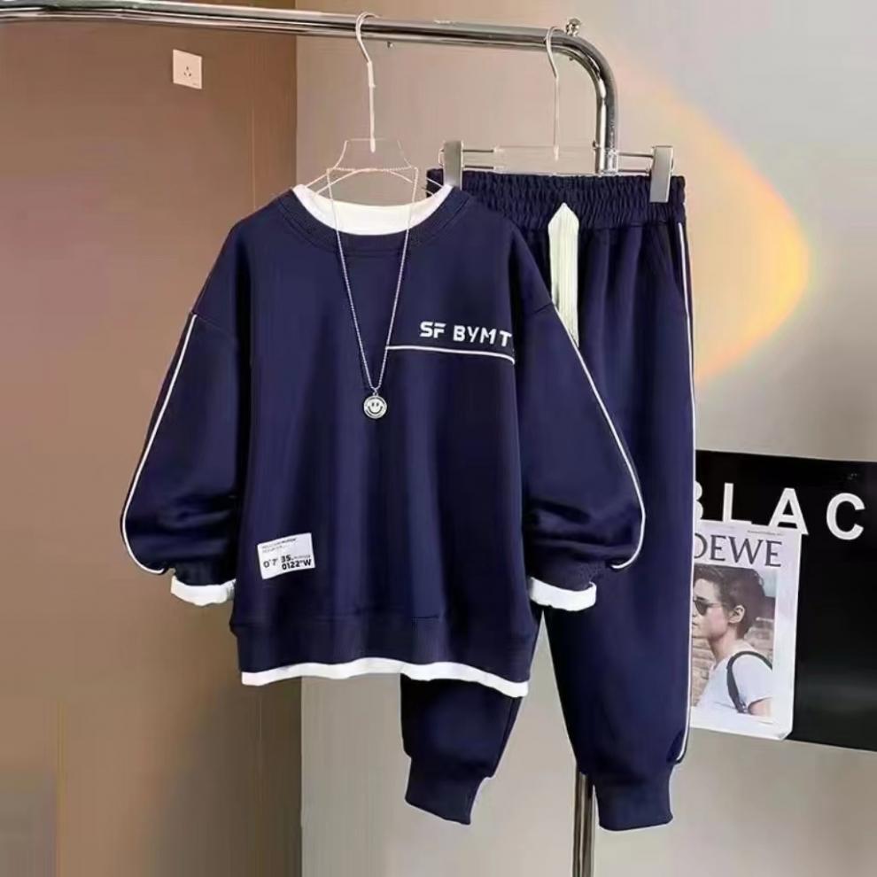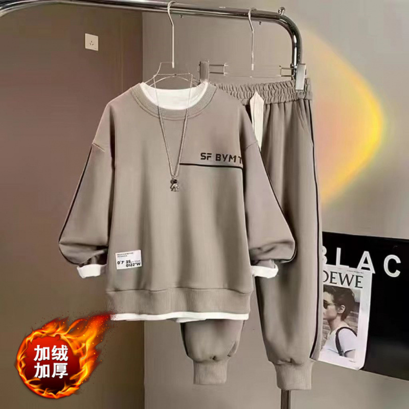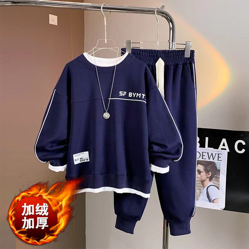 어린이 세트 2025 가을 소년 캐주얼 스티칭 땀 잘 생긴 다리 발가락 땀 바지 투피스 벨벳 루즈스토어 가기