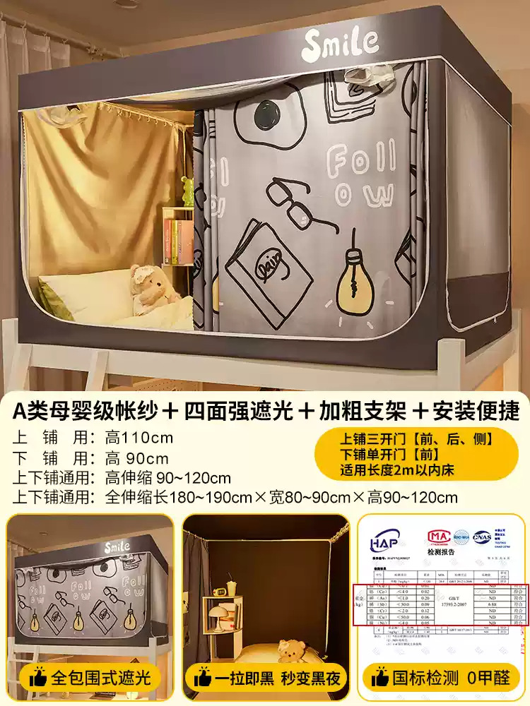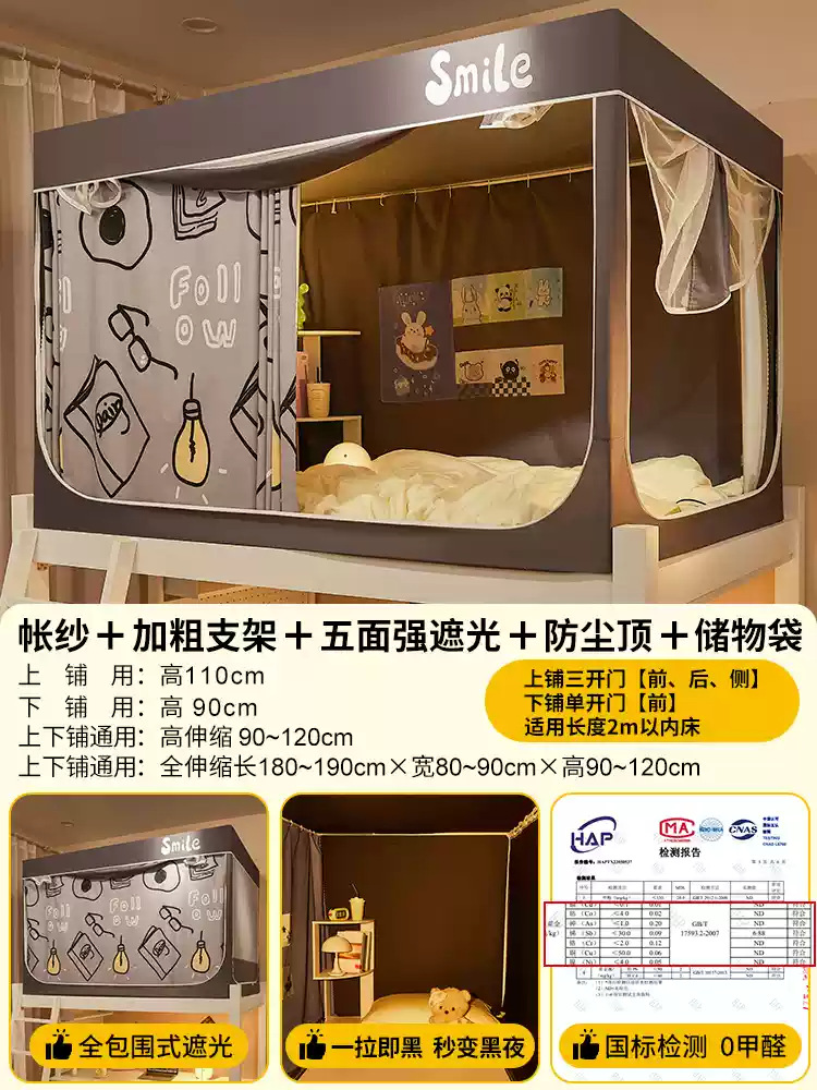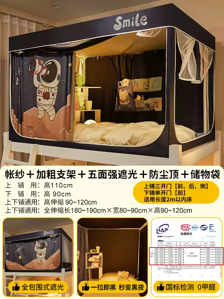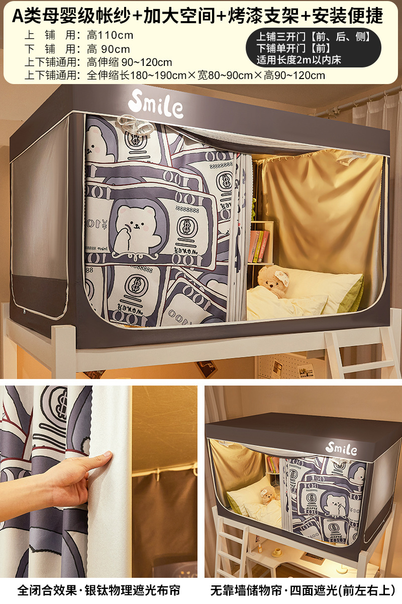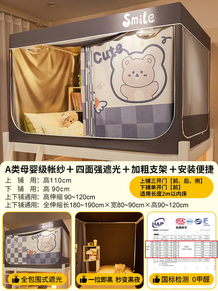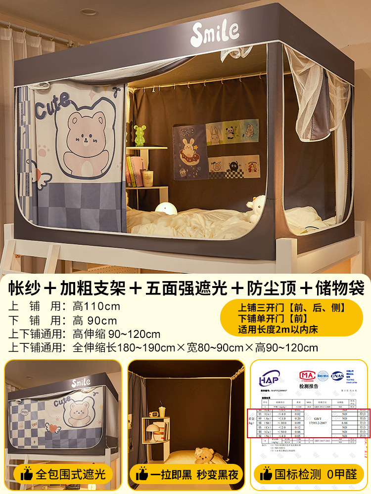 완전히 밀폐 된 강한 음영 모기장 학생 기숙사 침대 커튼 통합 침실 상부 및 하부 이층 전용 싱글 시니어 침대 커튼스토어 가기