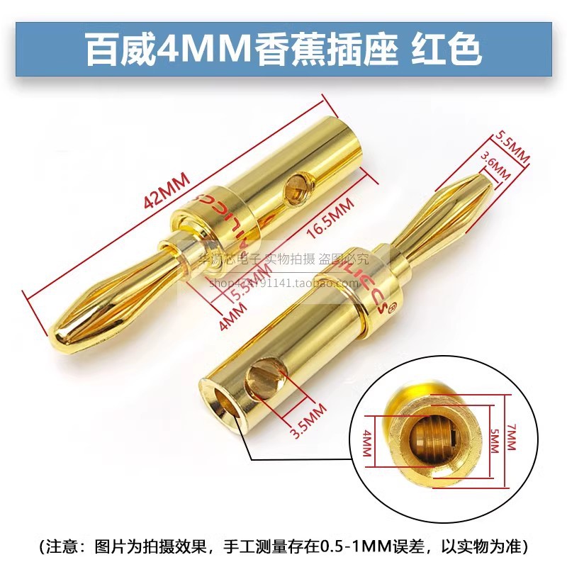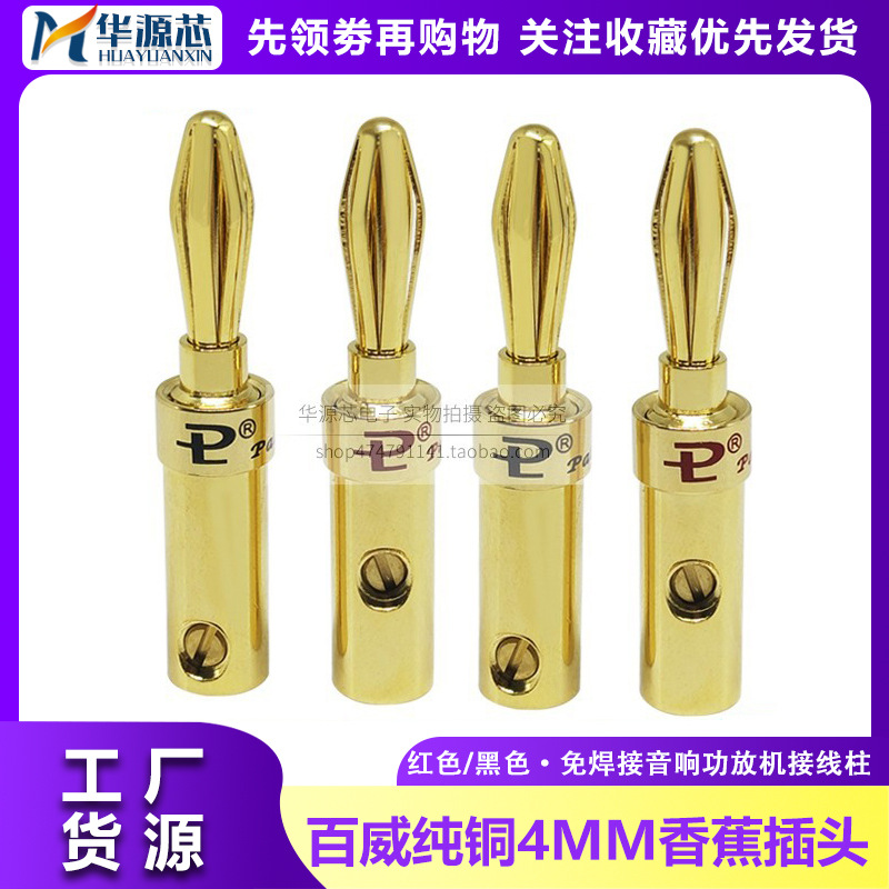 버드 와이저 순수 구리 금 도금 바나나 플러그 4mm 용접없는 열 스피커 전원 증폭기 단자 혼 오디오 케이블스토어 가기