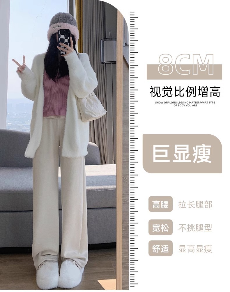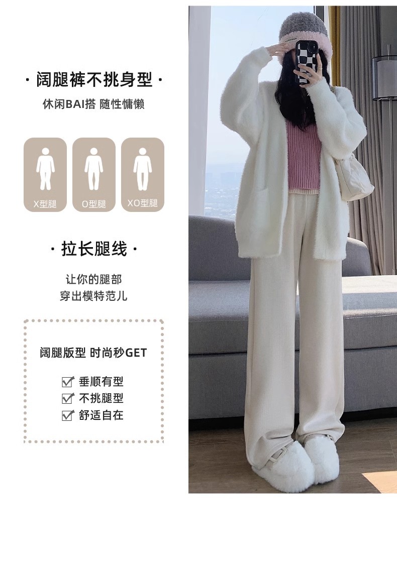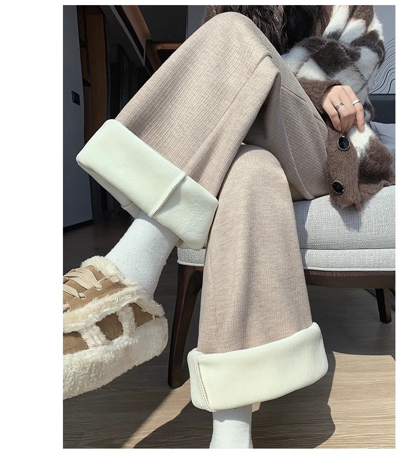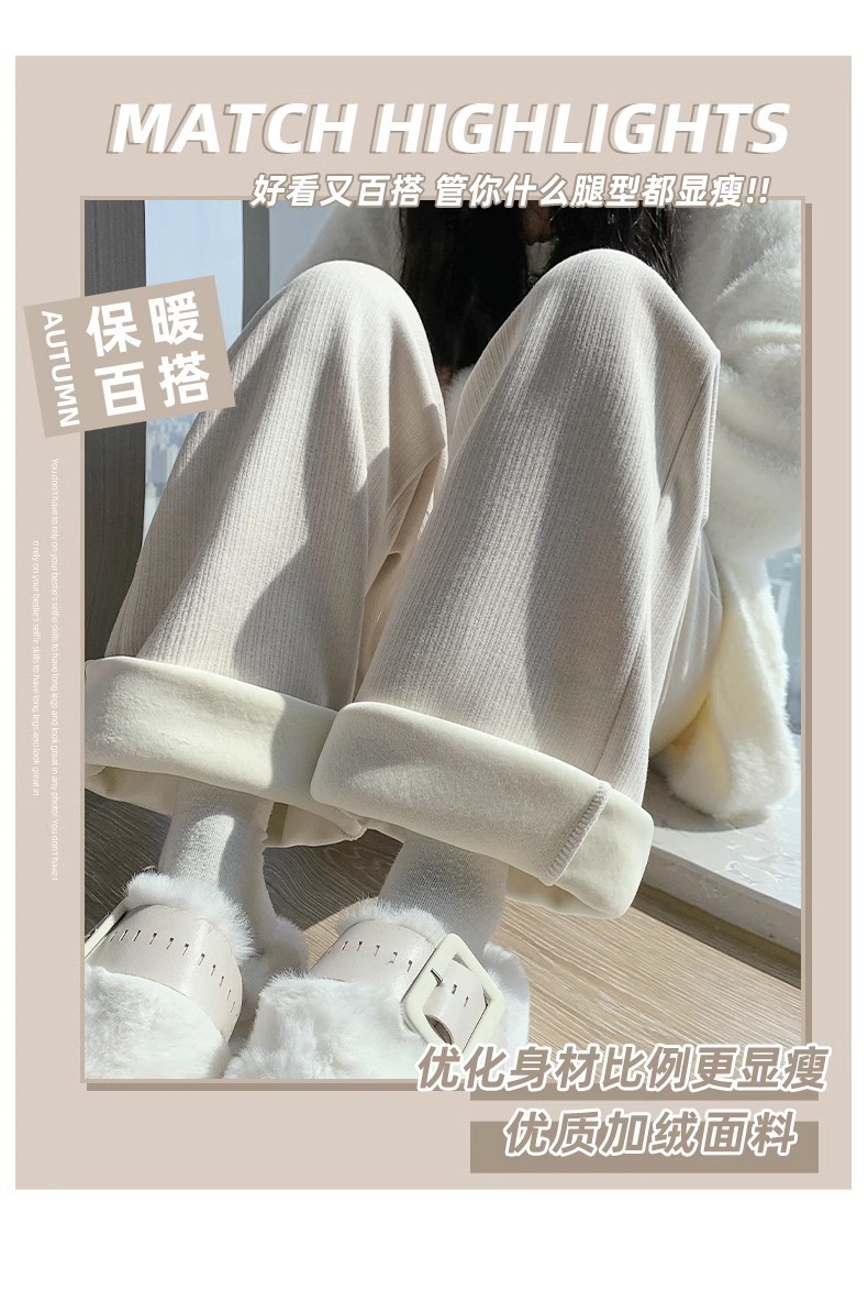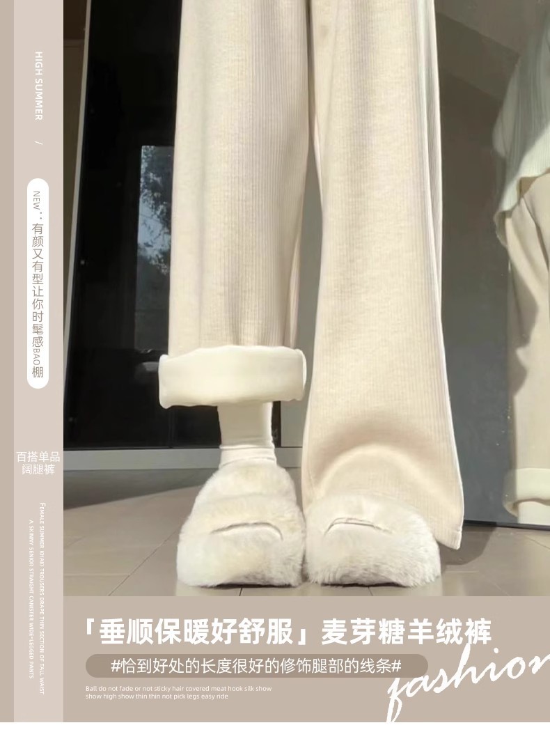양털 누빔 바지 여성용 봄 가을 2025 신상 하이웨이스트 캐주얼 와이드 팬츠 양털 안감 바지 다리 길어보이게스토어 가기
