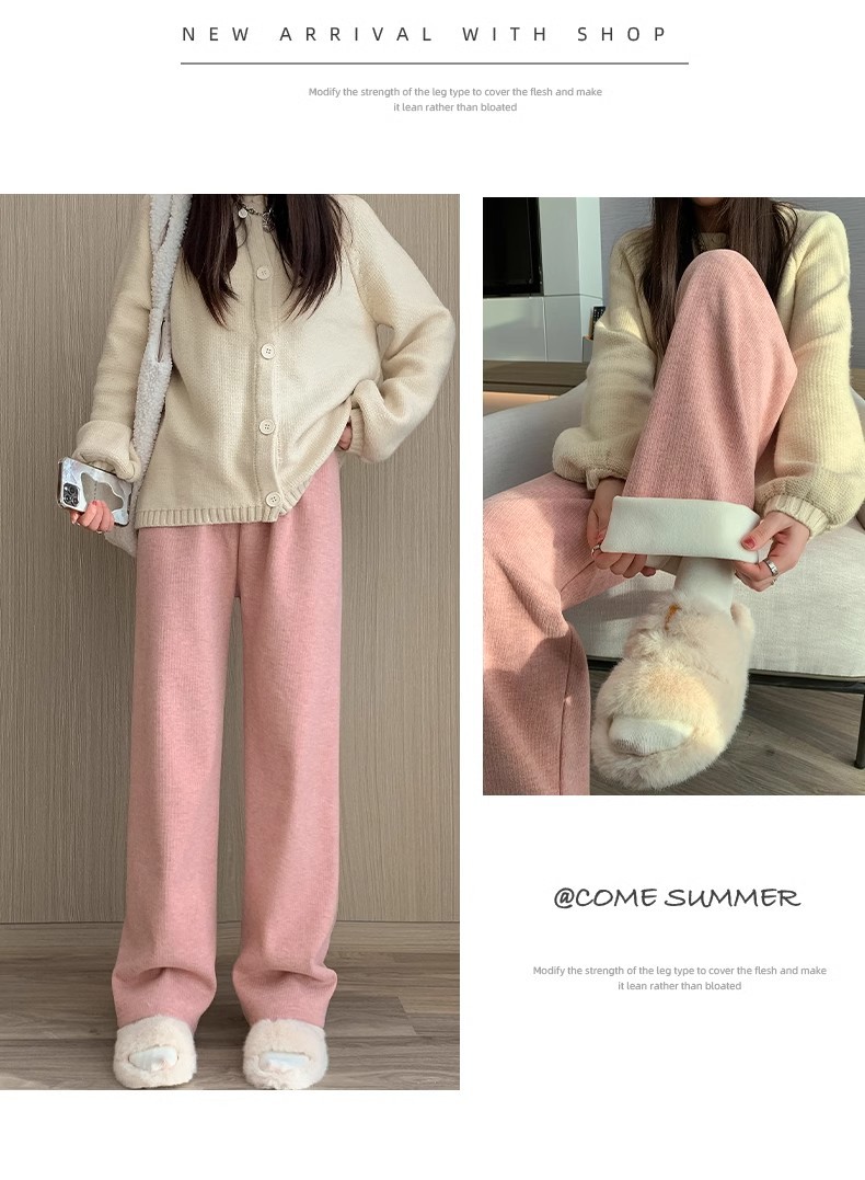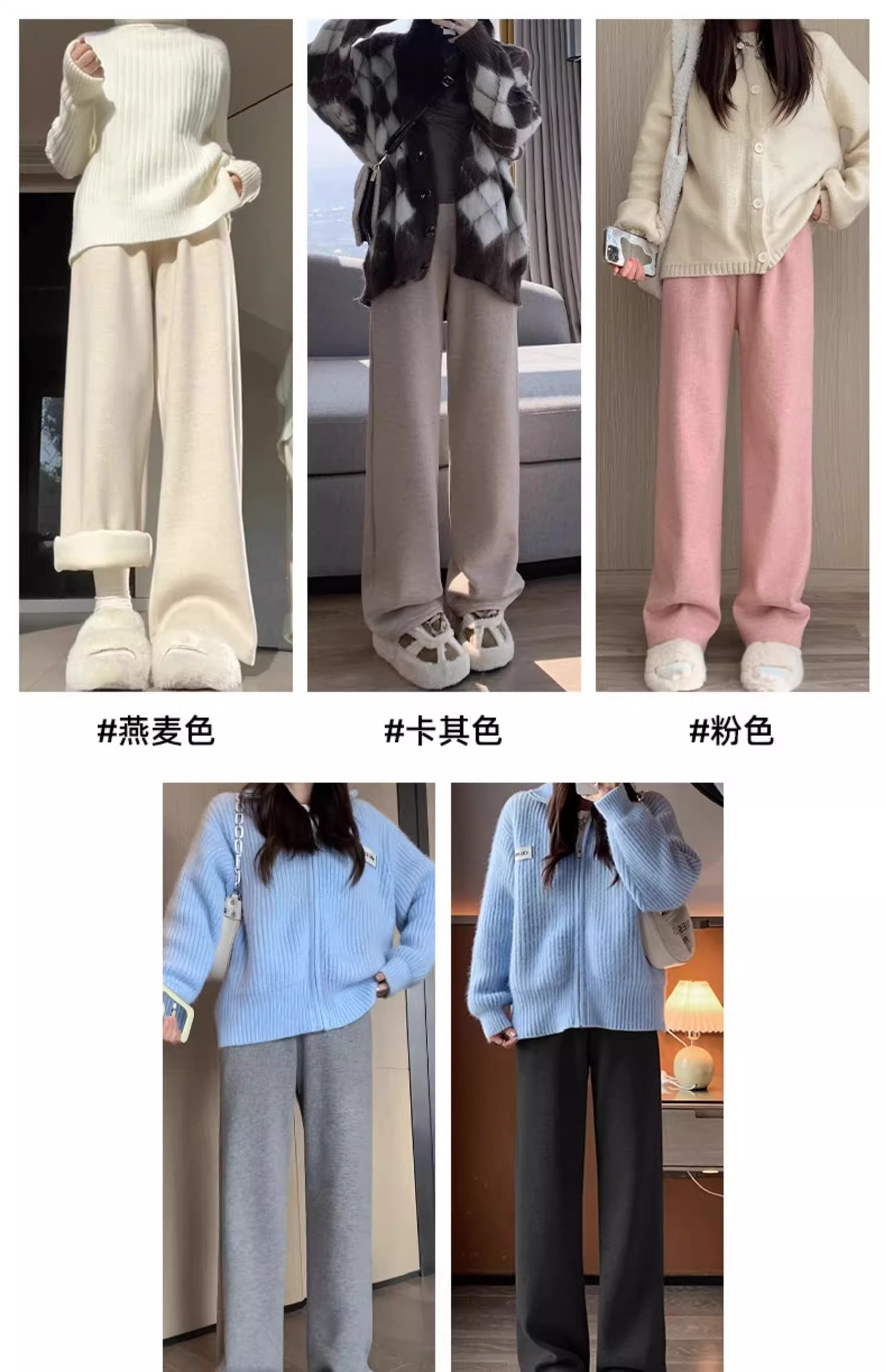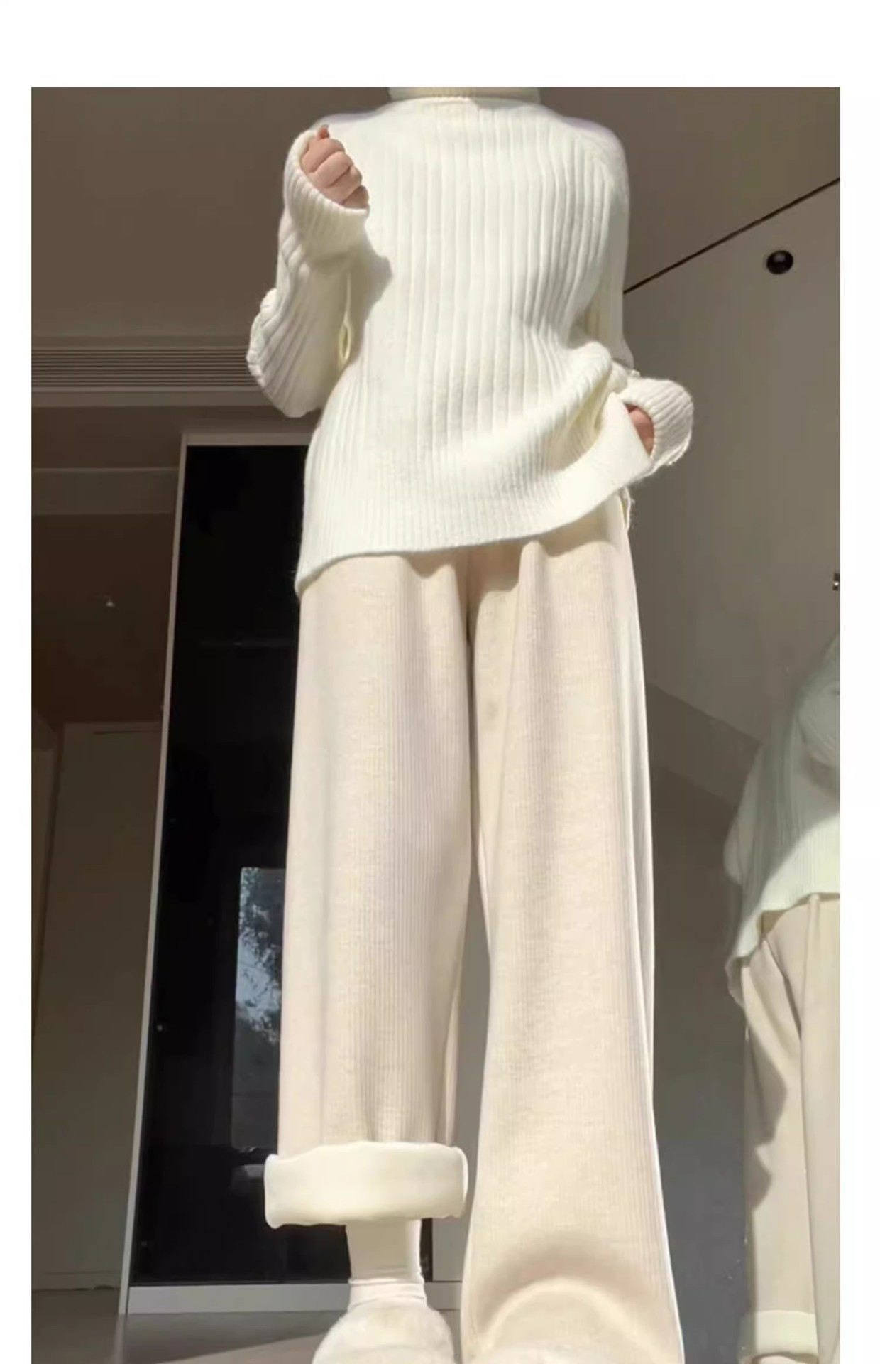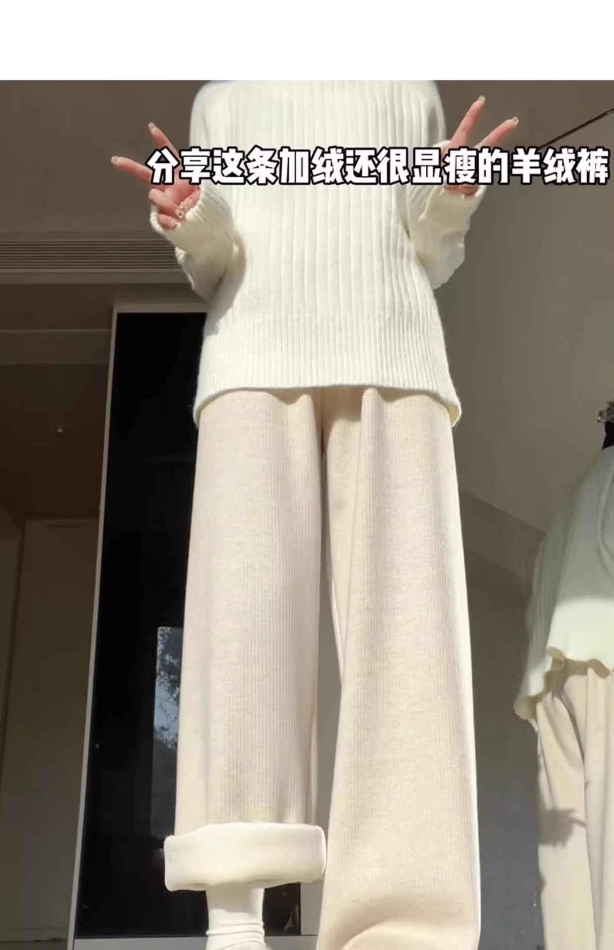 양털 누빔 바지 여성용 봄 가을 2025 신상 하이웨이스트 캐주얼 와이드 팬츠 양털 안감 바지 다리 길어보이게스토어 가기