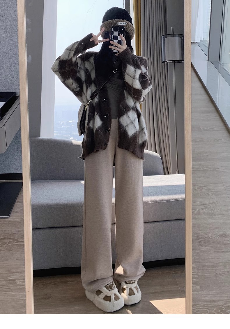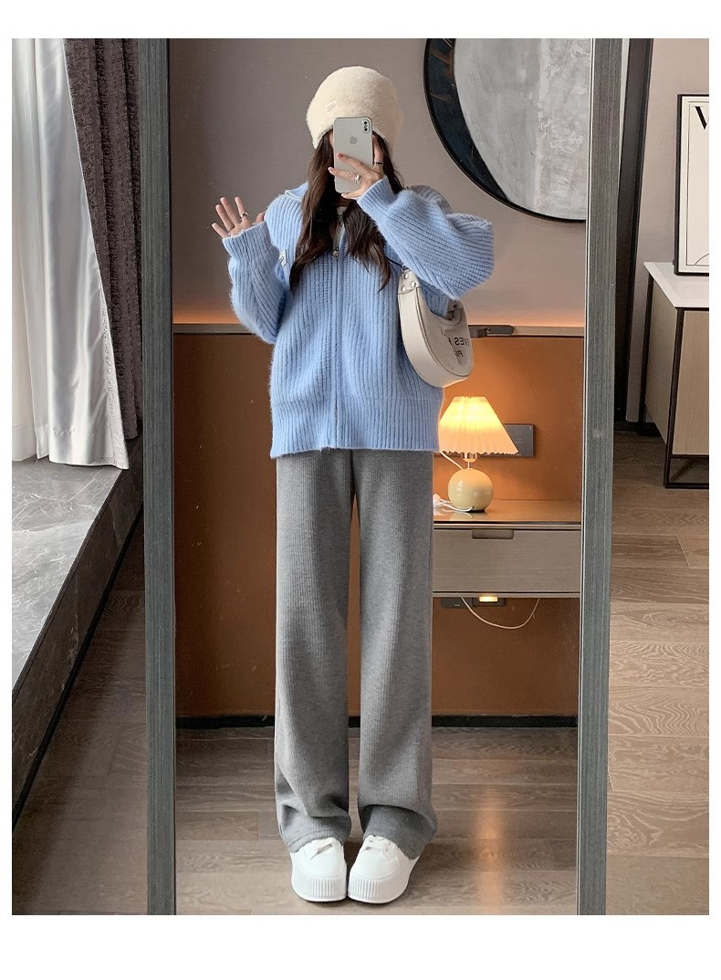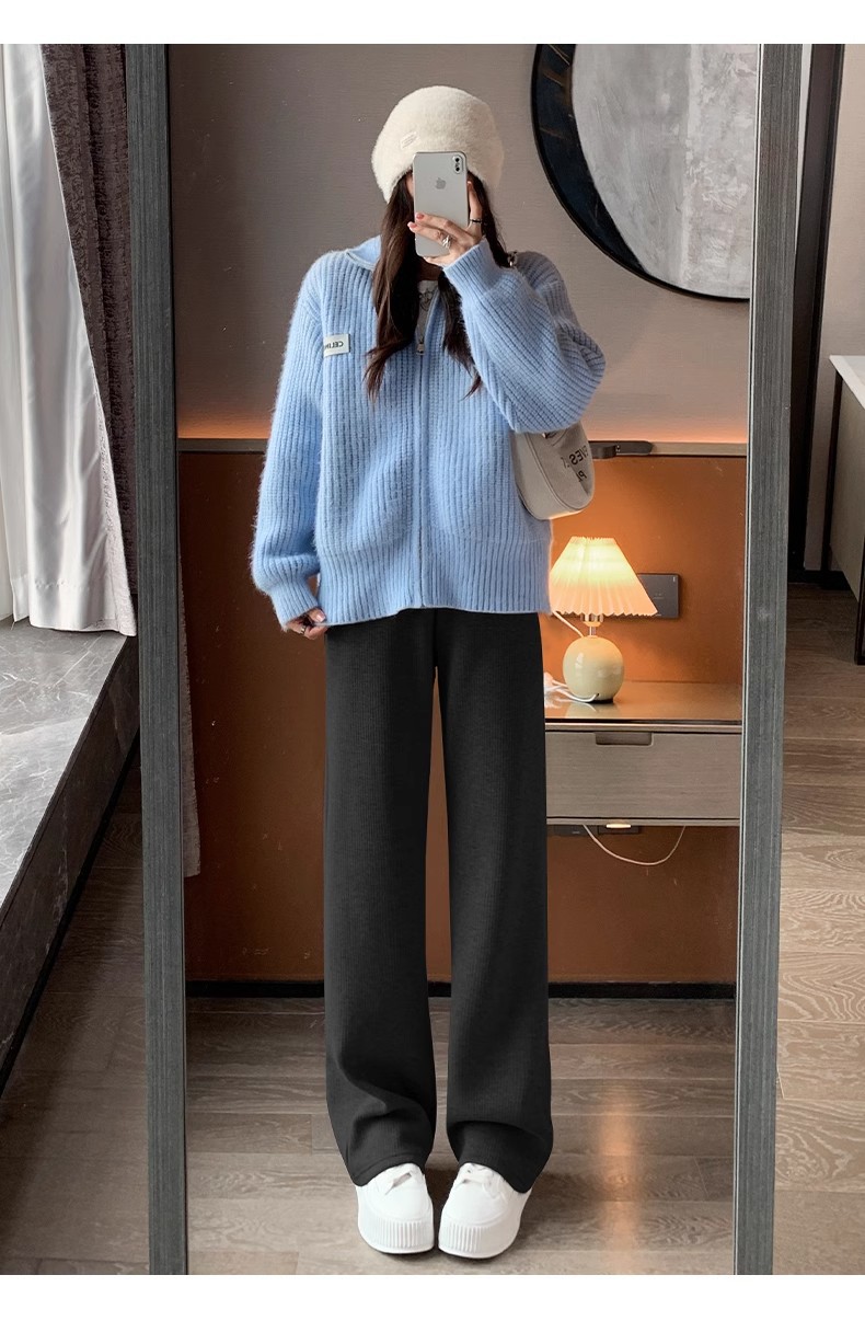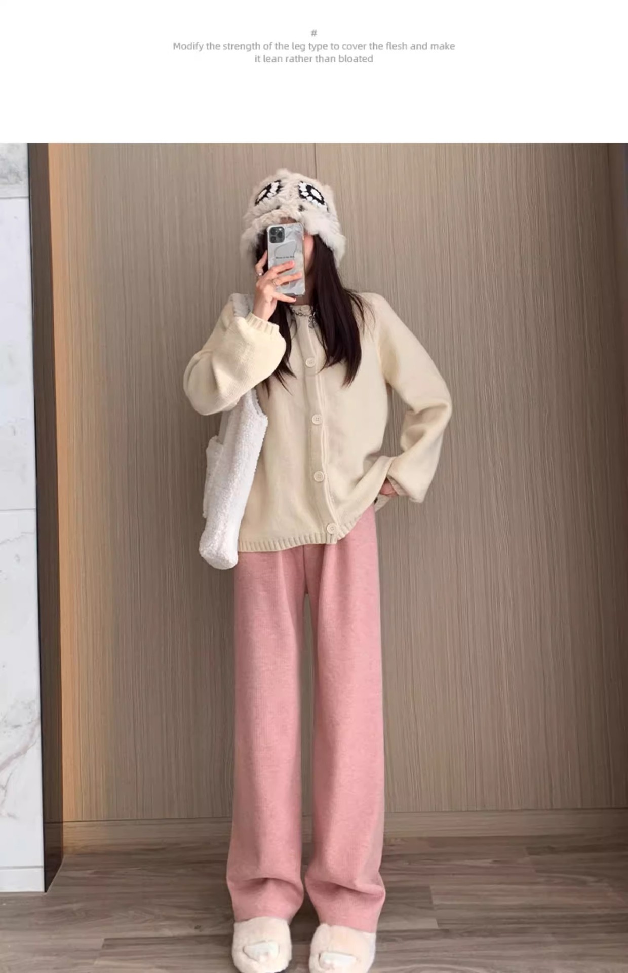 양털 누빔 바지 여성용 봄 가을 2025 신상 하이웨이스트 캐주얼 와이드 팬츠 양털 안감 바지 다리 길어보이게스토어 가기
